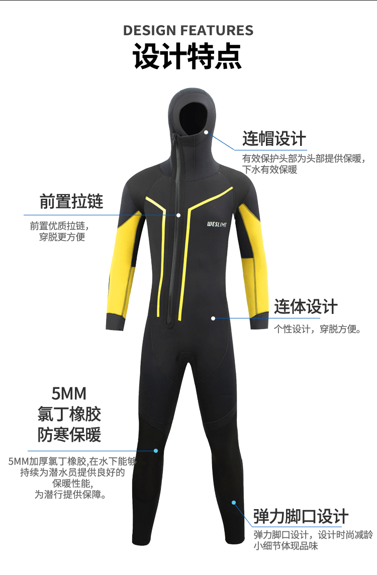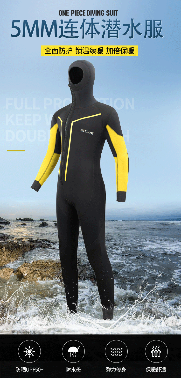 5mm 전면 지퍼 방한 및 따뜻한 스노클링 슈트 수영 잠수복 해파리 슈트 서핑 잠수복
