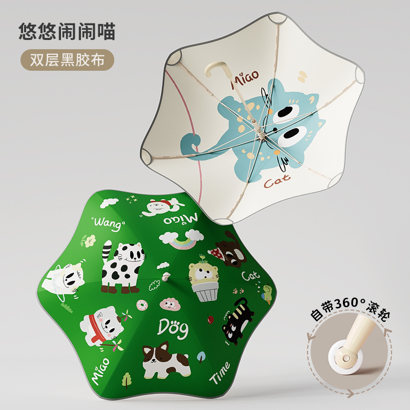 • 이중 비닐 둥근 모서리 롤러 어린이 우산 - 마스터 야옹야옹