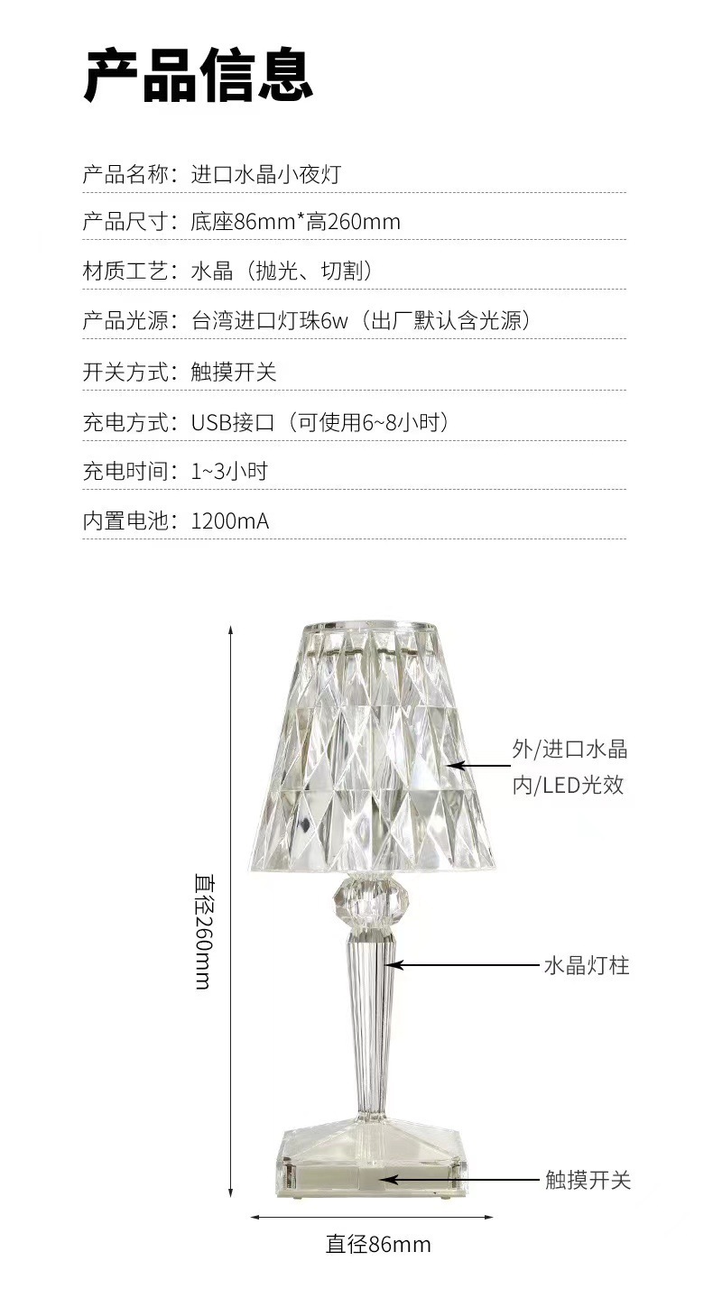 크로스보더 패트라이트 선물 다이아몬드 크리스탈 무드등 레스토랑 장식 무드등 침실 테이블 램프 조명 조절 가능