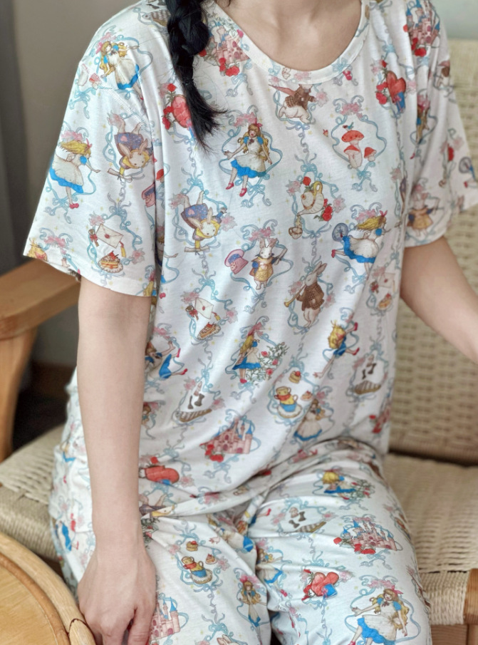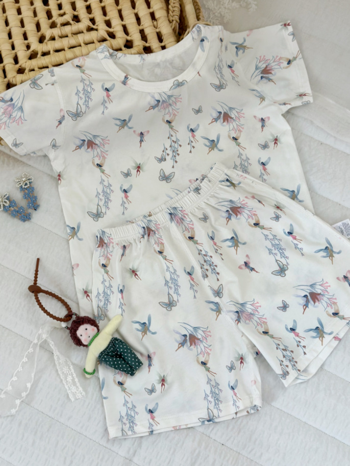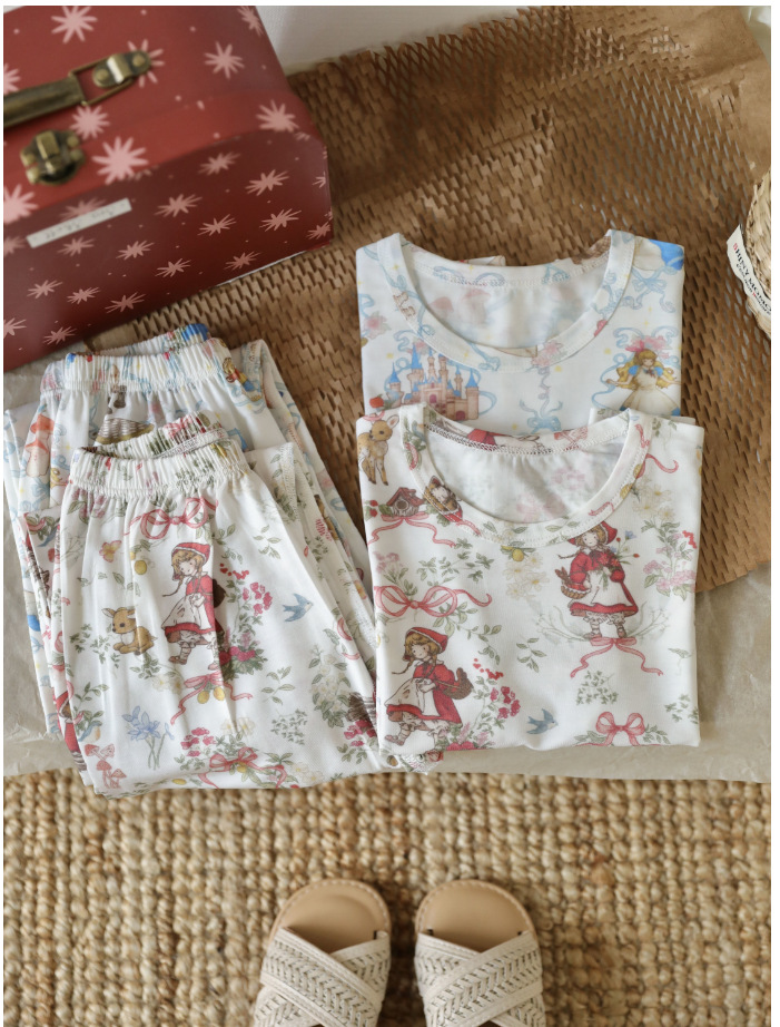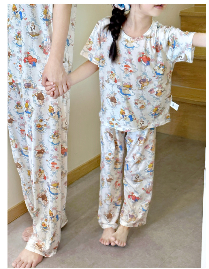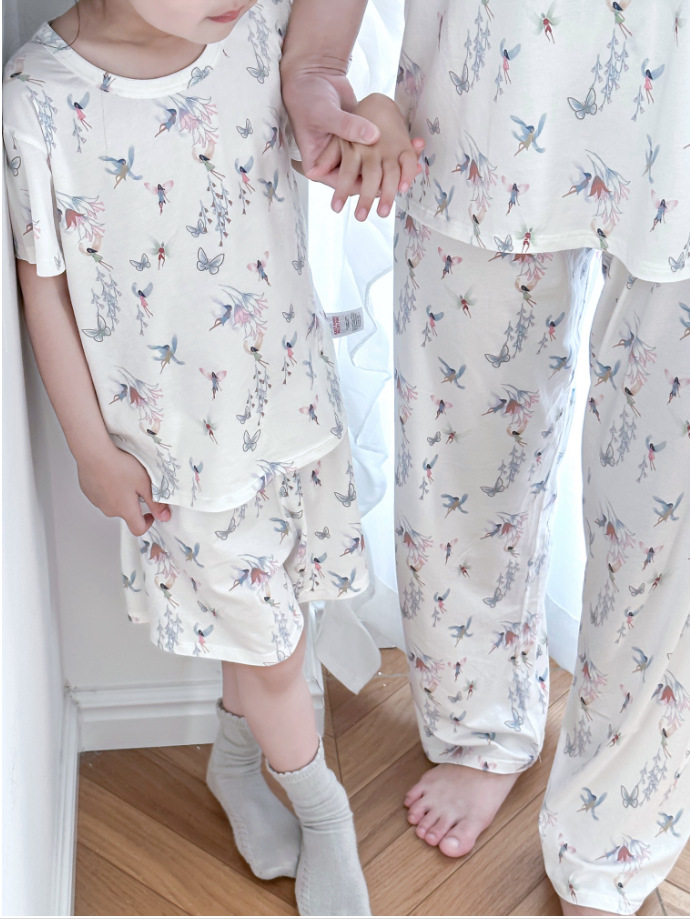 인스 스타일 핫템 2025 신상품 대나무 면 반팔 아기 홈웨어 어린이 잠옷 남아 여아 홈웨어