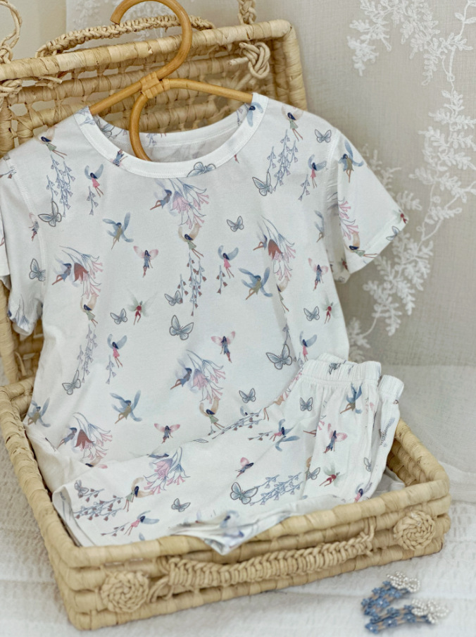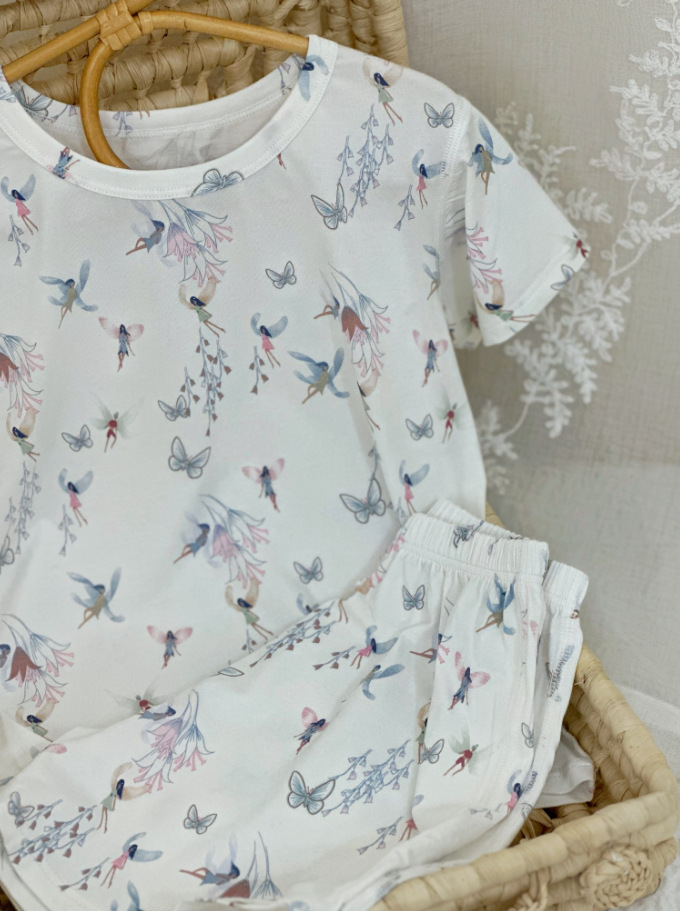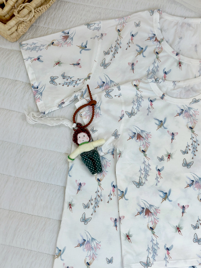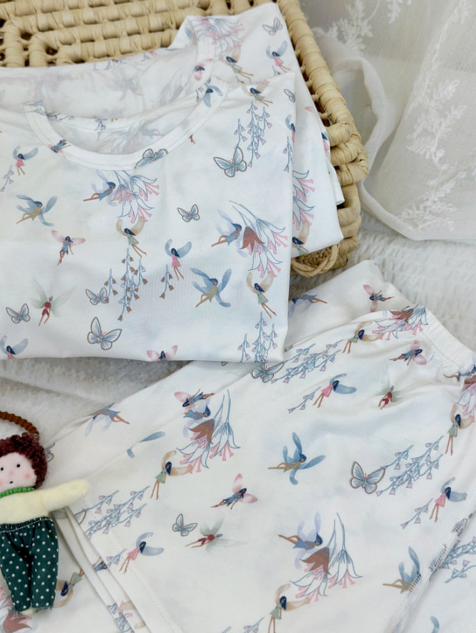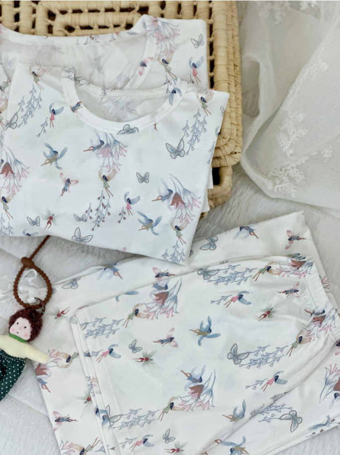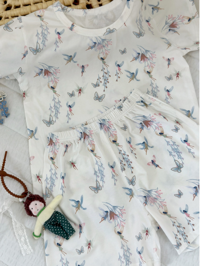 인스 스타일 핫템 2025 신상품 대나무 면 반팔 아기 홈웨어 어린이 잠옷 남아 여아 홈웨어