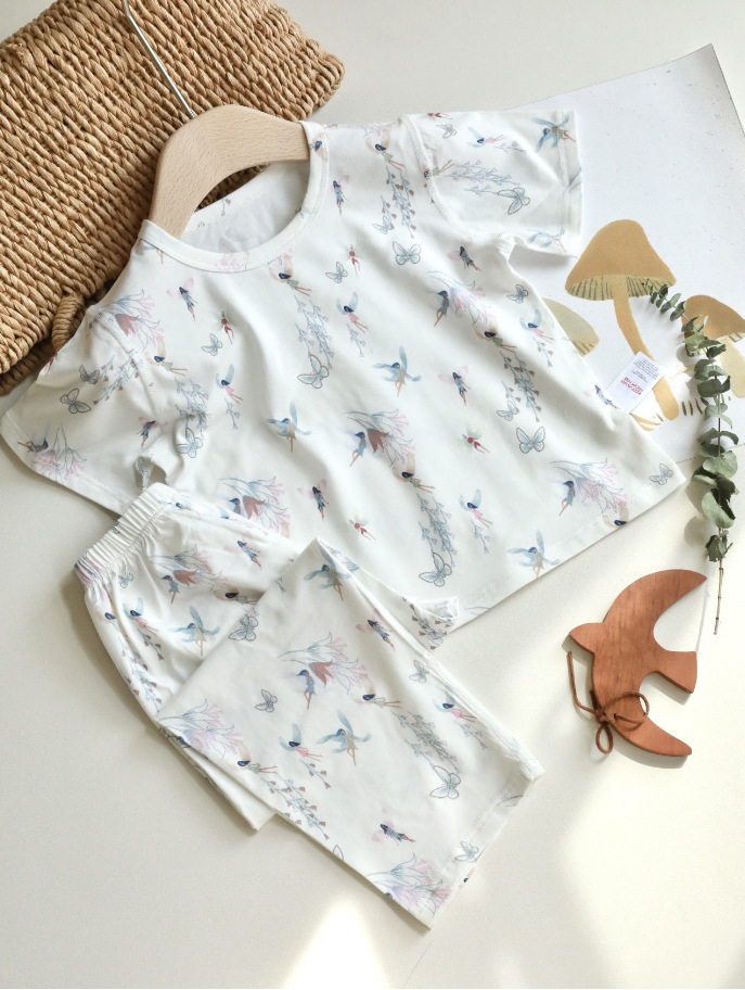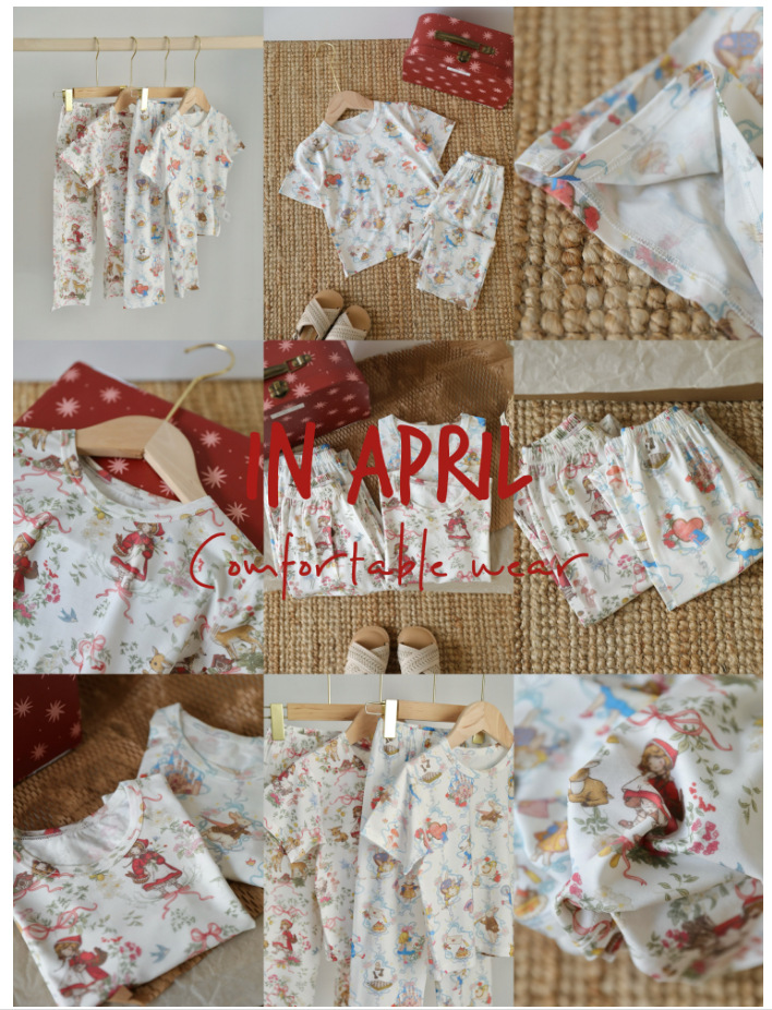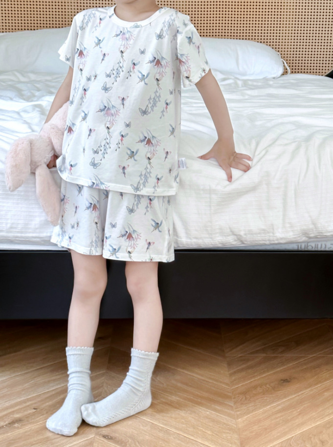인스 스타일 핫템 2025 신상품 대나무 면 반팔 아기 홈웨어 어린이 잠옷 남아 여아 홈웨어스토어 가기