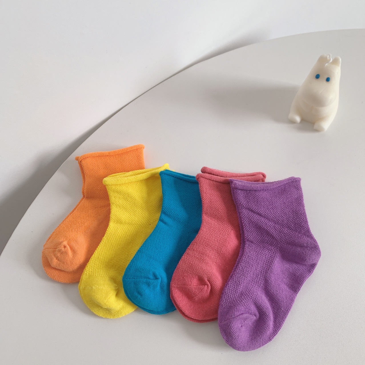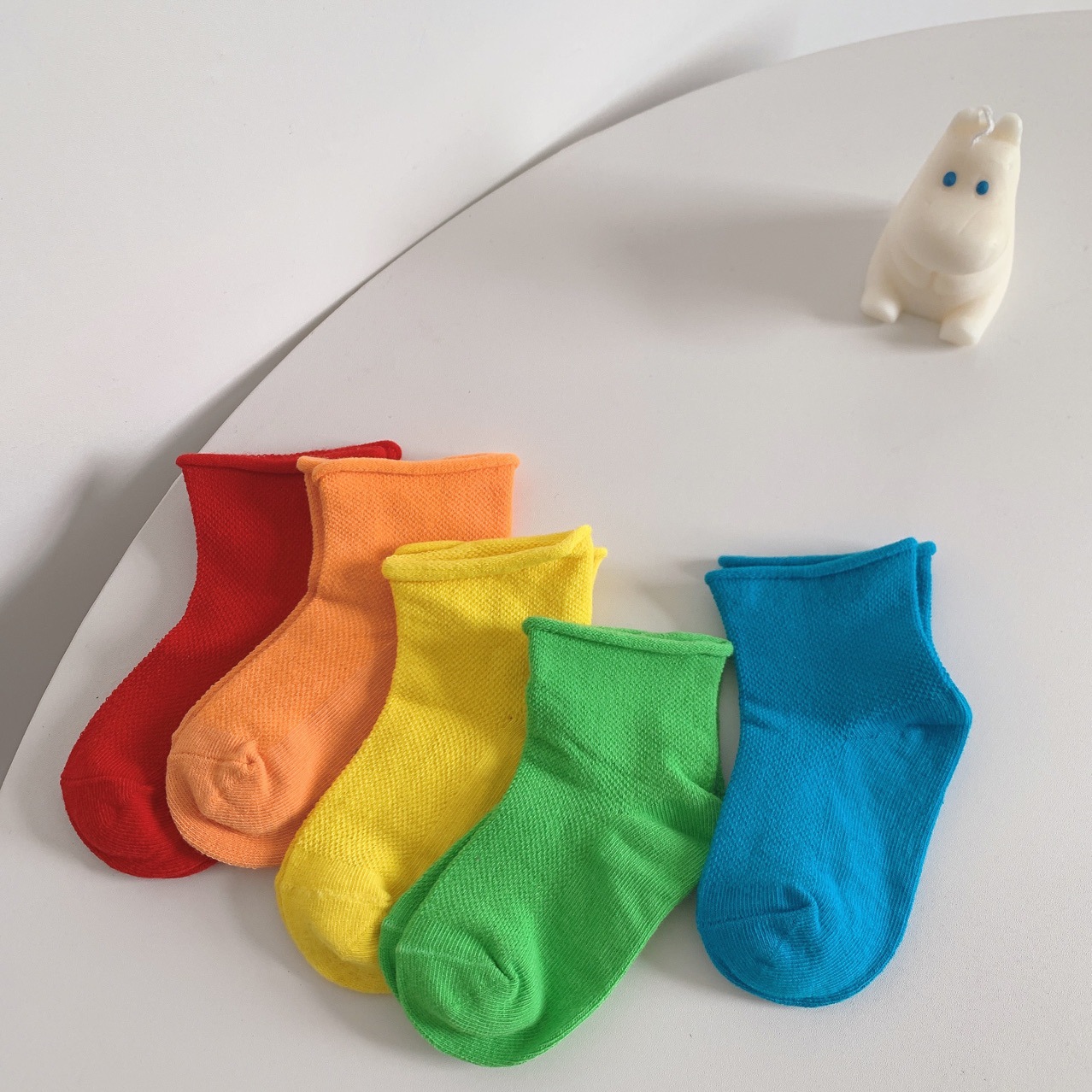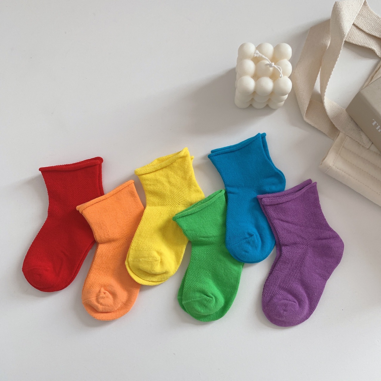 어린이 양말 여름 얇은 통기성 메쉬 캔디 컬러 컬링 중간 튜브 양말 소년과 소녀 ins 트렌디 컬러 양말
