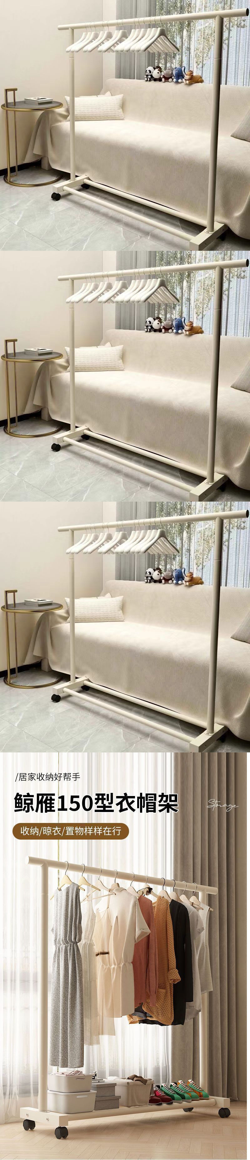 가정용 침실을 위한 매우 두꺼운 코트 랙 바닥 스탠딩 모바일 크림 스타일 옷 걸이 간단한 기숙사 옷 걸이 발코니 수직