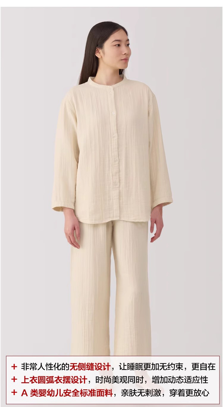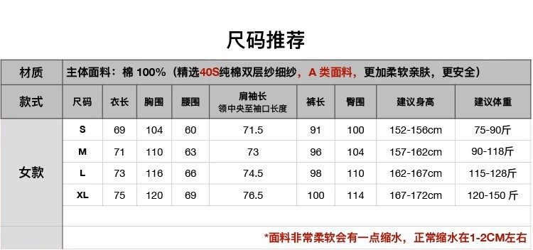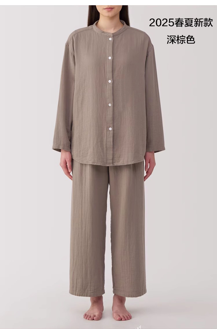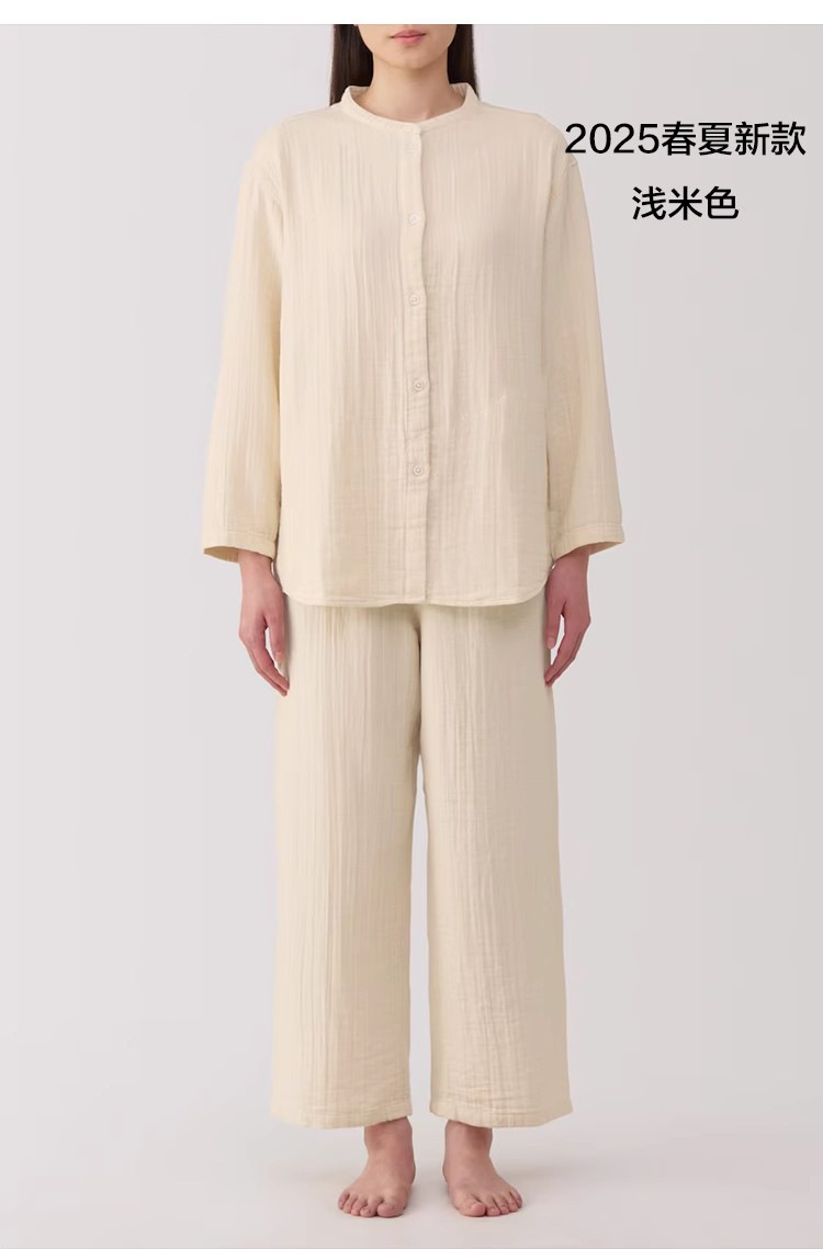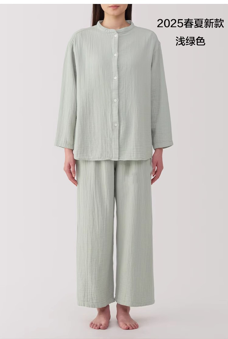 비 인쇄 순수 면 더블 레이어 원사 파자마 여성용 단색 긴팔 바지 Non side Seam 홈 의류 세트 얇고 봄과 여름스토어 가기