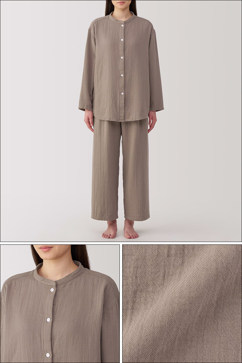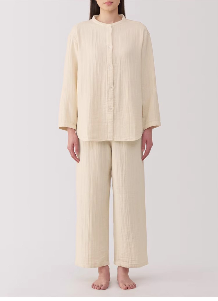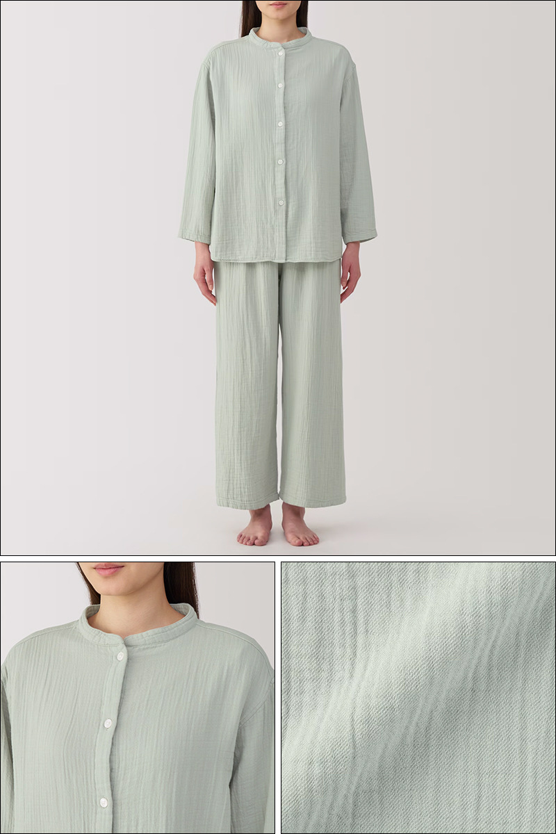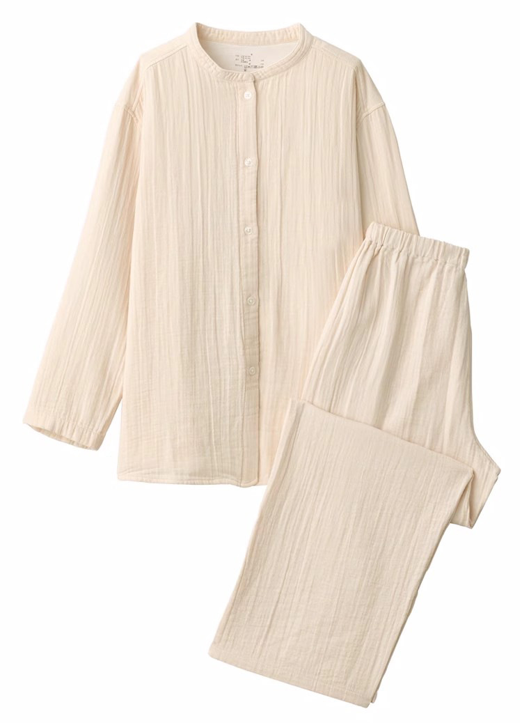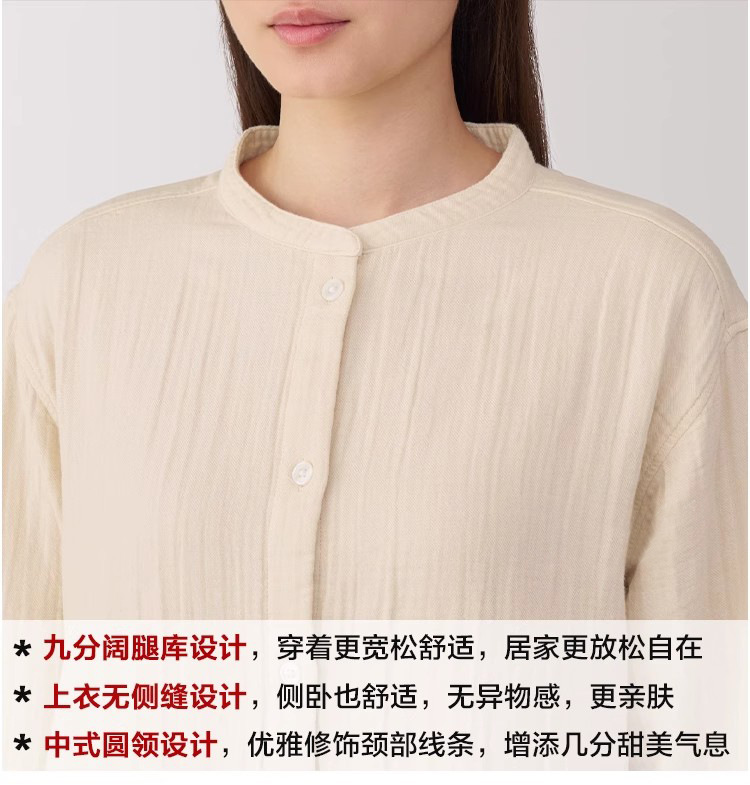 비 인쇄 순수 면 더블 레이어 원사 파자마 여성용 단색 긴팔 바지 Non side Seam 홈 의류 세트 얇고 봄과 여름스토어 가기