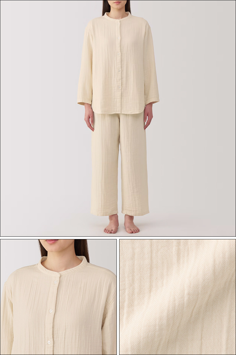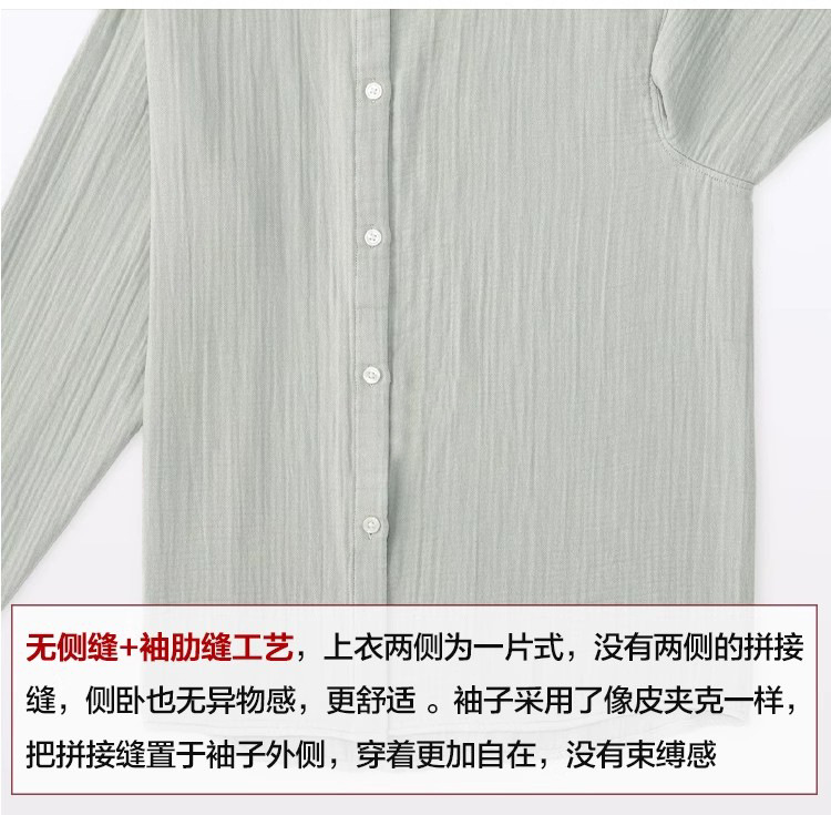 비 인쇄 순수 면 더블 레이어 원사 파자마 여성용 단색 긴팔 바지 Non side Seam 홈 의류 세트 얇고 봄과 여름