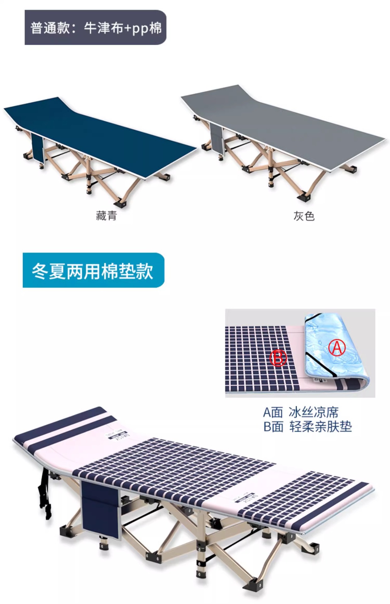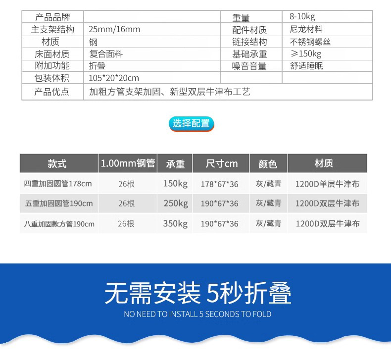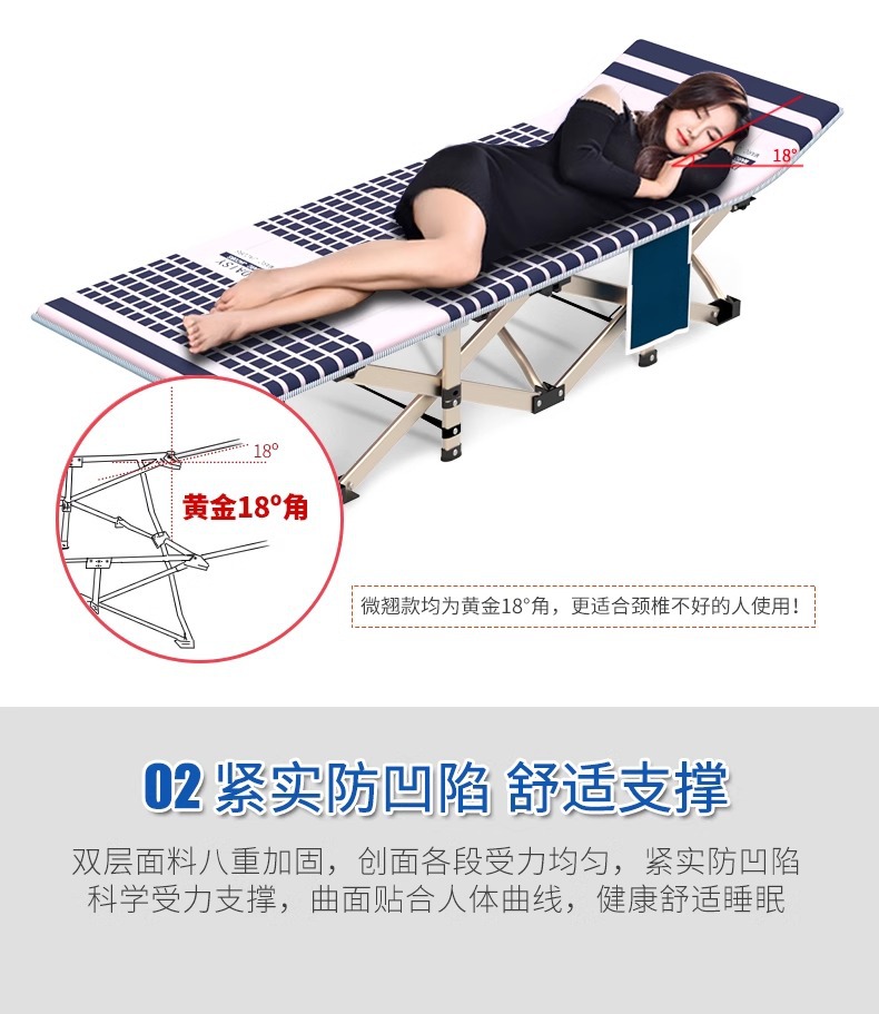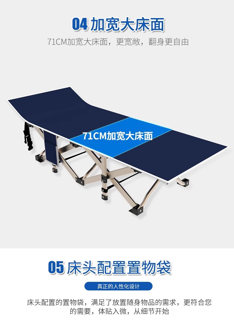 새로운 접는 침대 실내 점심 식사 휴식 침대 사무실 점심 휴식 휴지기 가구 성인 10 피트 침대 휴대용 육군 침대
