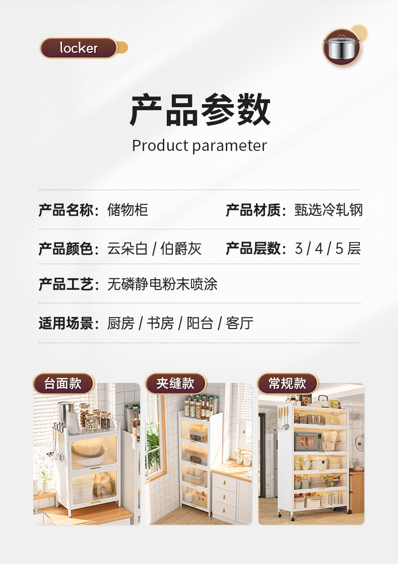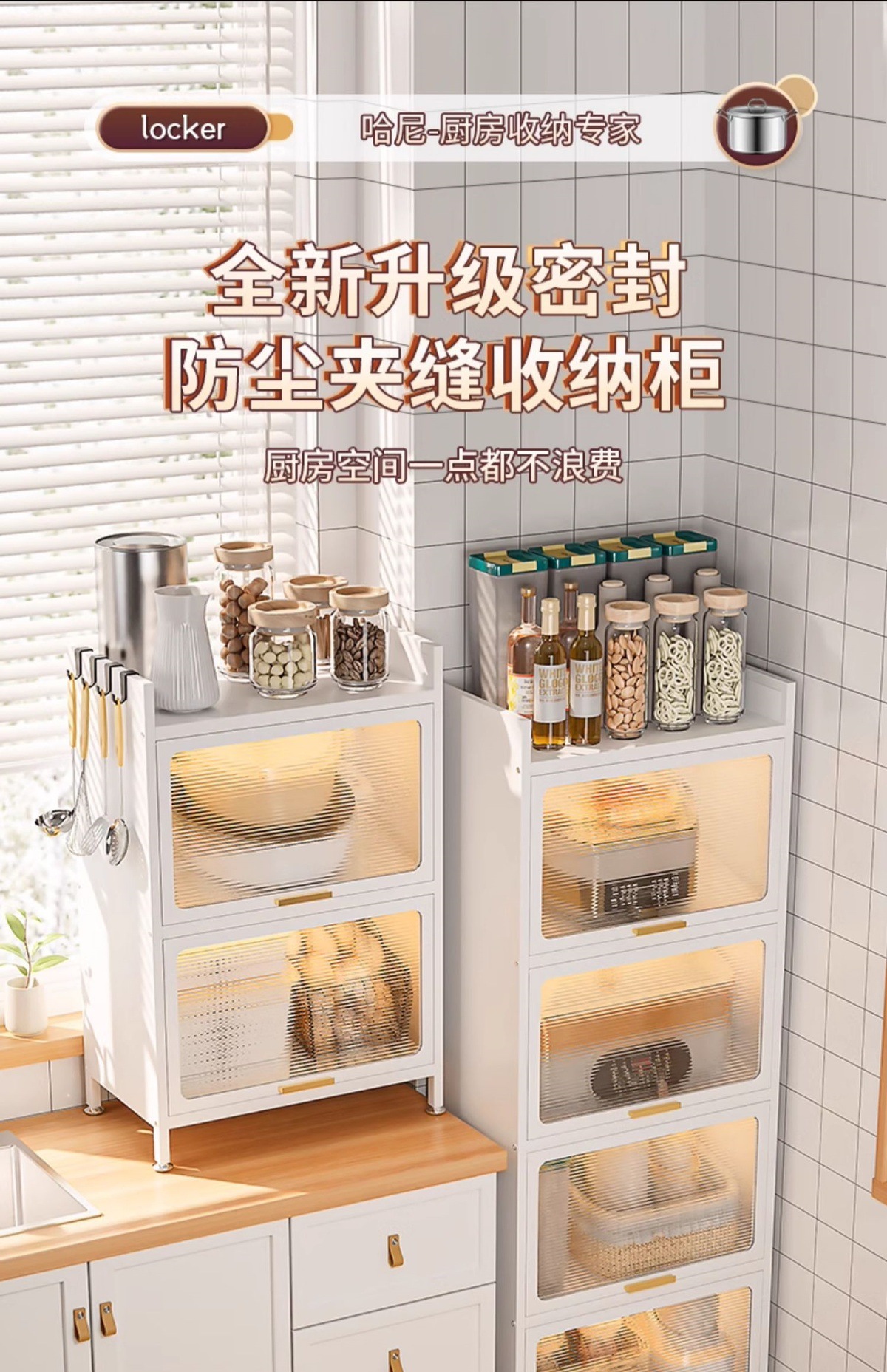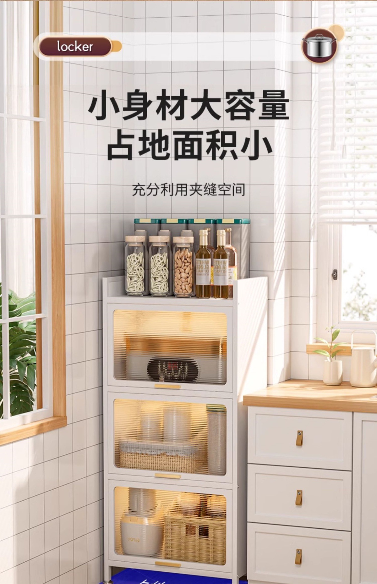 주방 틈새 수납장, 바닥형 다층 수납장, 냉장고 틈새 수납장(문 포함), 초슬림 그릇 및 조리기구 수납 선반 캐비닛