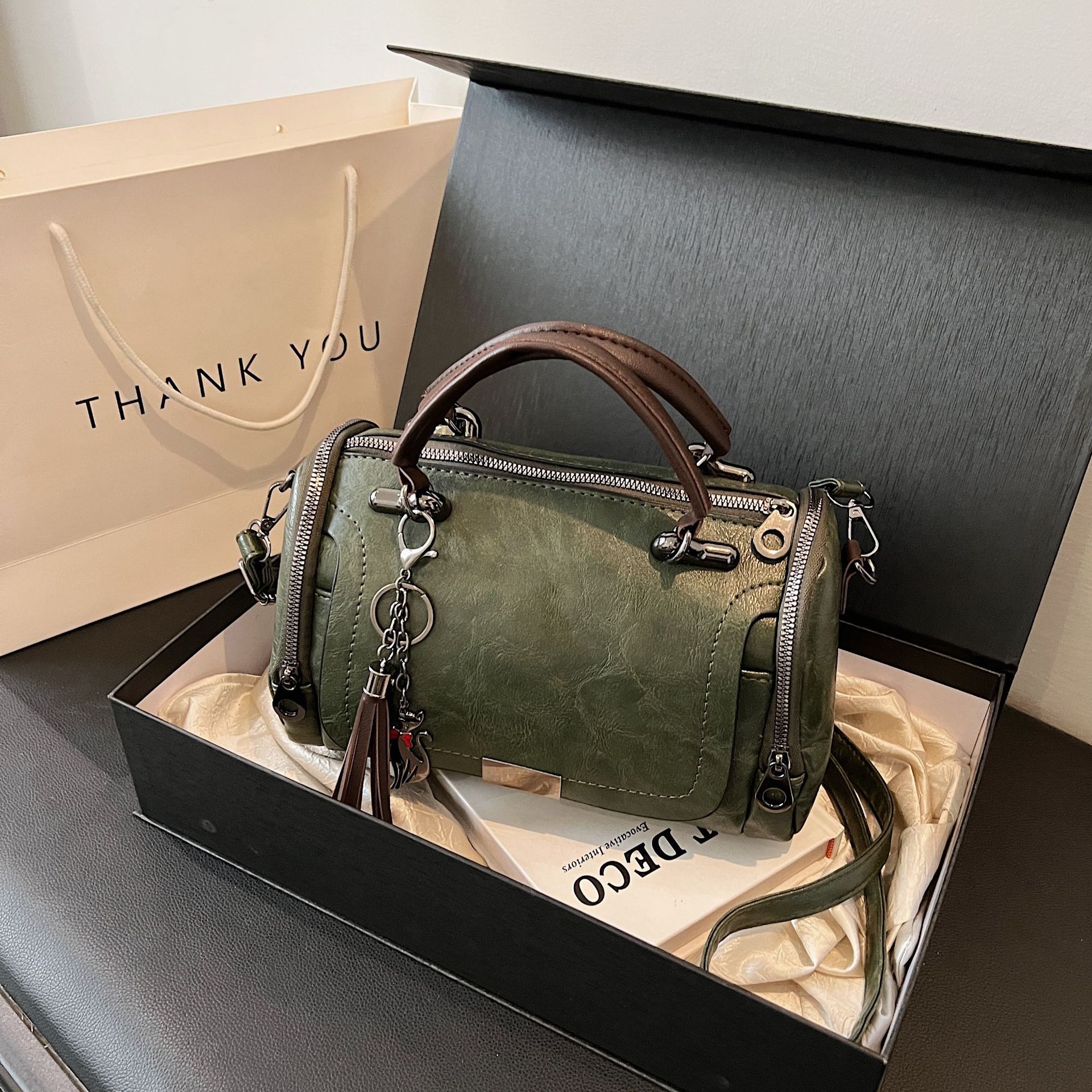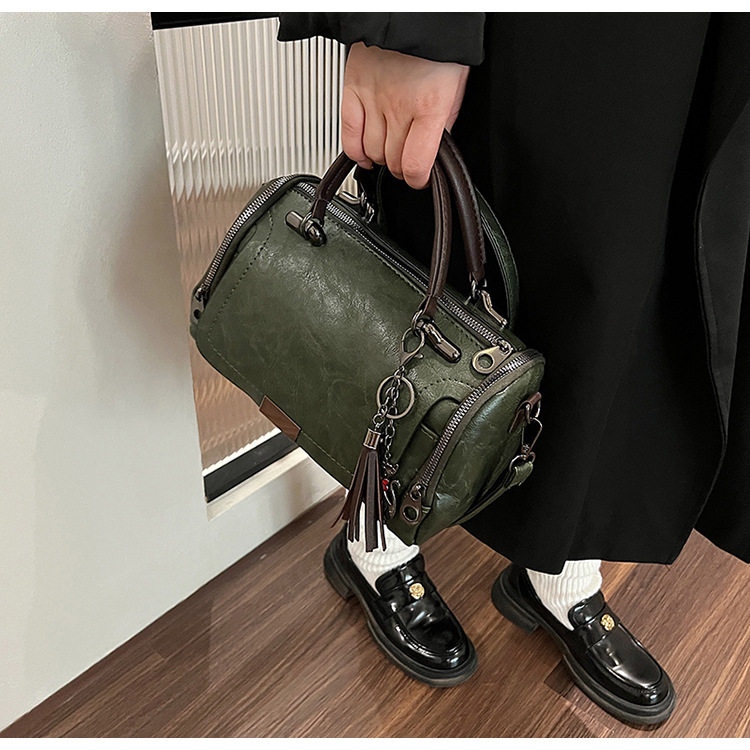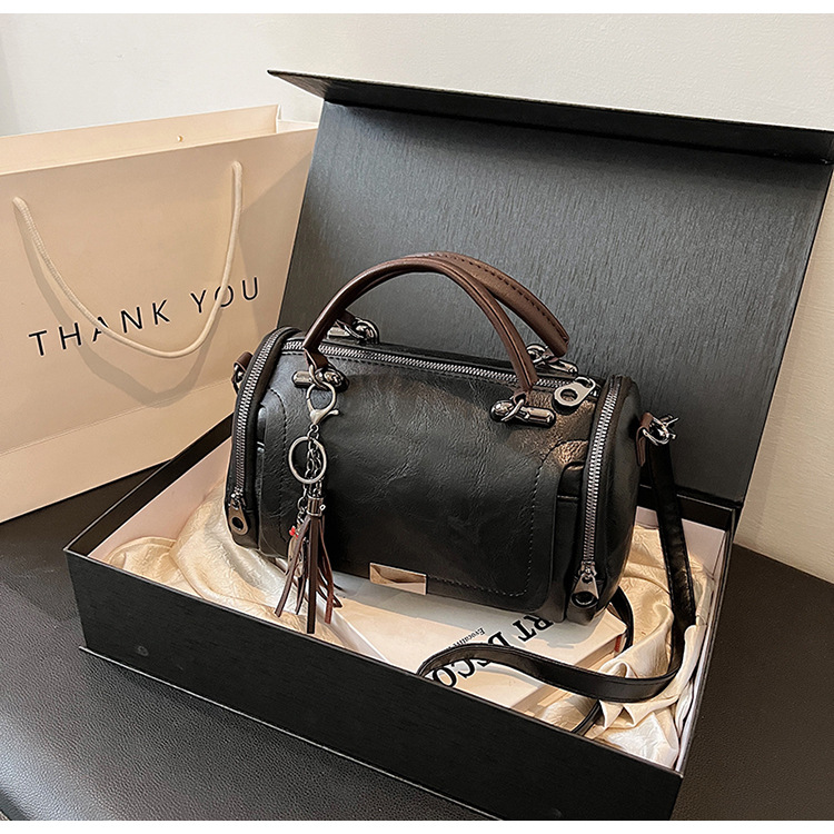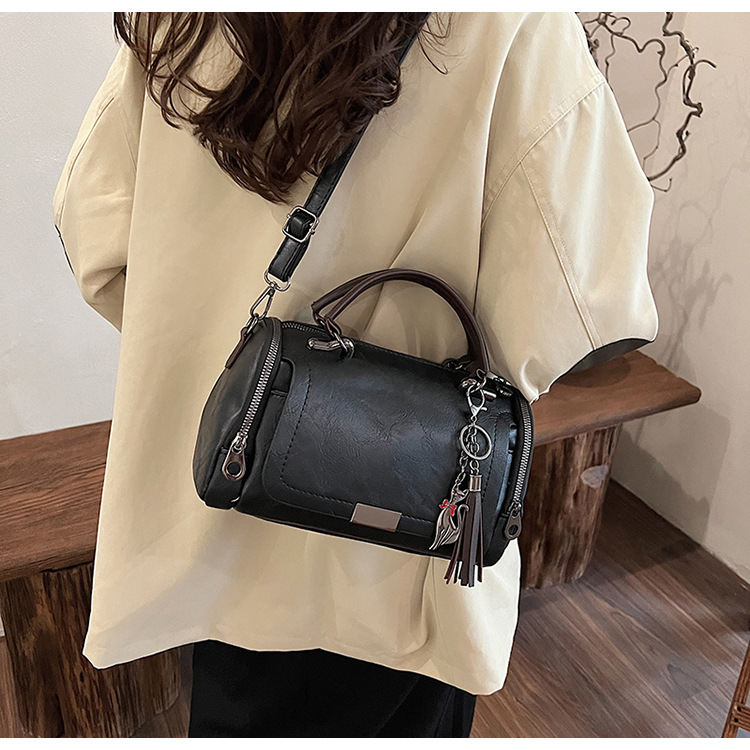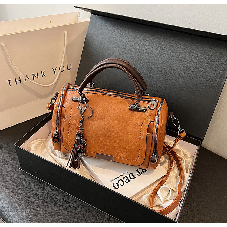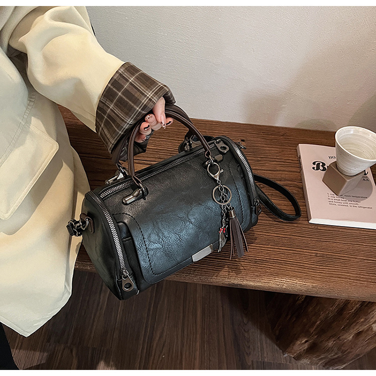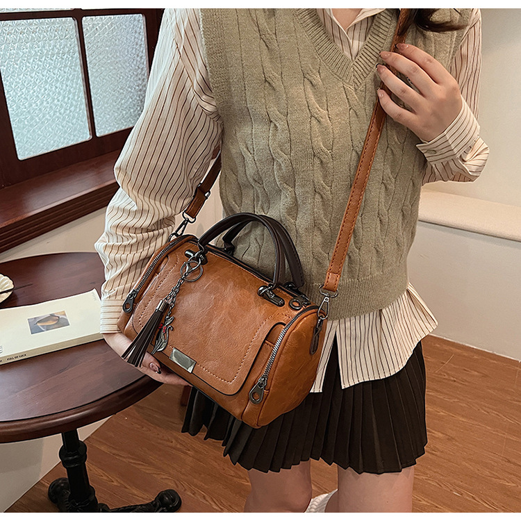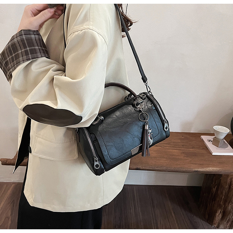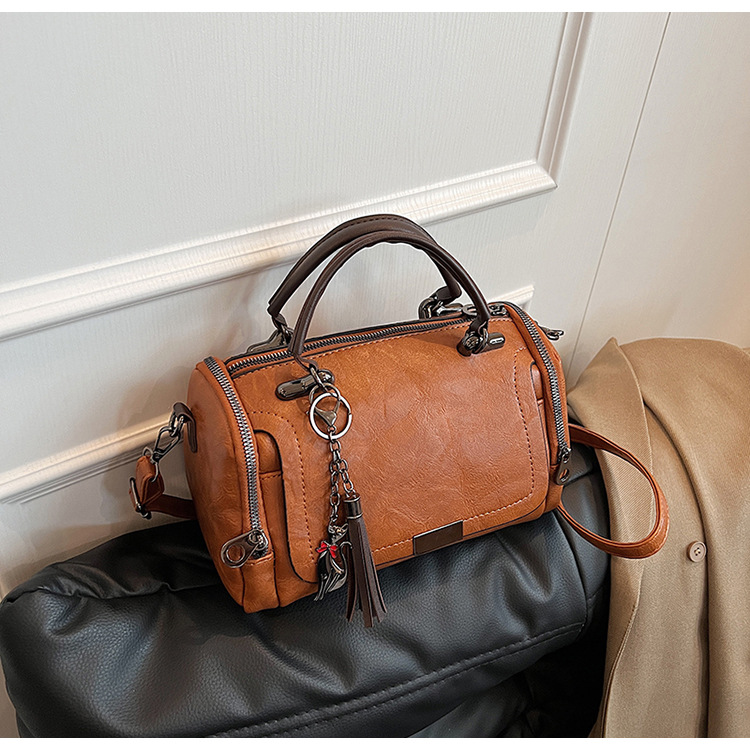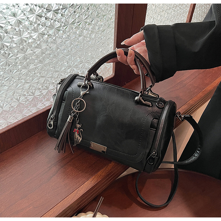 여성용 고급 복고풍 보스턴백, 태슬 휴대용 펜던트가 포함된 캐주얼하고 다재다능한 숄더백 크로스바디 백스토어 가기