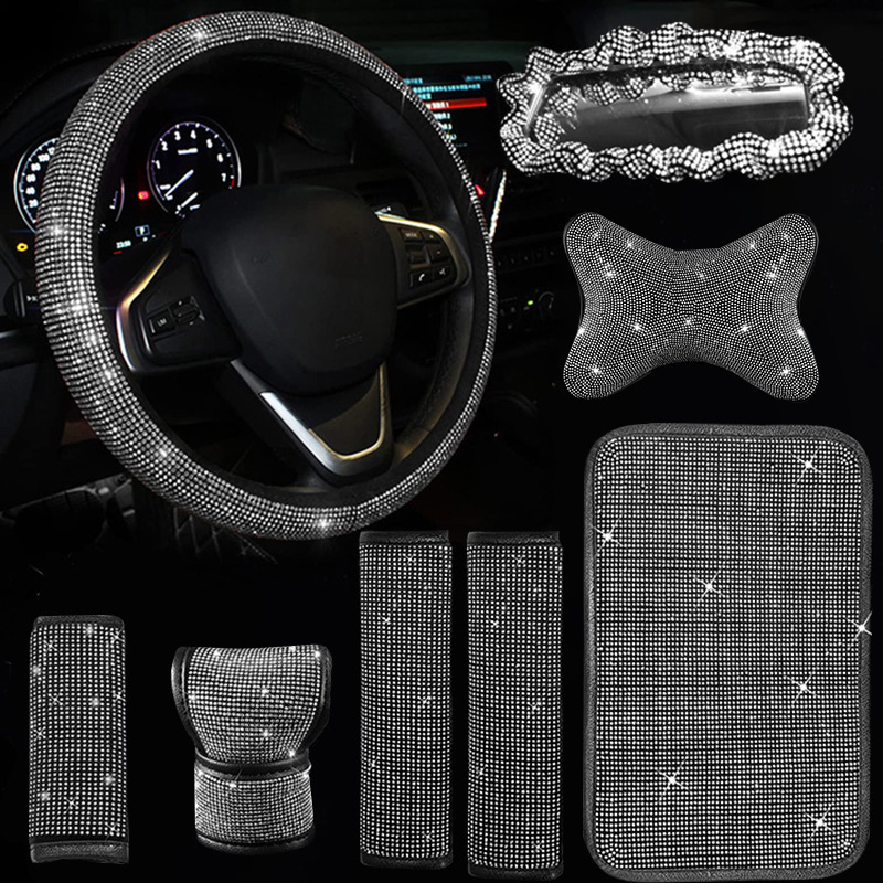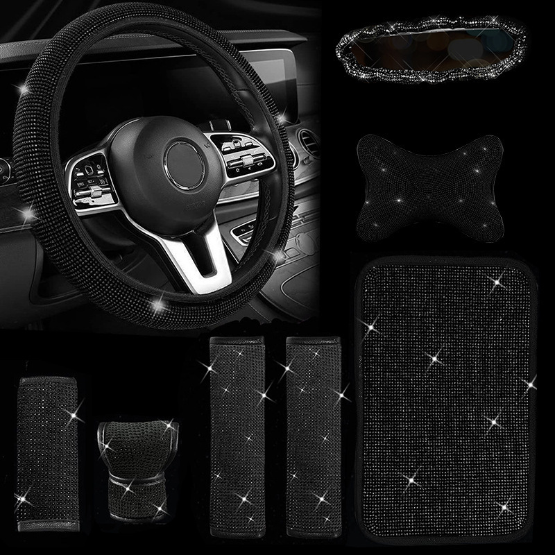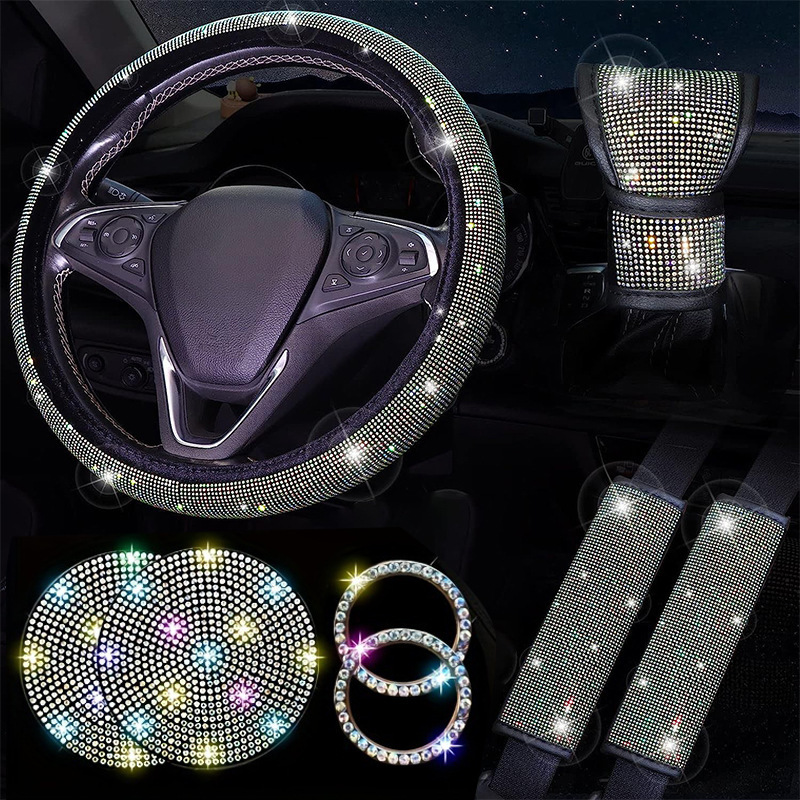 자동차 다이아몬드 스티어링 휠 커버 반짝이는 모조 다이아몬드 안전 벨트 커버 자동차 컵 코스터 크로스 보더 멀티 세트 조합스토어 가기