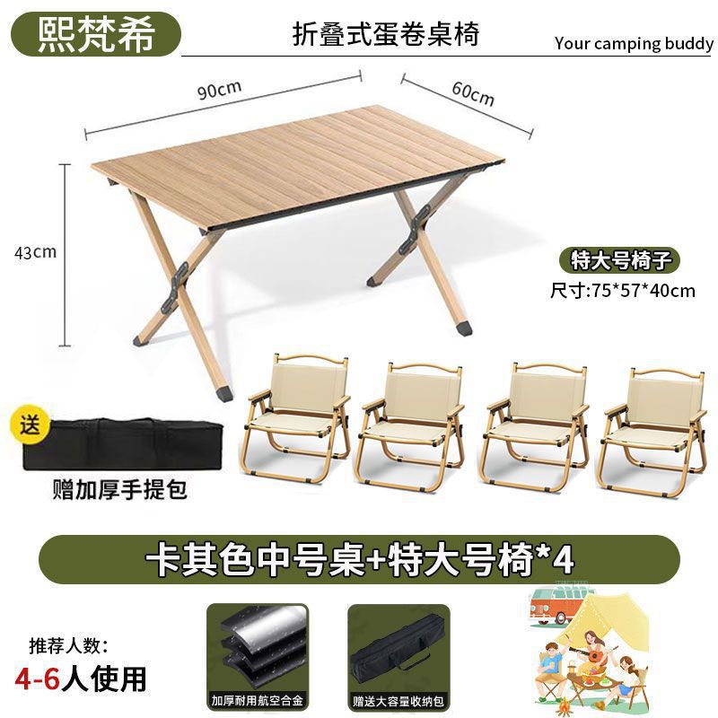 • 90CM 카키색 테이블 + 특대형 의자*4