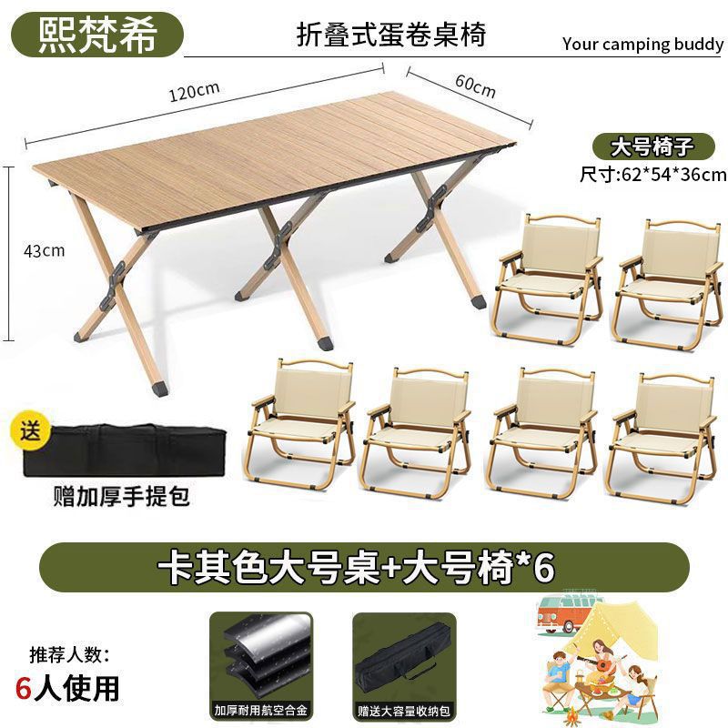 • 120CM 카키색 테이블 + 특대형 의자*6