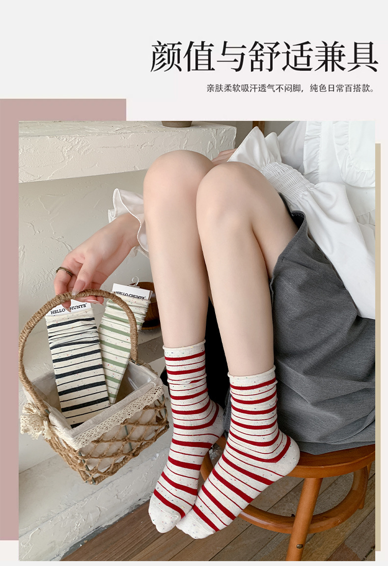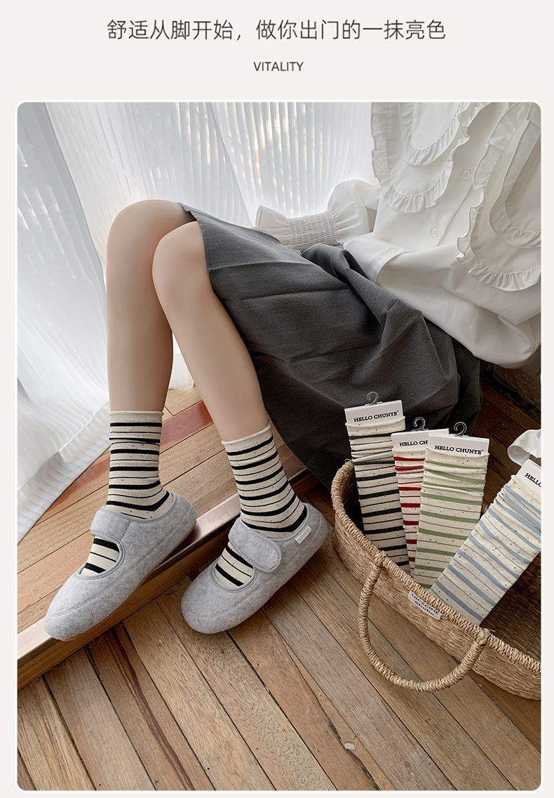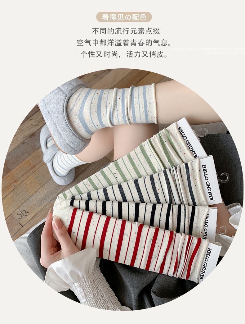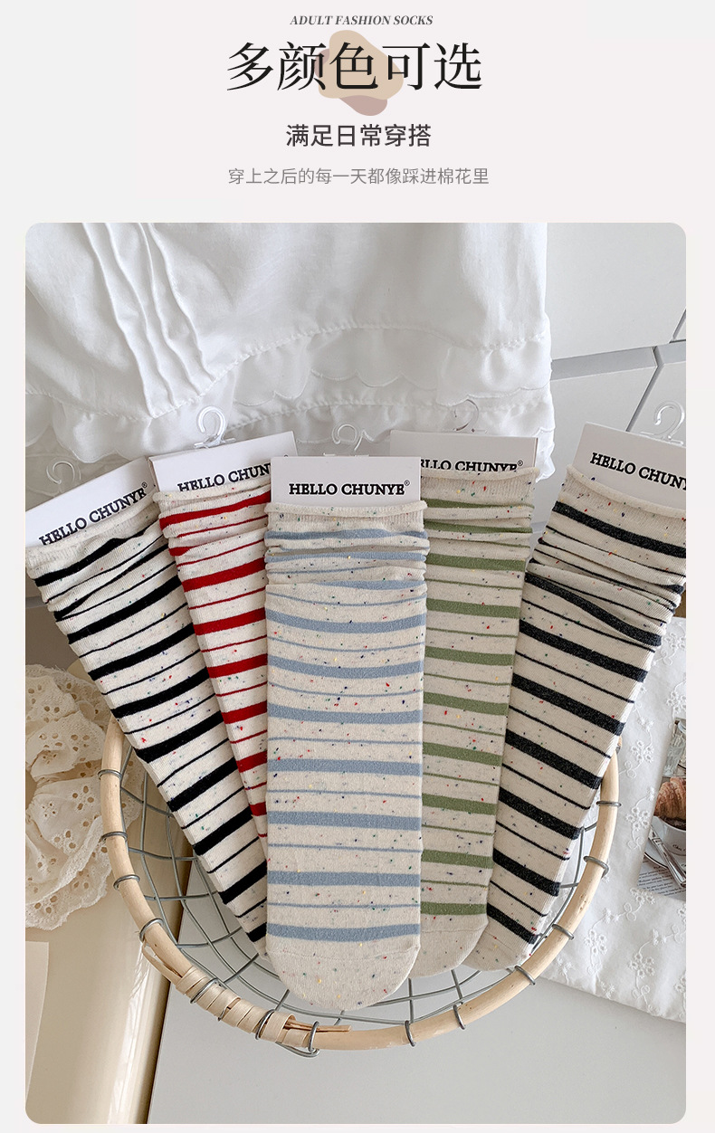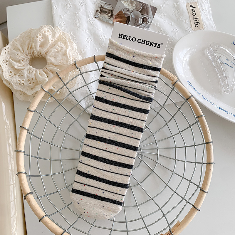 한국 스타일 양말 여성 학술 스타일 도트 원사 롤 가장자리 줄무늬 스택 양말 봄과 여름 얇은 내부 트렌디 양말 미드 튜브 코튼 양말스토어 가기