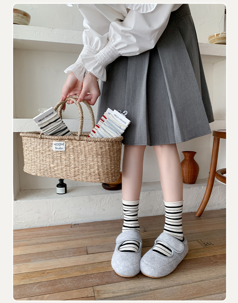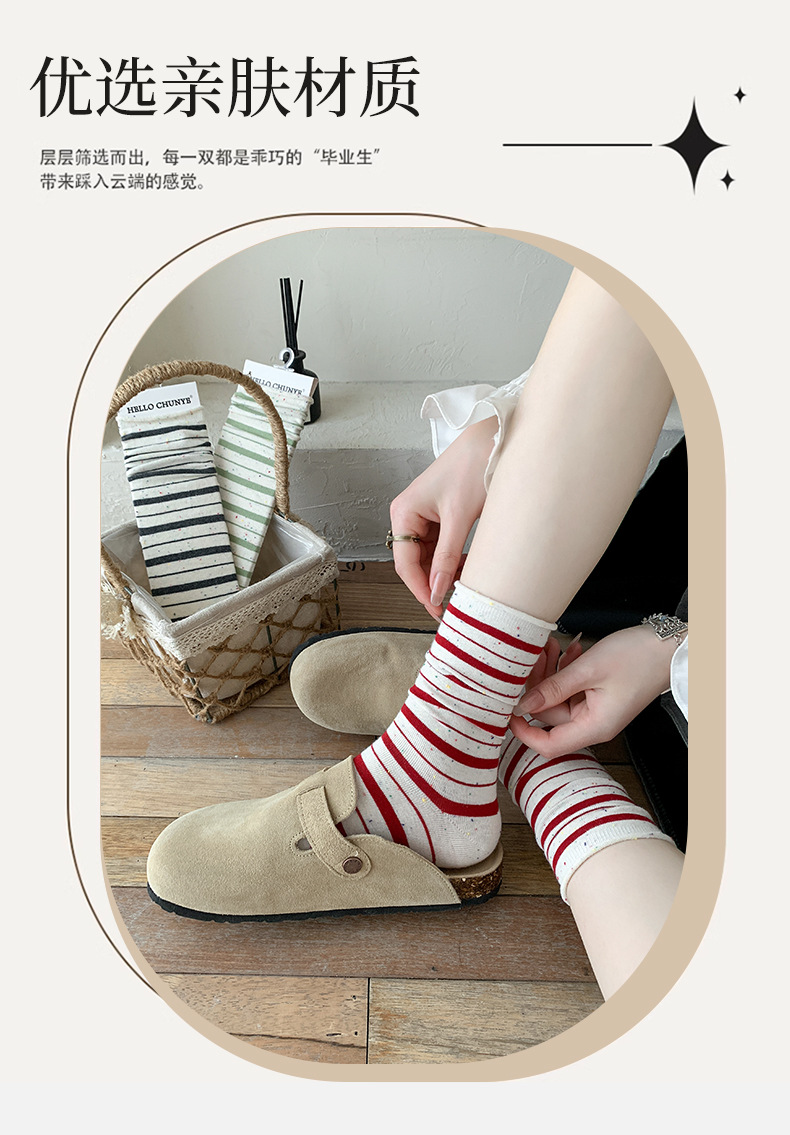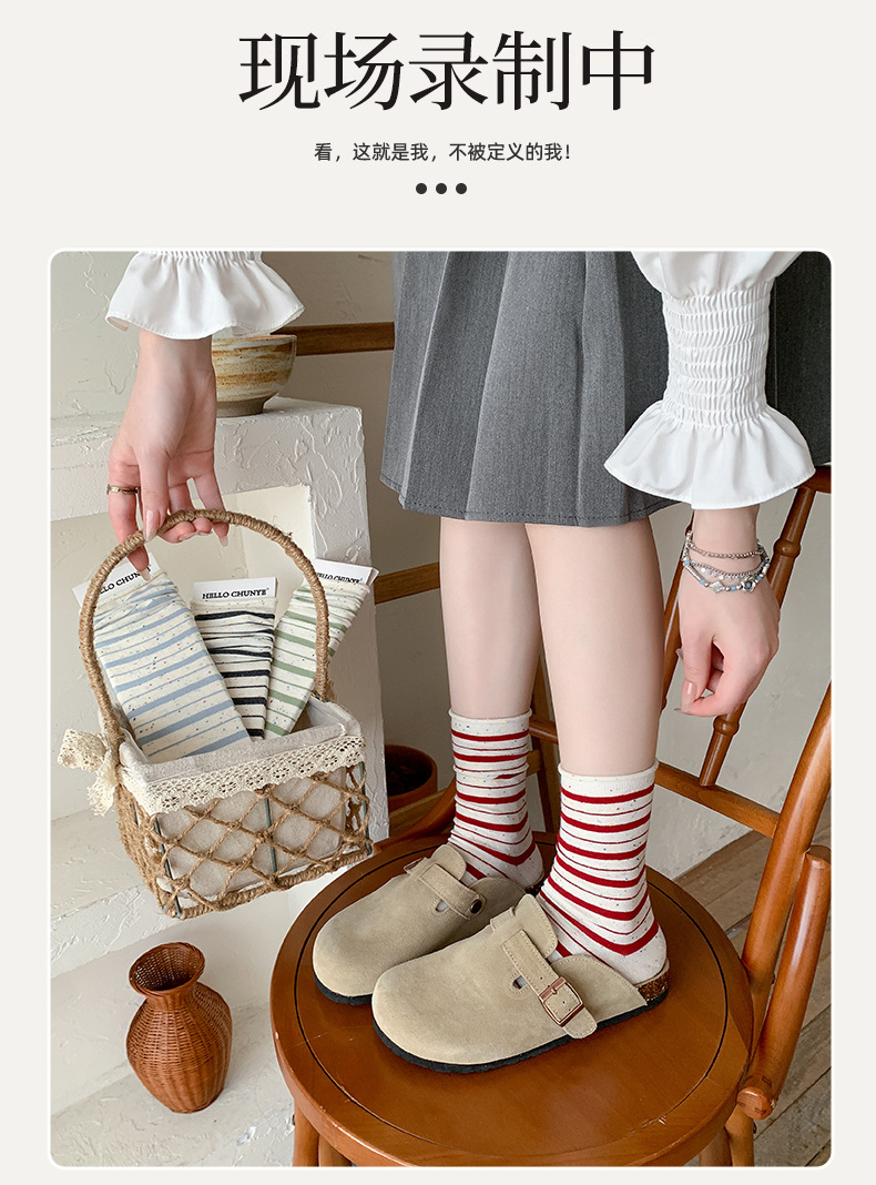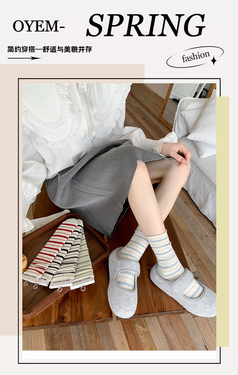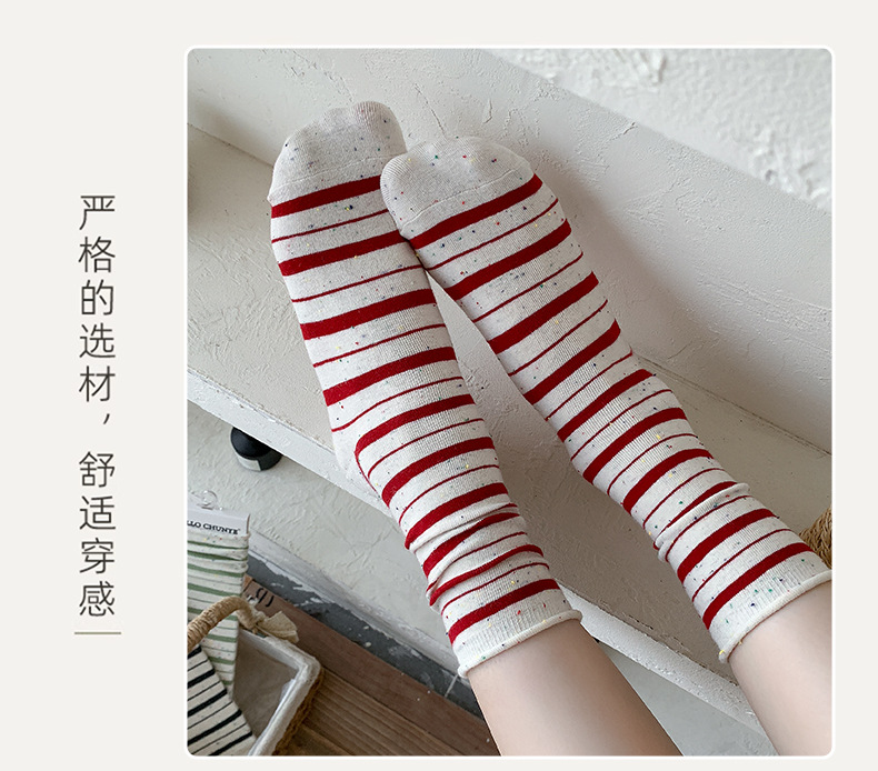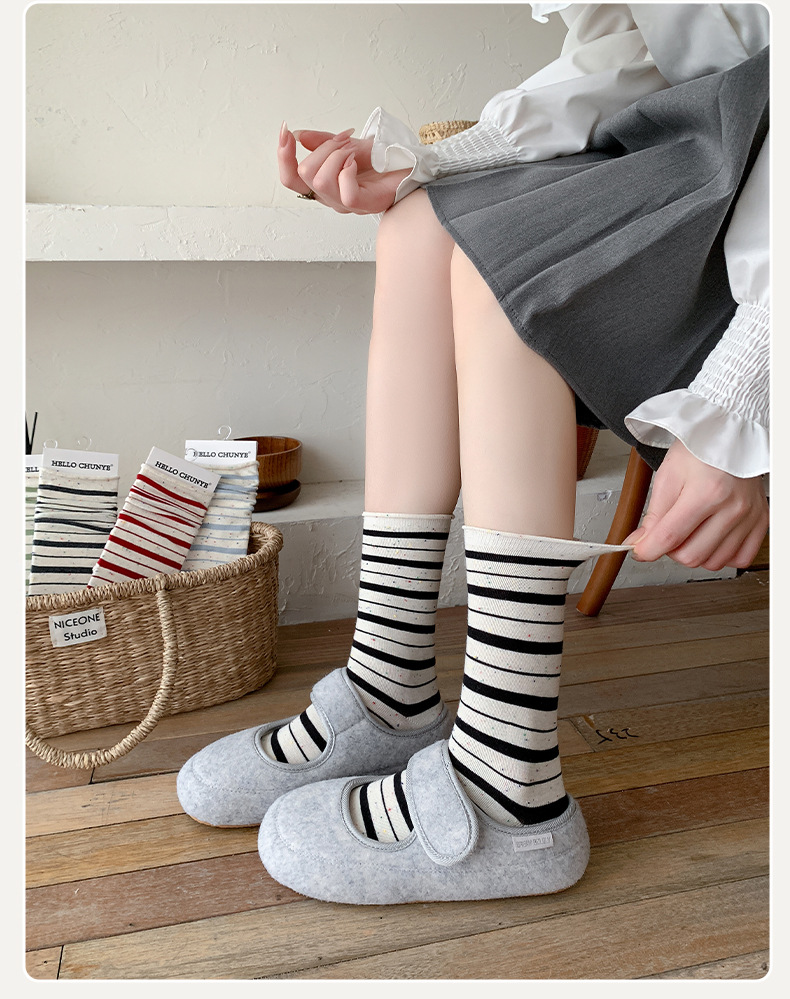 한국 스타일 양말 여성 학술 스타일 도트 원사 롤 가장자리 줄무늬 스택 양말 봄과 여름 얇은 내부 트렌디 양말 미드 튜브 코튼 양말스토어 가기