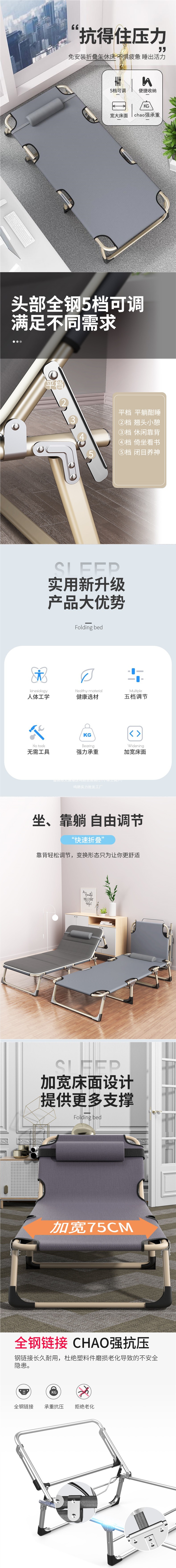 접이식 침대 싱글 침대 낮잠 가정용 간단한 낮잠 침대 동반자 휴대용 다기능 캠프 침대 사무실 안락 의자스토어 가기