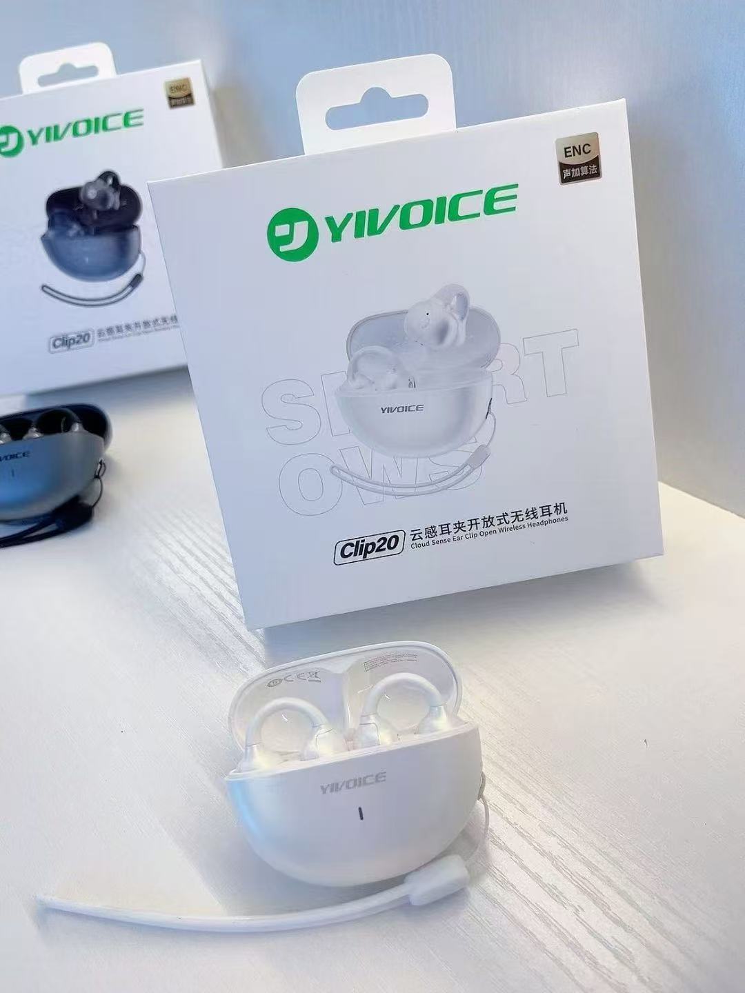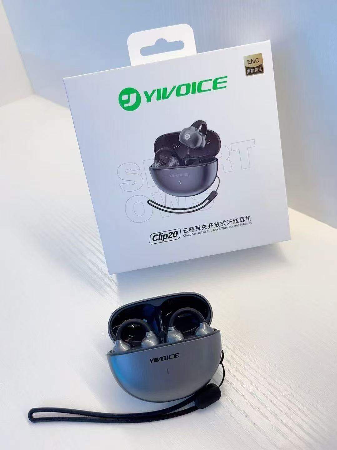 Yisheng Clip20 이어 클립형 Bluetooth 6.0 헤드셋, 1-2 사운드 플러스 알고리즘, 4개의 마이크, 매우 선명한 통화, 경량 모델