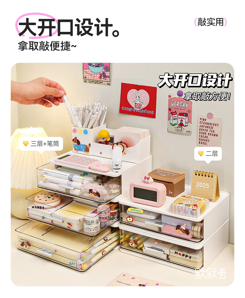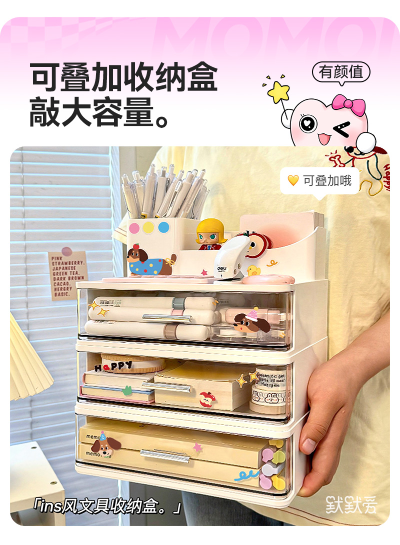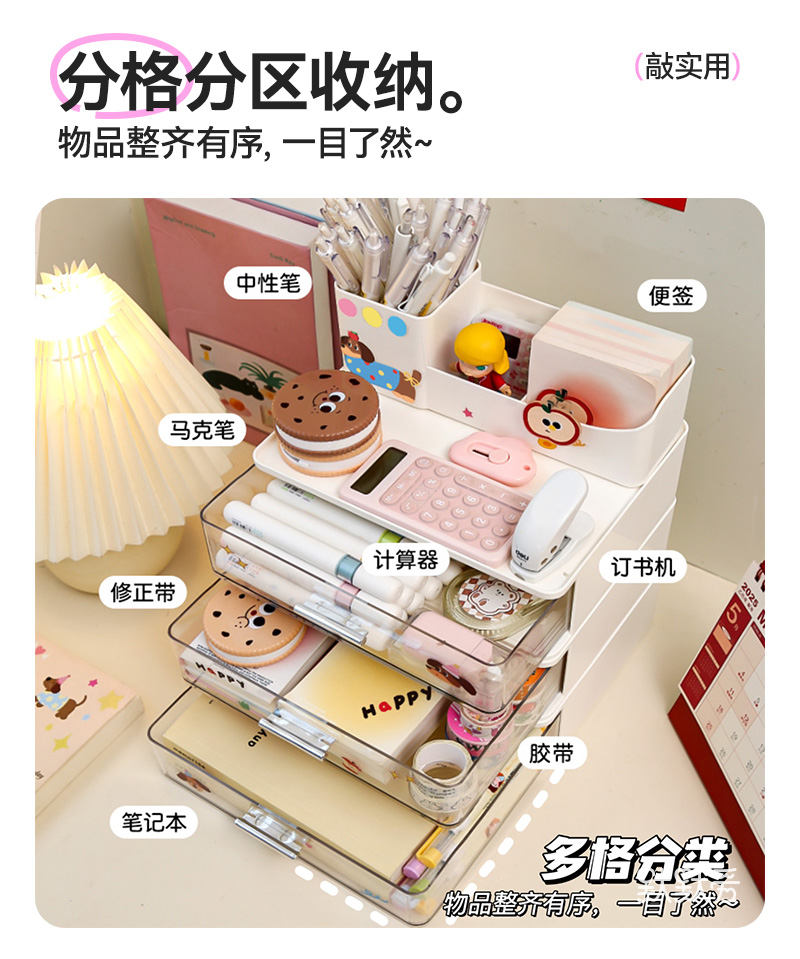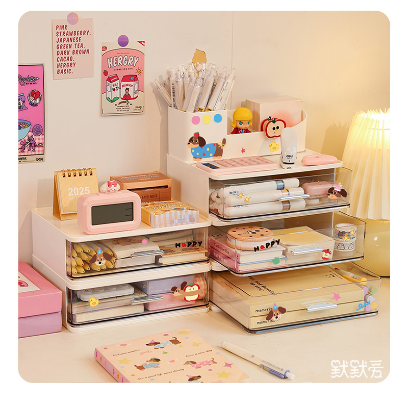 다층 서랍형 데스크탑 수납함, 학생용 책상, 문구류 정리함, 사무실 워크스테이션 투명 수납함