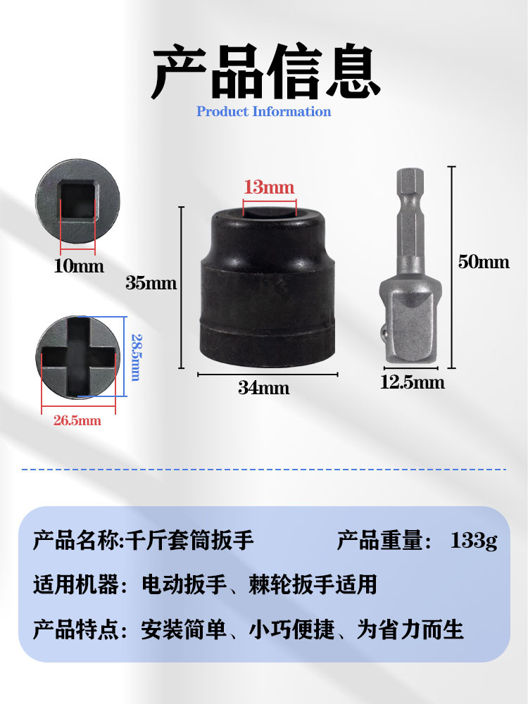 블랙 잭 소켓 렌치 자동차 잭 노동 절약 렌치 높은 경도 전기 렌치 타이어 언로드 소켓 노동자스토어 가기