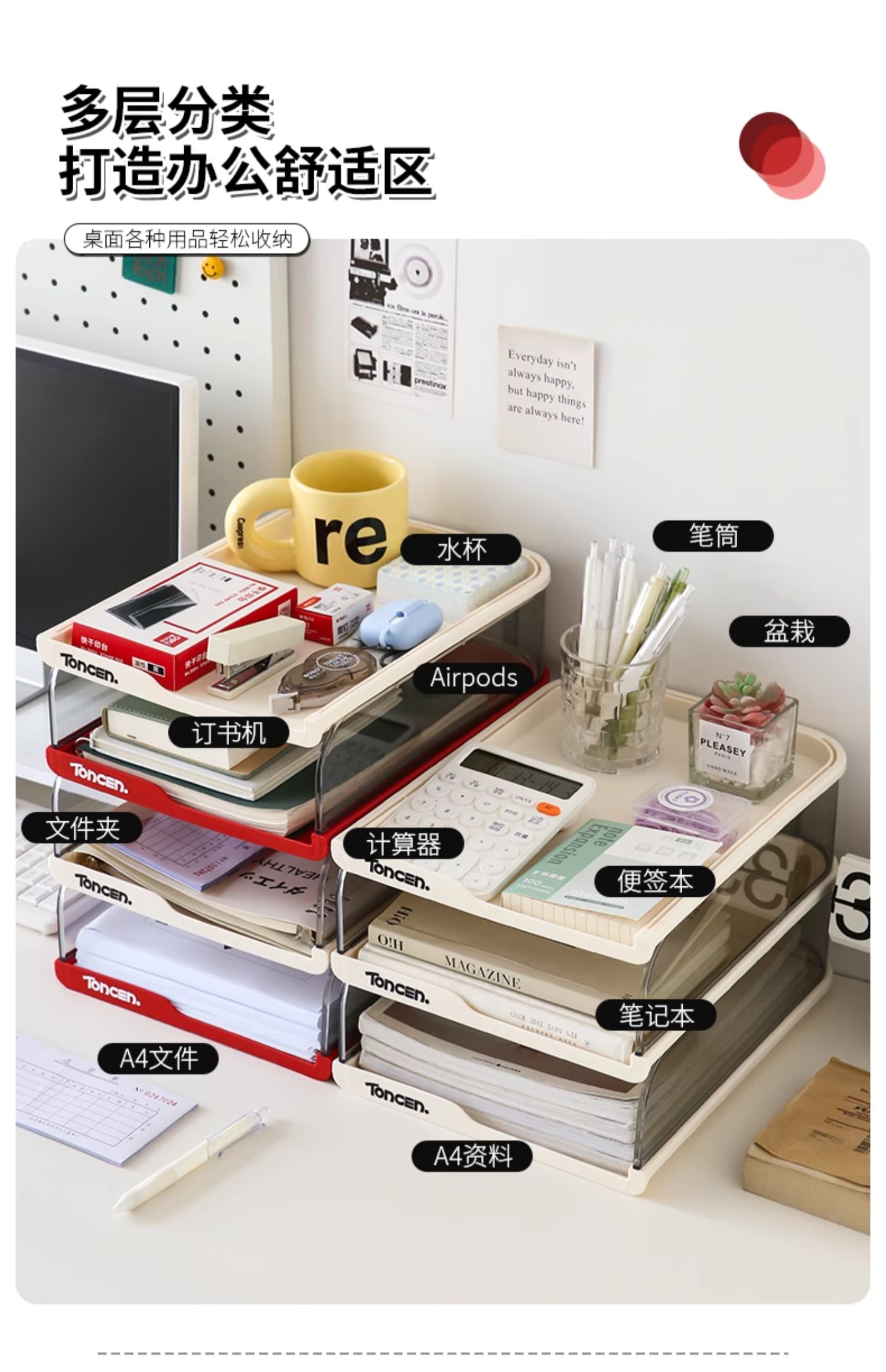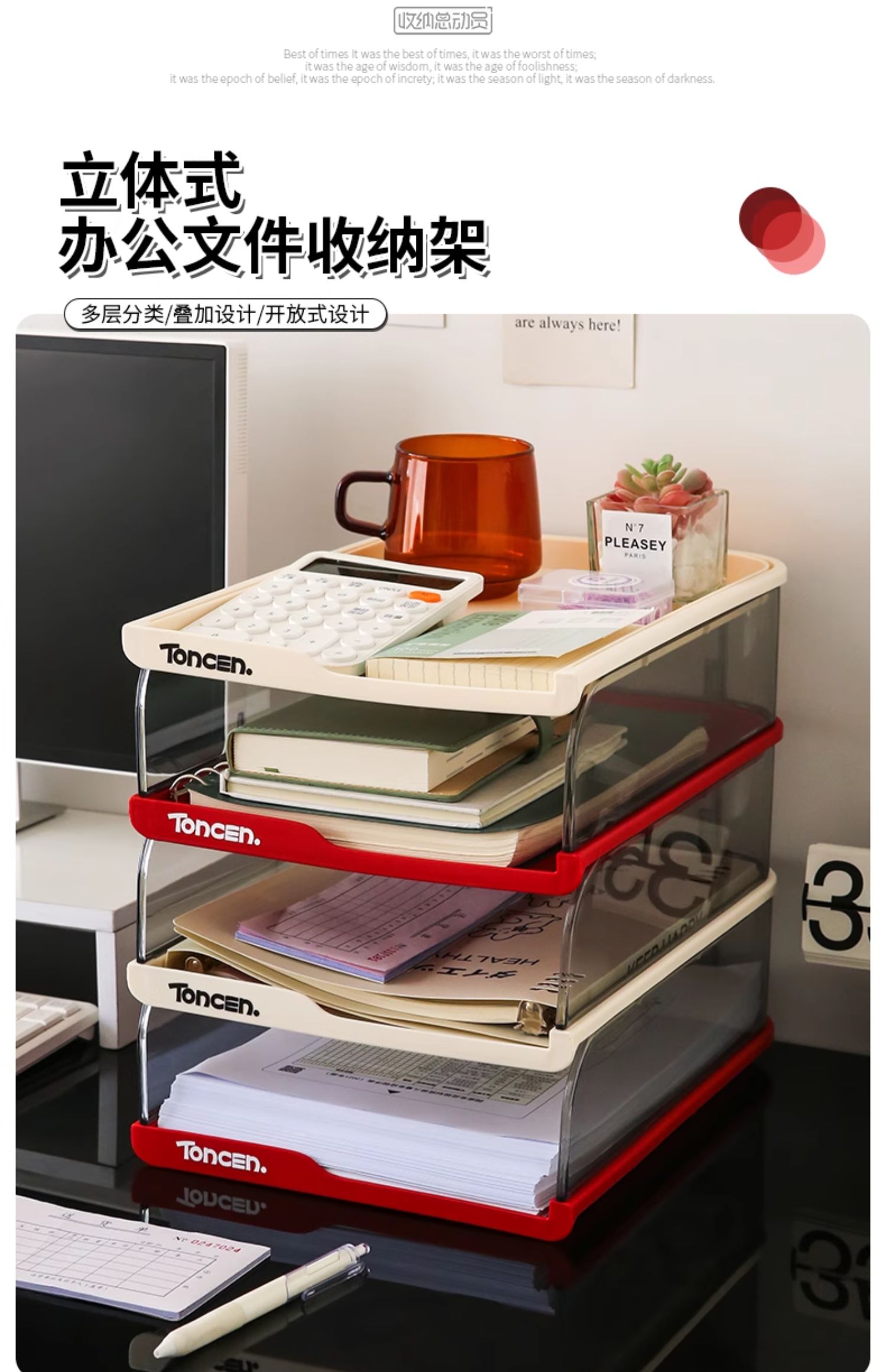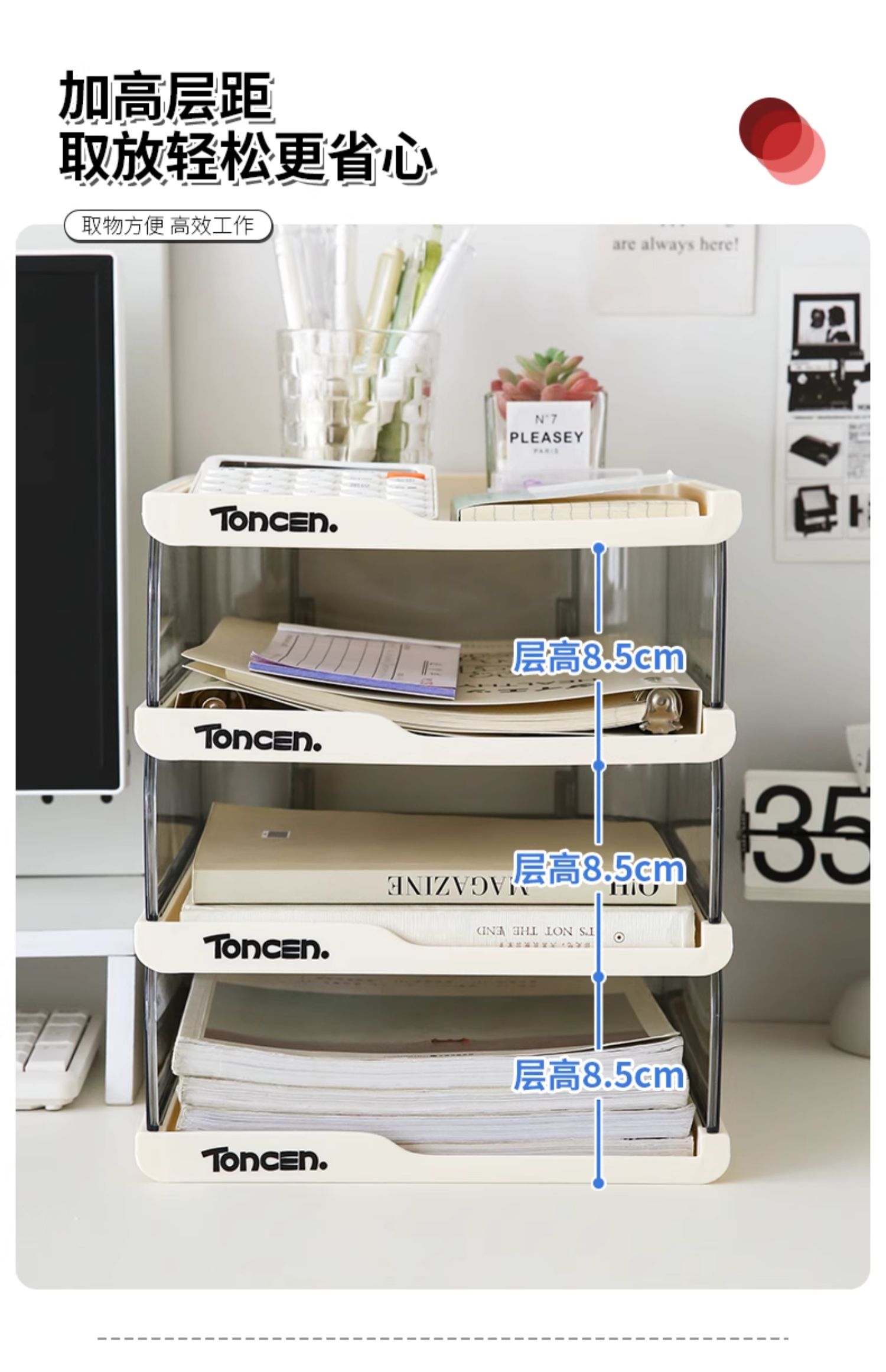 데스크탑 파일 보관함 투명 다층 보관함 책장 사무실 책상 정보 랙 도파민 보관함스토어 가기