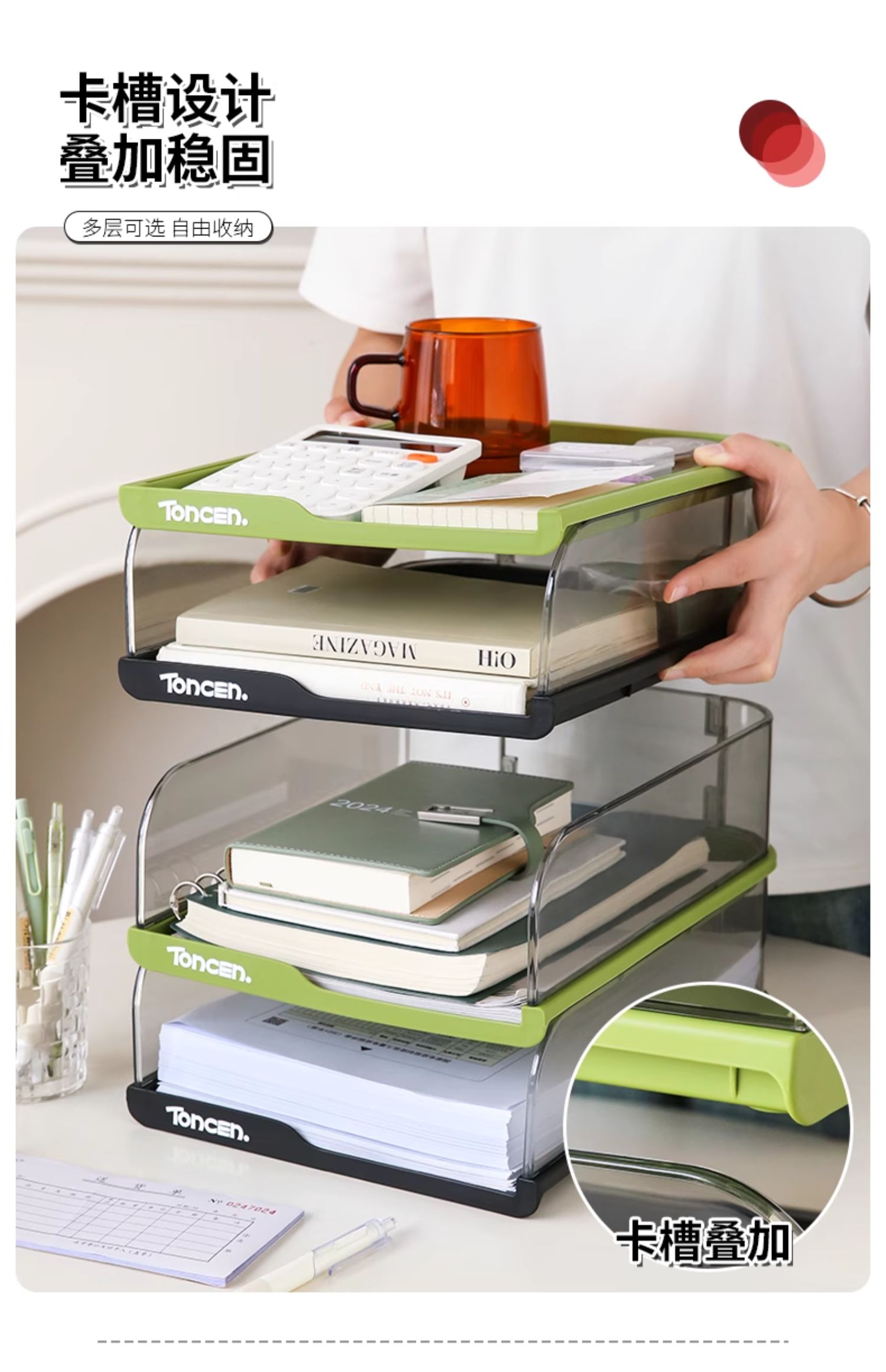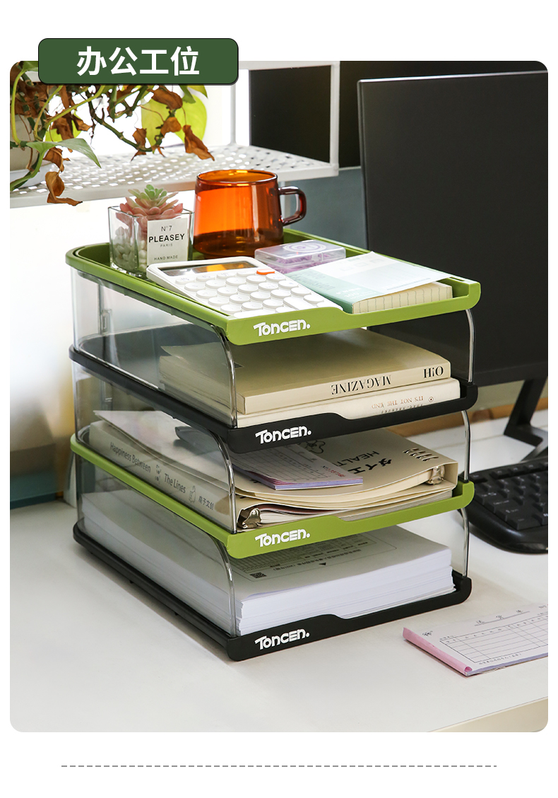 데스크탑 파일 보관함 투명 다층 보관함 책장 사무실 책상 정보 랙 도파민 보관함