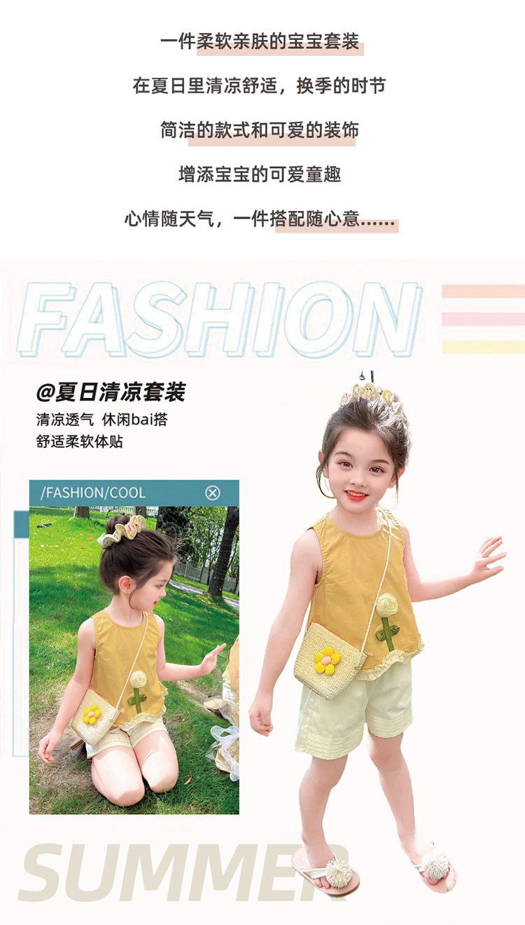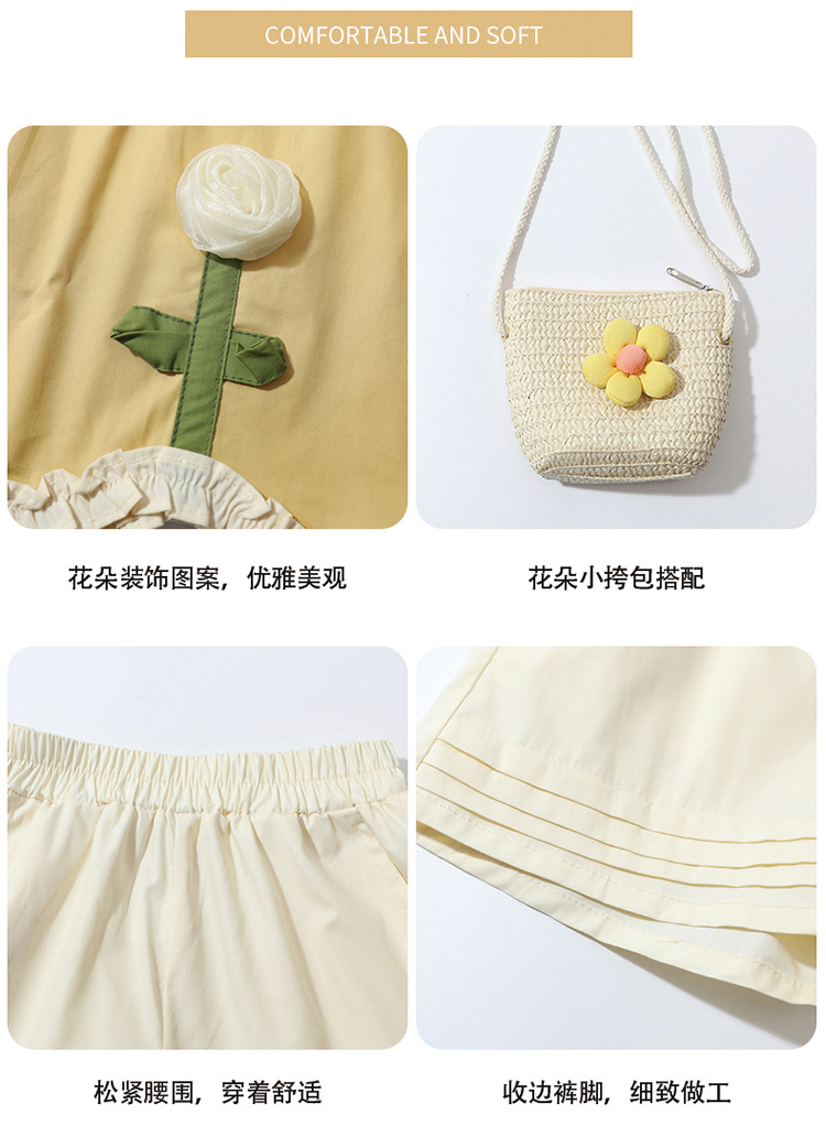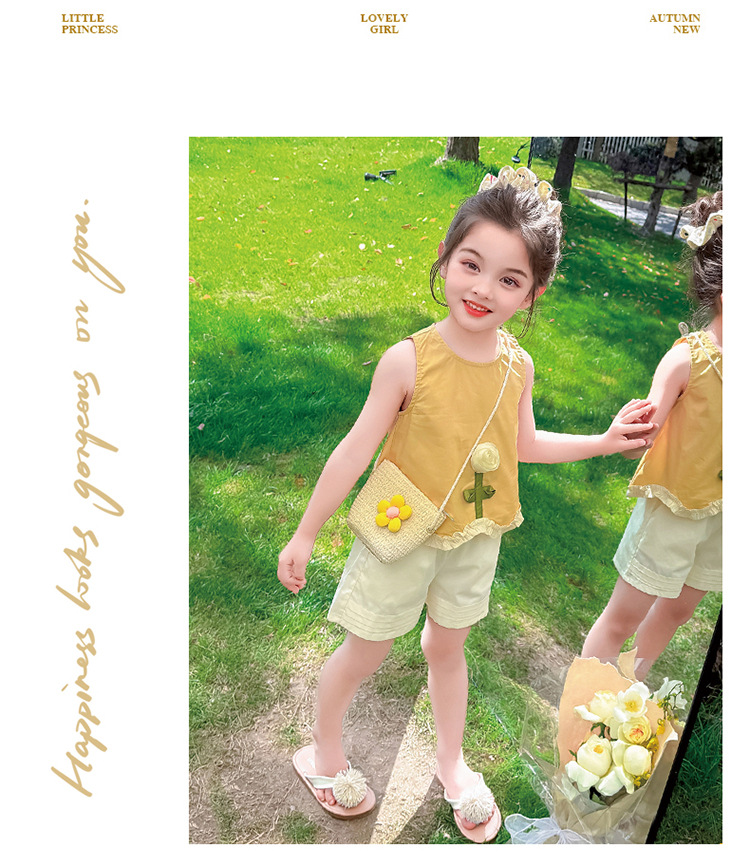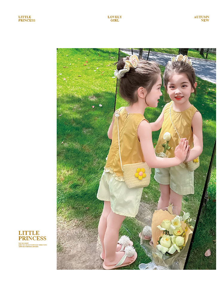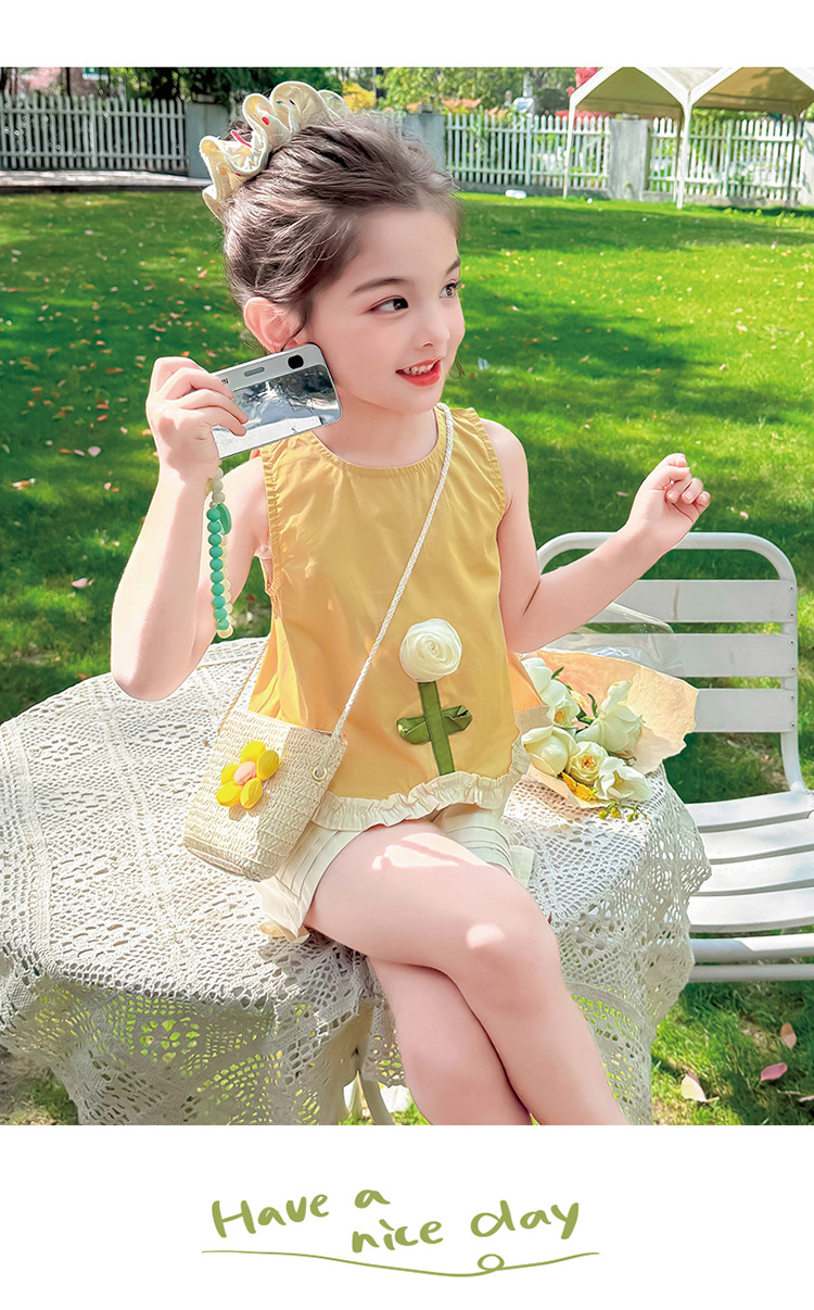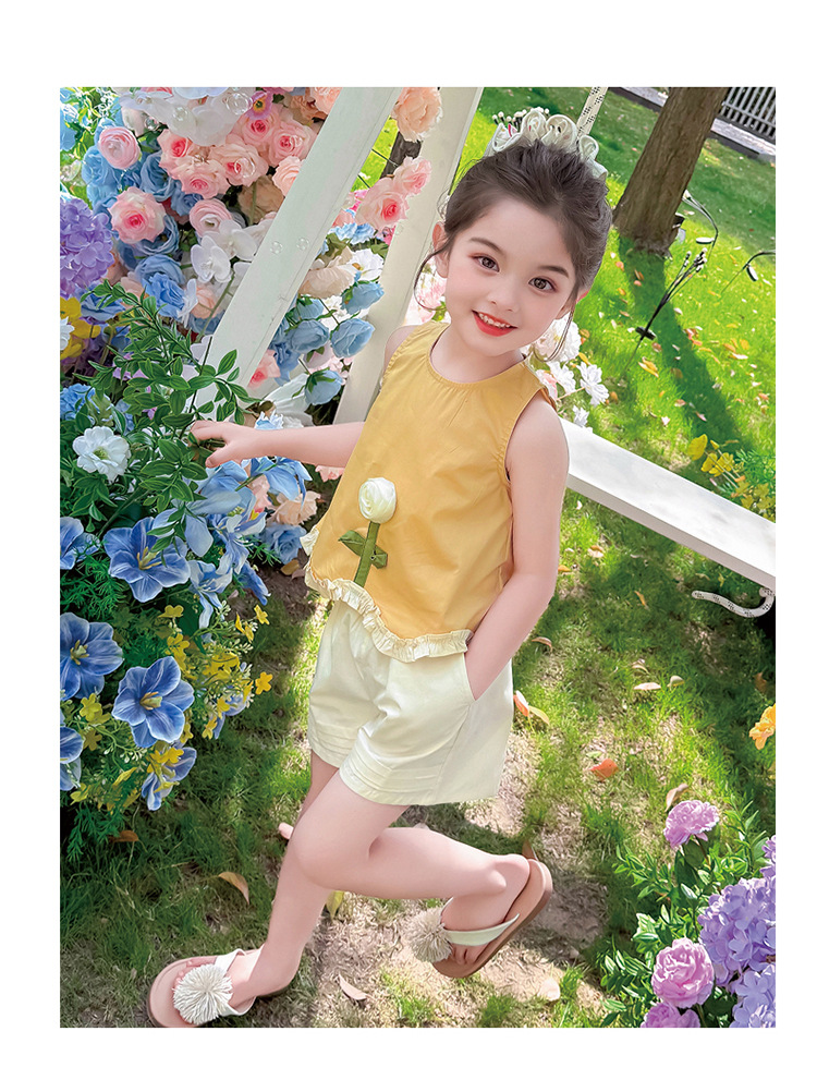 소녀의 세련된 3 차원 꽃 귀 가장자리 세트 2025 여름 새로운 패션 소녀의 세련된 투피스 세트
