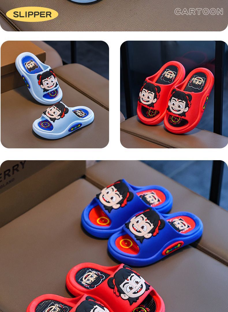 Nezha 어린이 슬리퍼 새로운 여름 2025 소년 미끄럼 방지 아기 목욕 실내 홈 만화 소녀 슈퍼 소프트스토어 가기