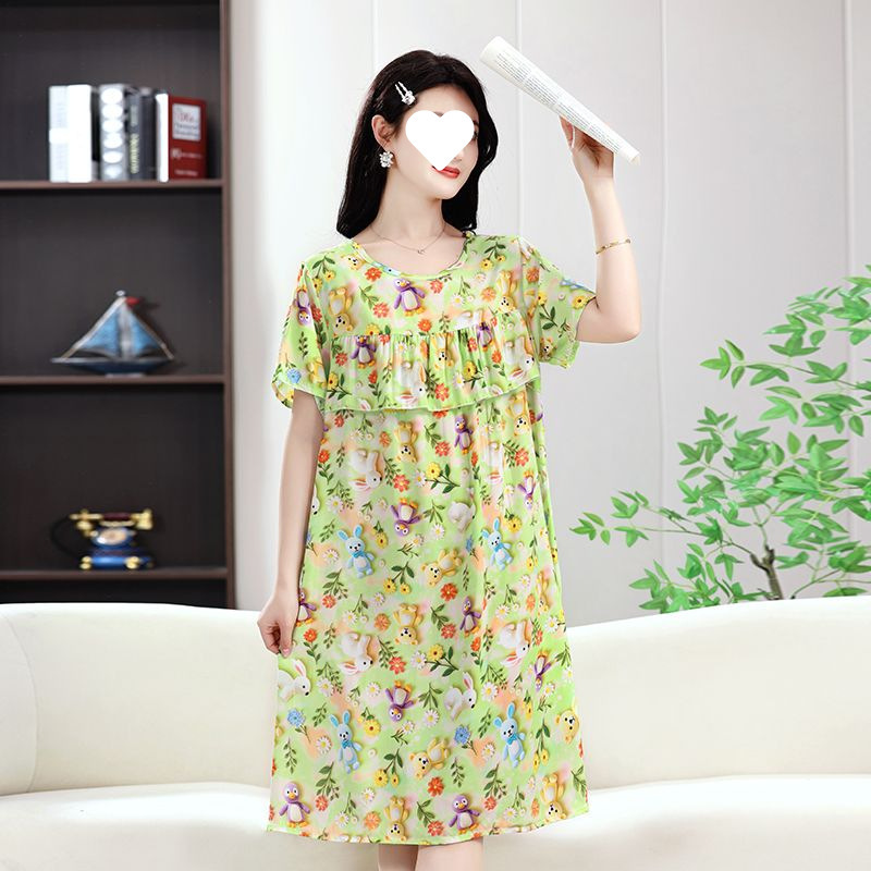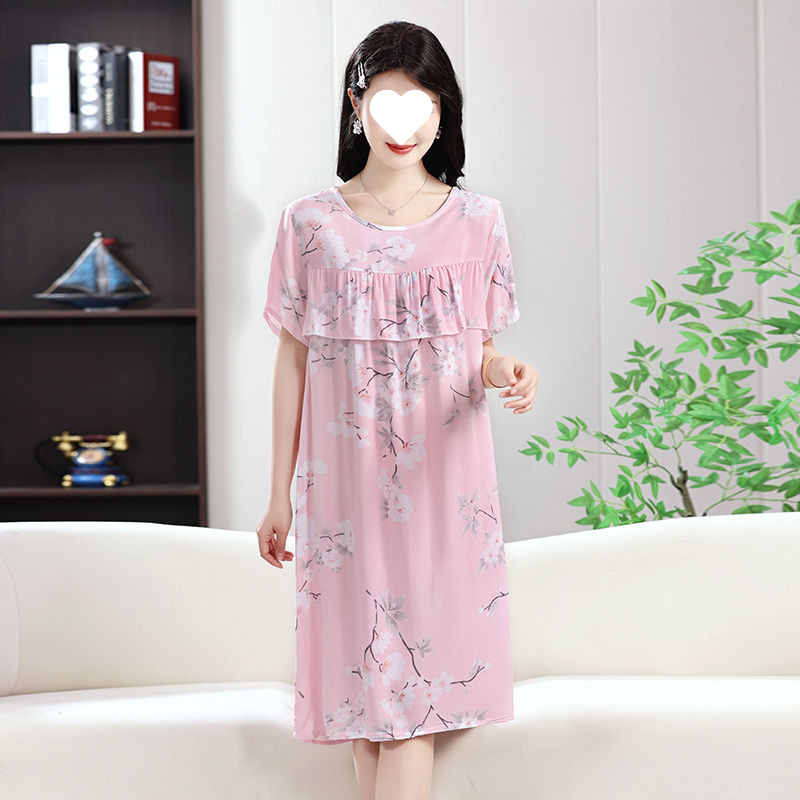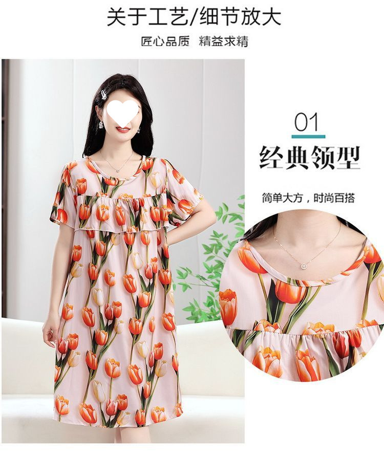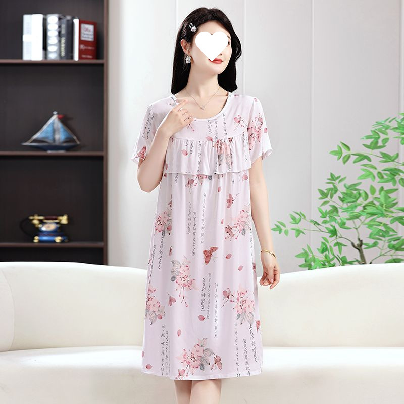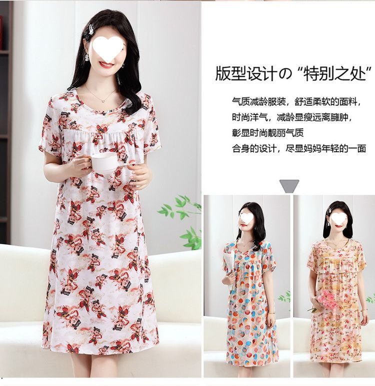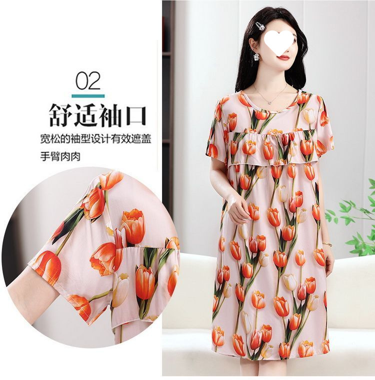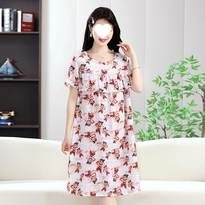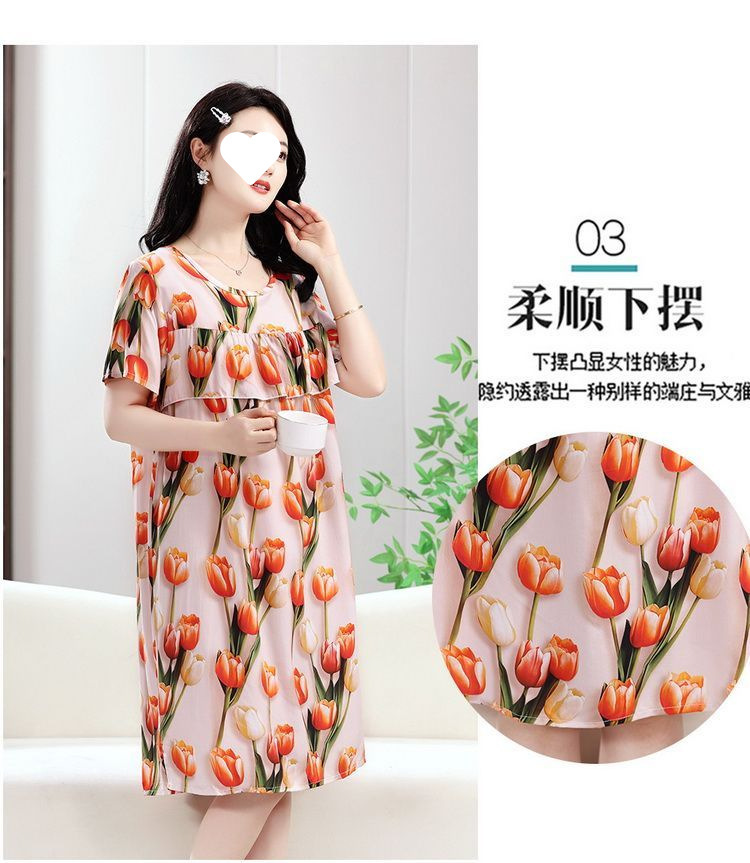 코튼 실크 반팔 나이트가운 어머니의 여름 여성 안티 범프 파자마 무릎 위 느슨한 플러스 사이즈 홈 의류 원피스 여성