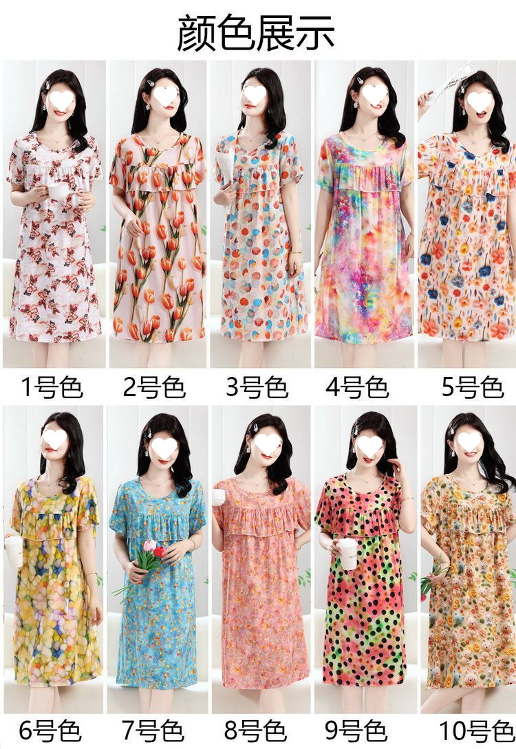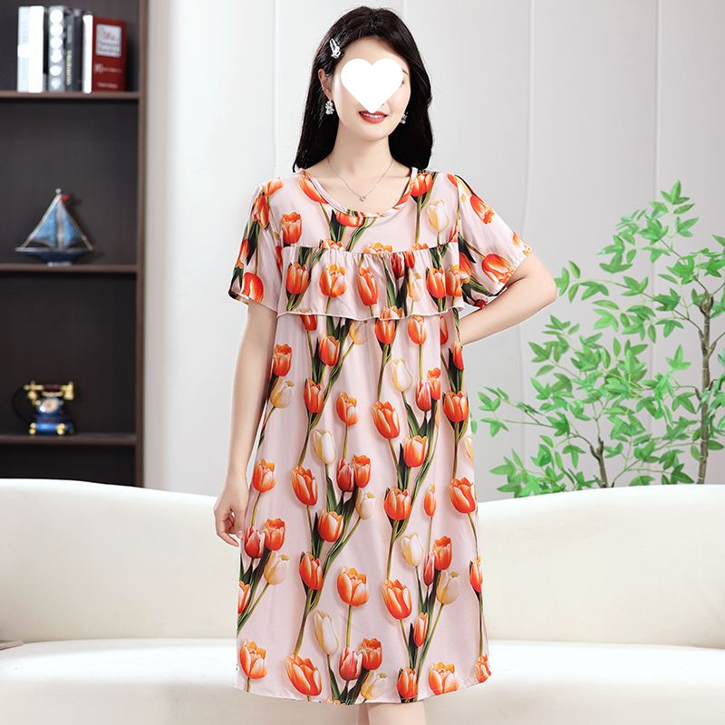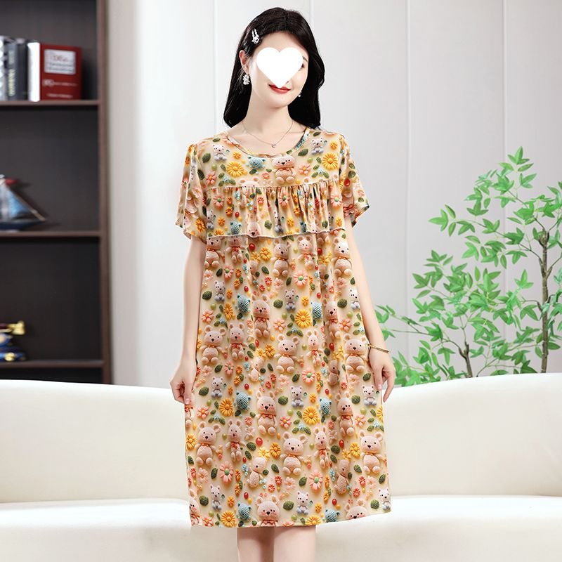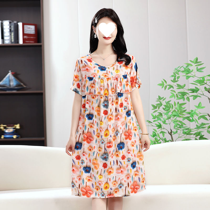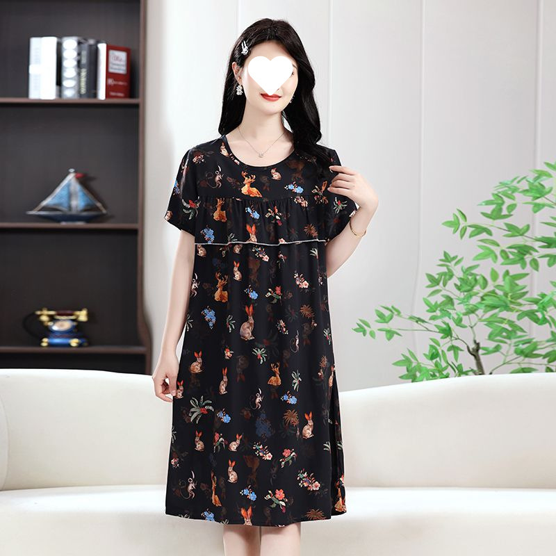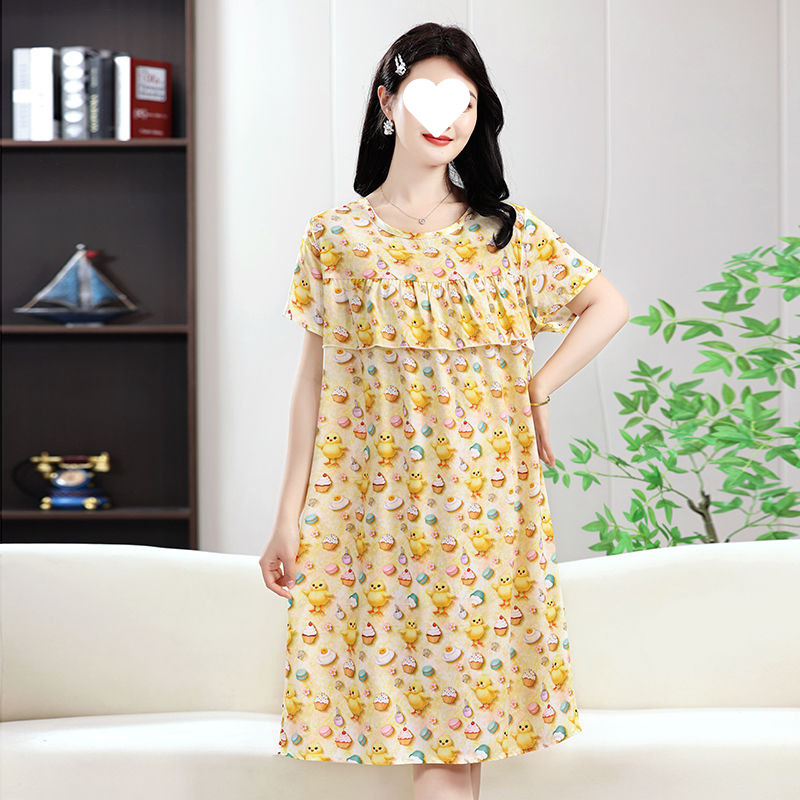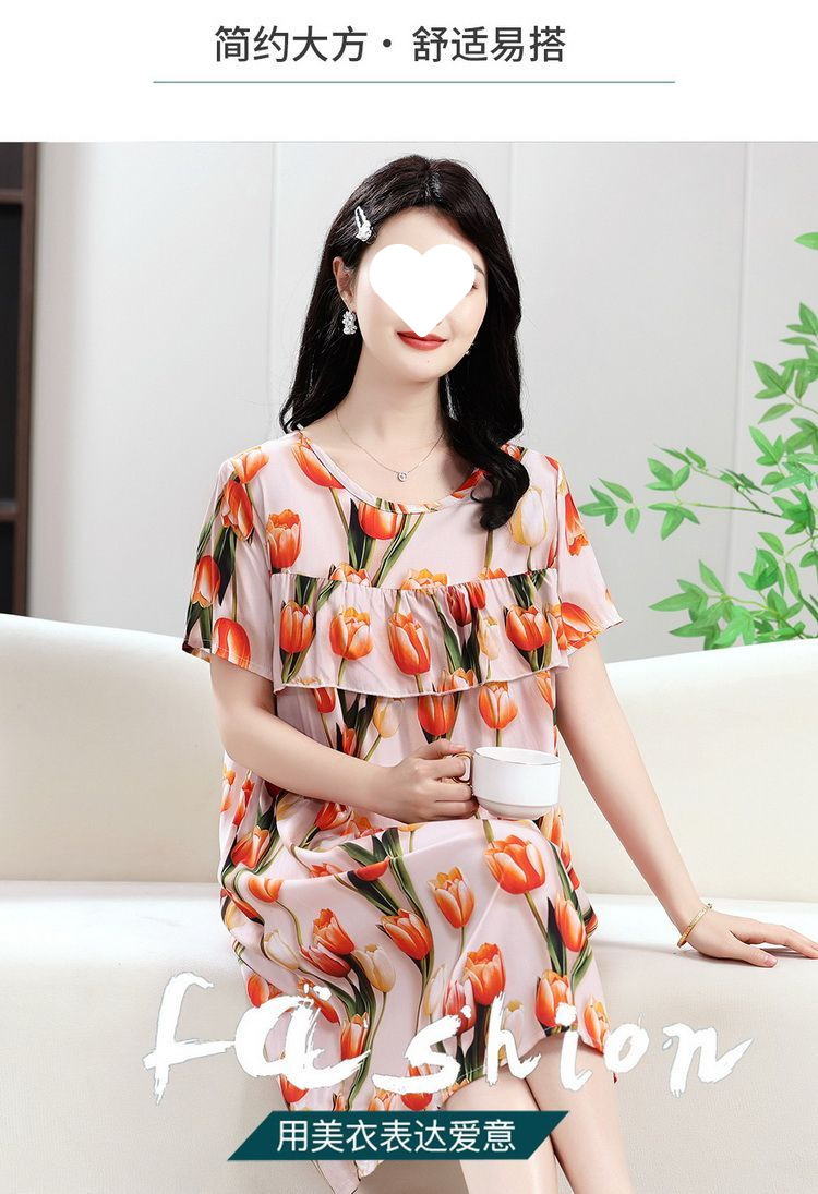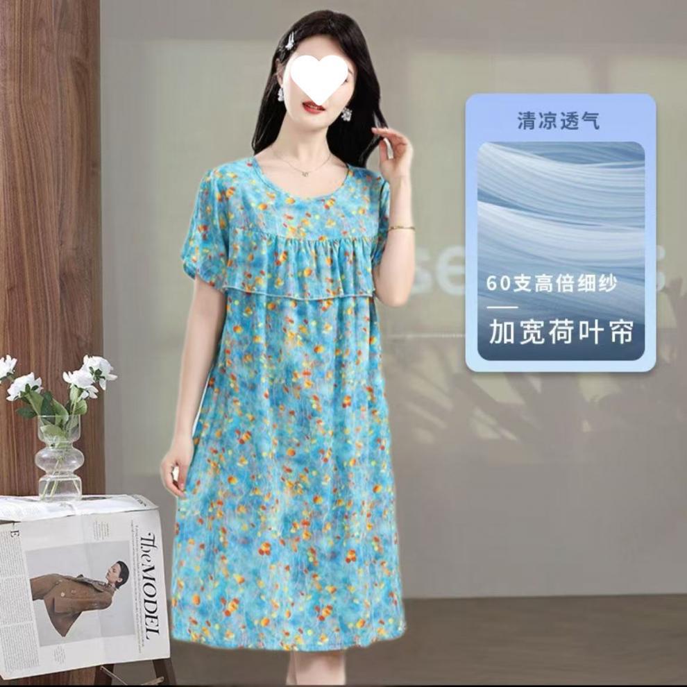 코튼 실크 반팔 나이트가운 어머니의 여름 여성 안티 범프 파자마 무릎 위 느슨한 플러스 사이즈 홈 의류 원피스 여성