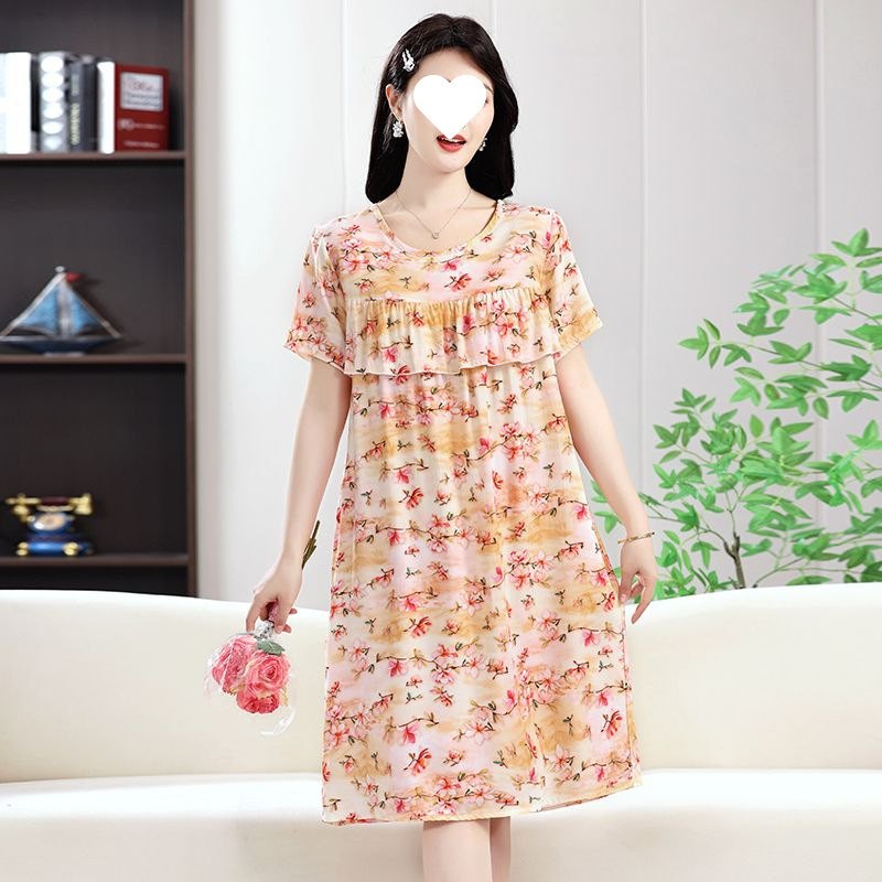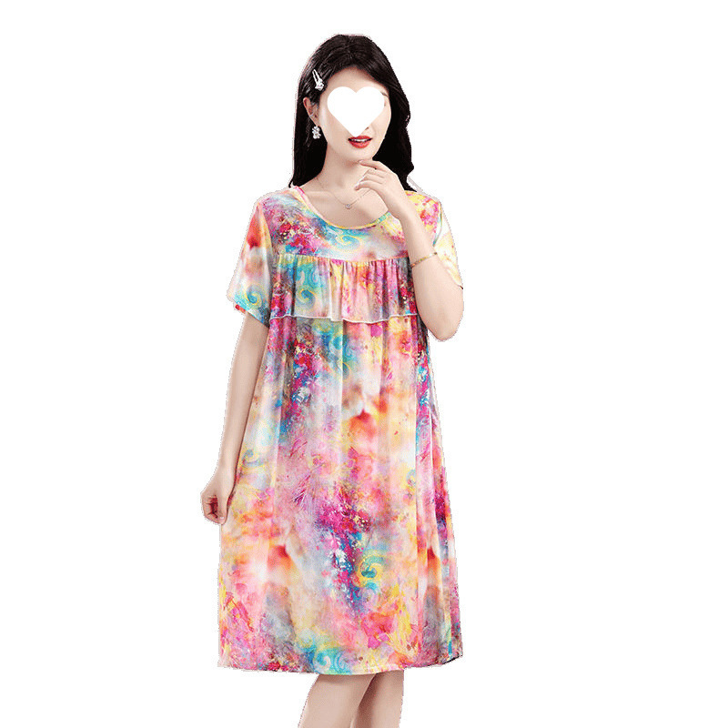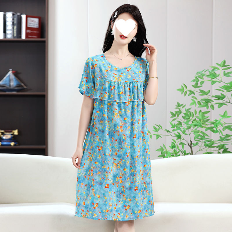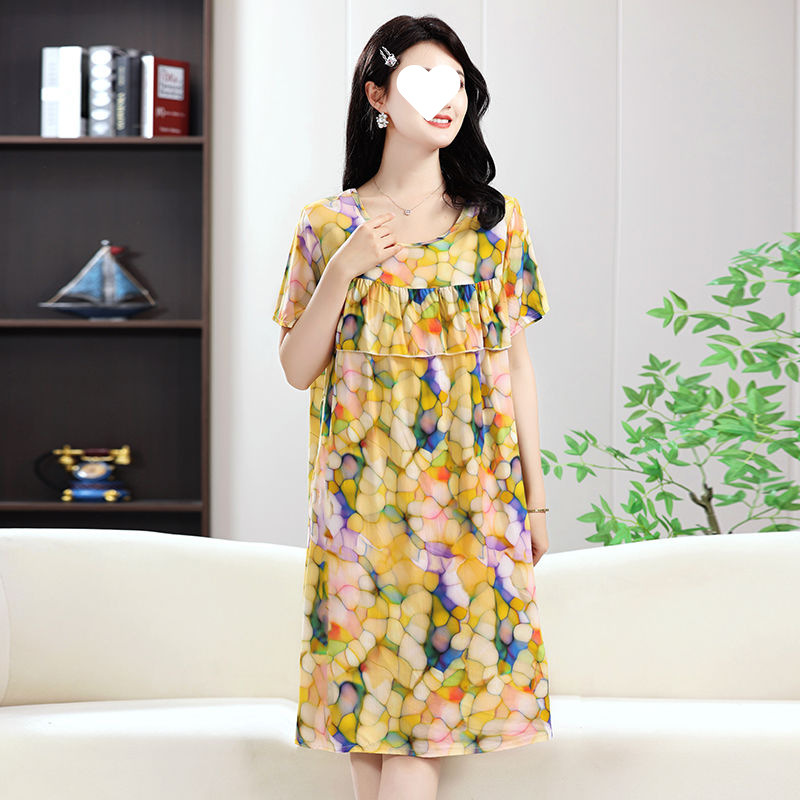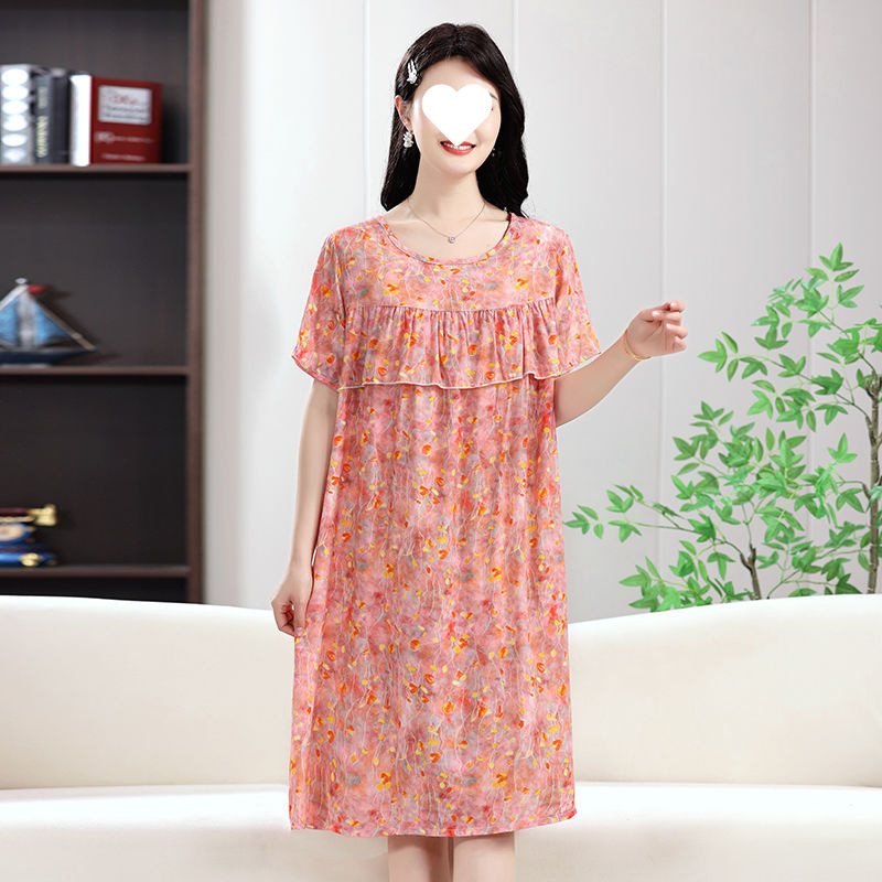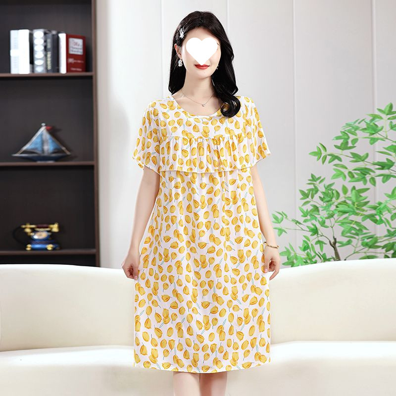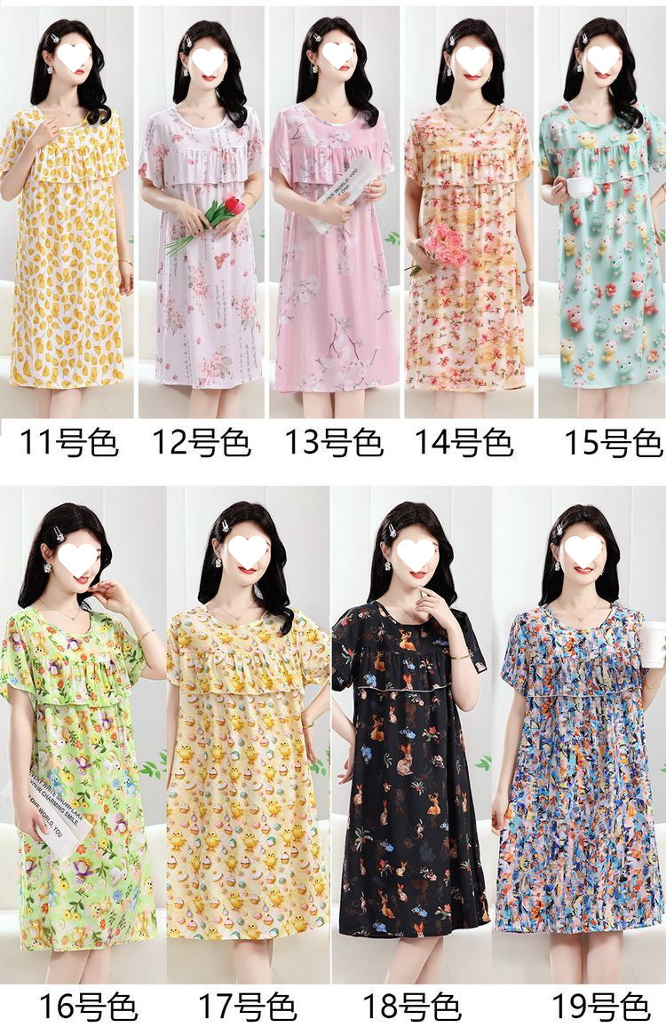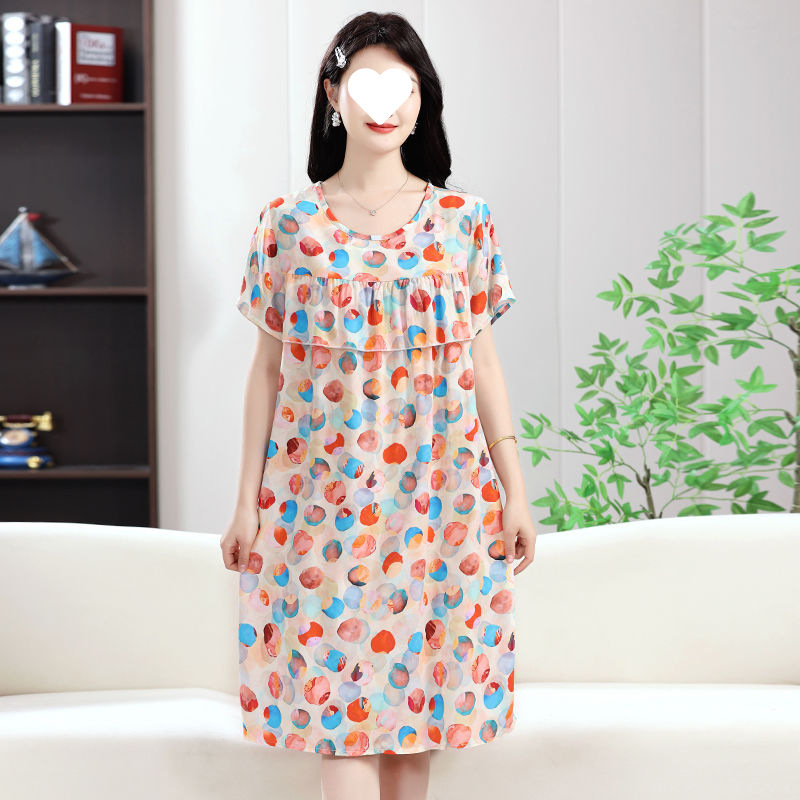 코튼 실크 반팔 나이트가운 어머니의 여름 여성 안티 범프 파자마 무릎 위 느슨한 플러스 사이즈 홈 의류 원피스 여성
