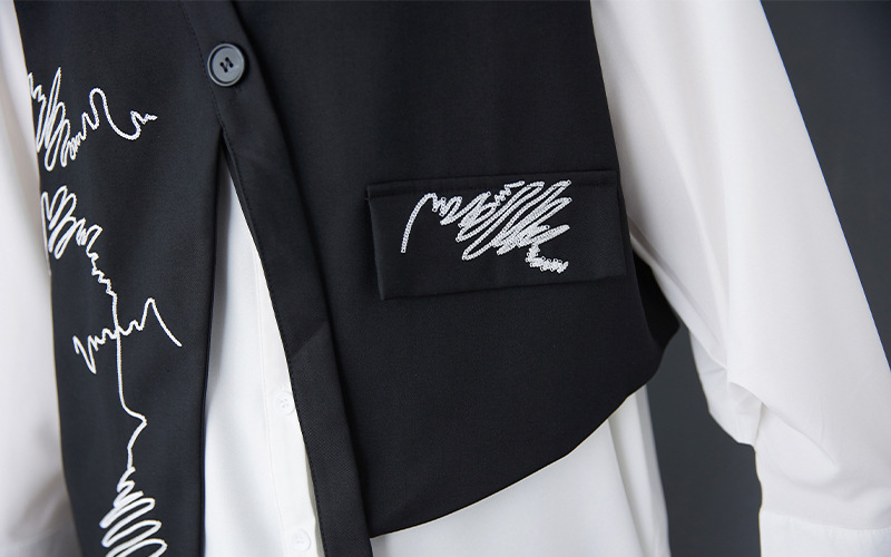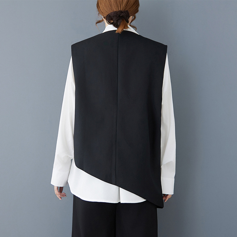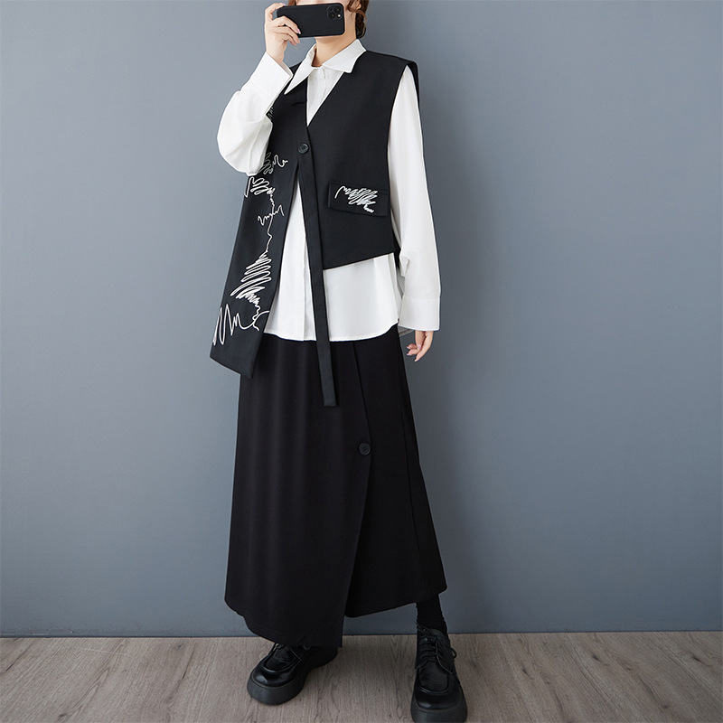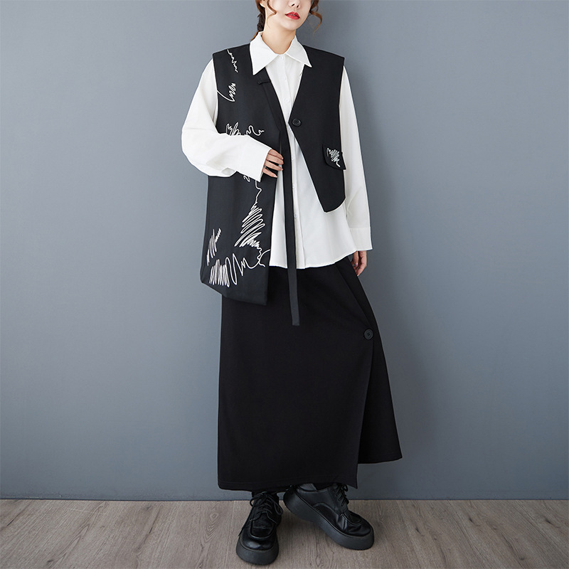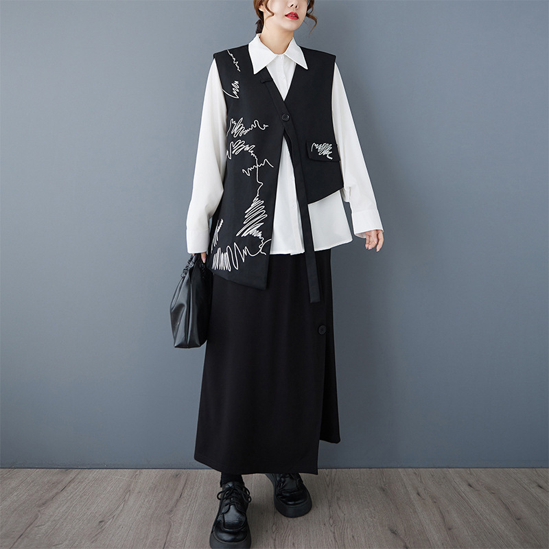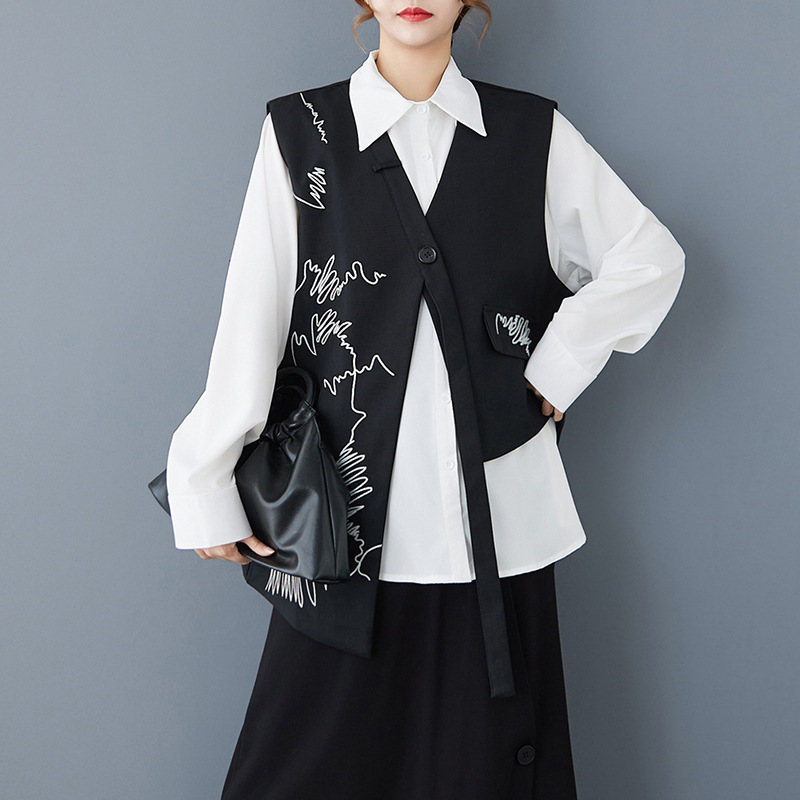 2025 봄 새로운 복고풍 검은색 조끼 디자인 불규칙한 맞춤형 자수 느슨한 패션 다재다능한 여성