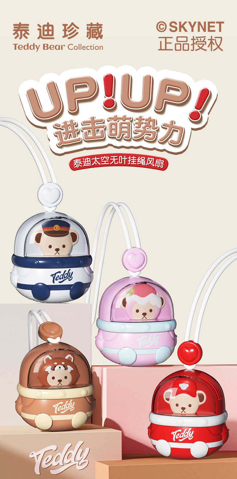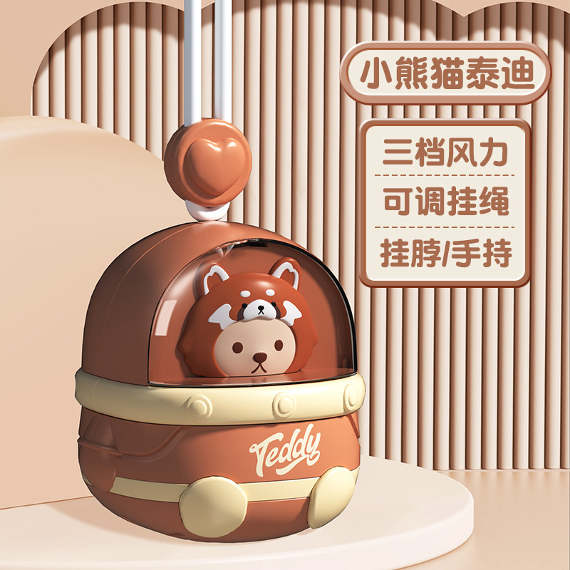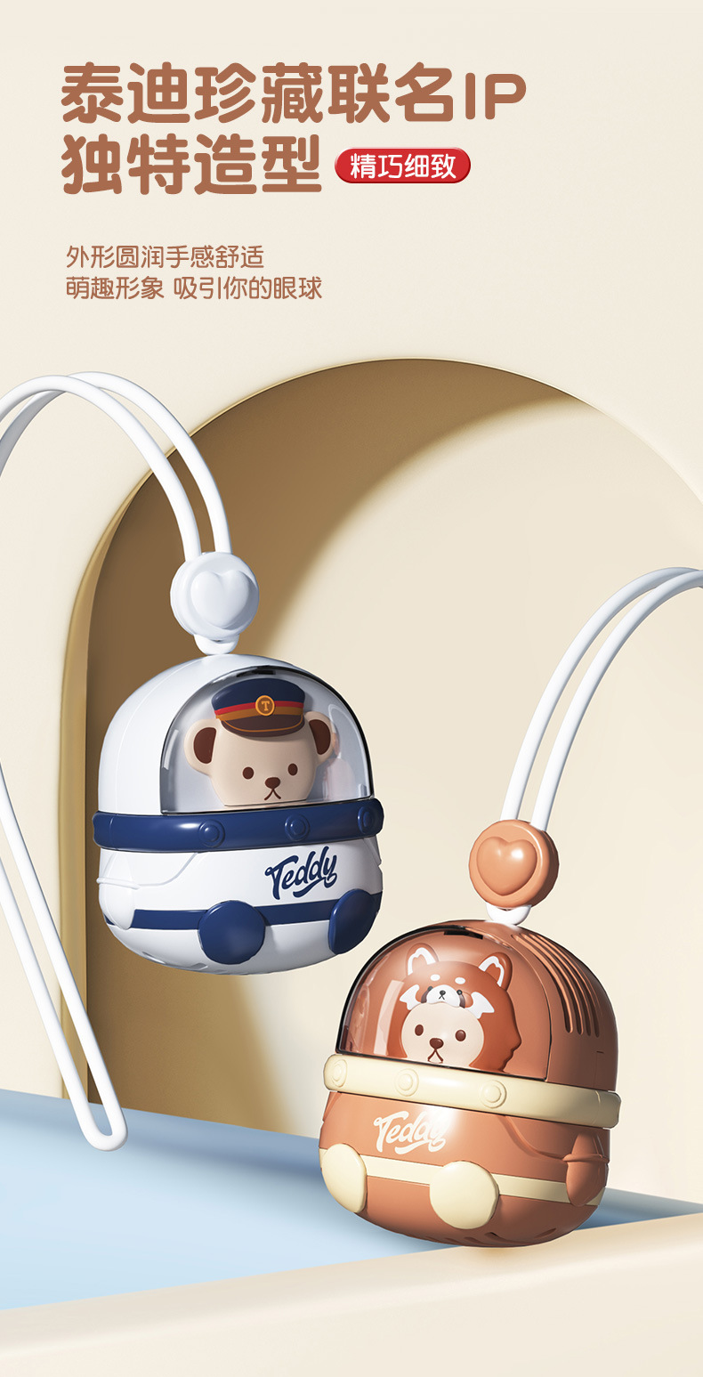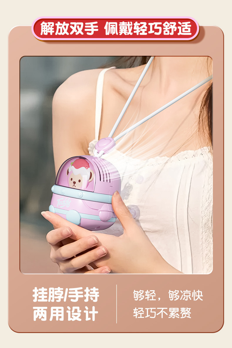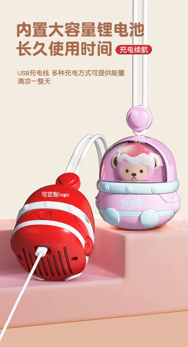 새로운 테디 팬 소형 선풍기 학생 클래스 USB 충전식 만화 교수형 목 휴대용 Bladeless 팬 소형스토어 가기