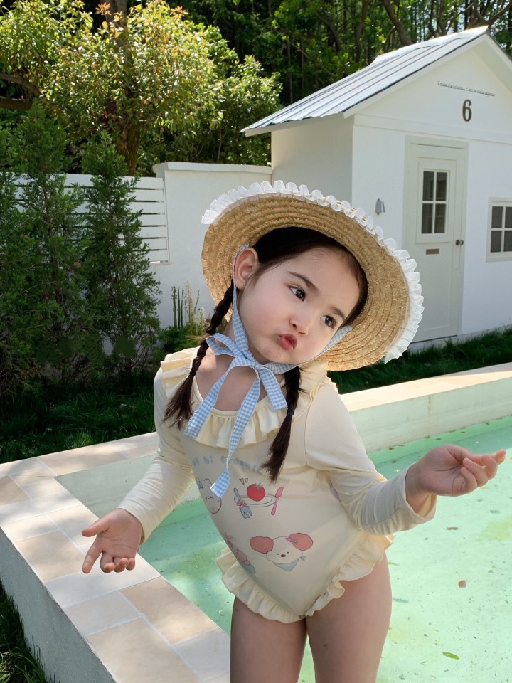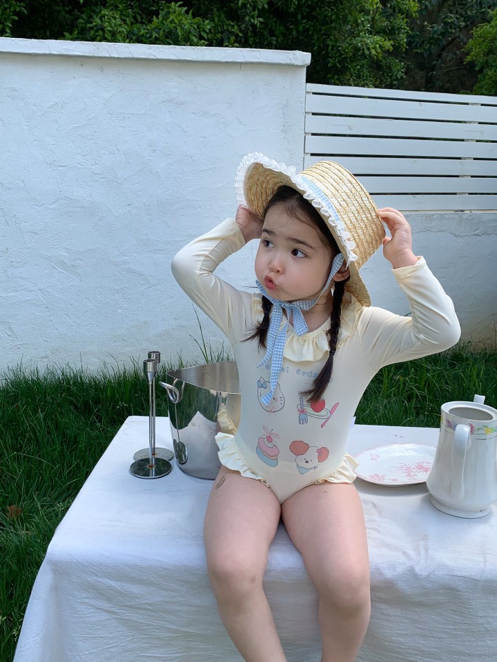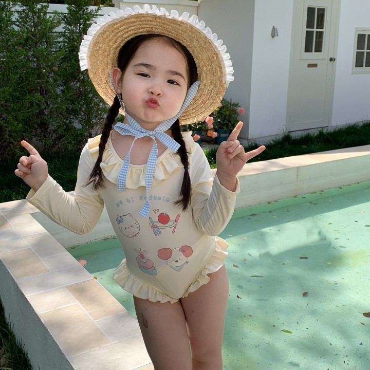 2025 한국판 여아용 긴팔 원피스 수영복 어린이 공주 수영복 속건 수영복 작은 공주 소녀용스토어 가기