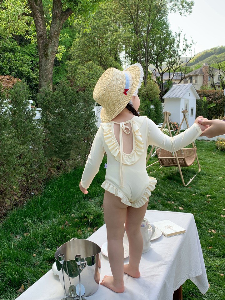 2025 한국판 여아용 긴팔 원피스 수영복 어린이 공주 수영복 속건 수영복 작은 공주 소녀용