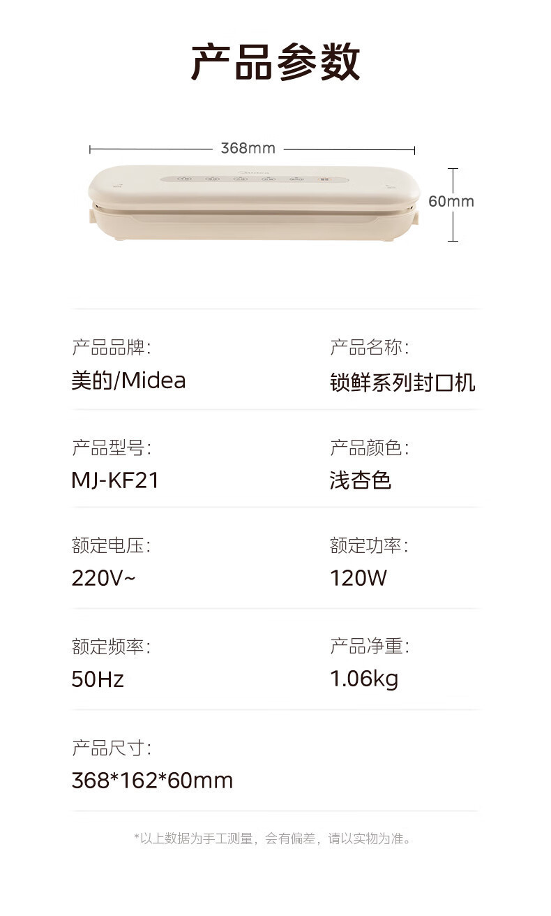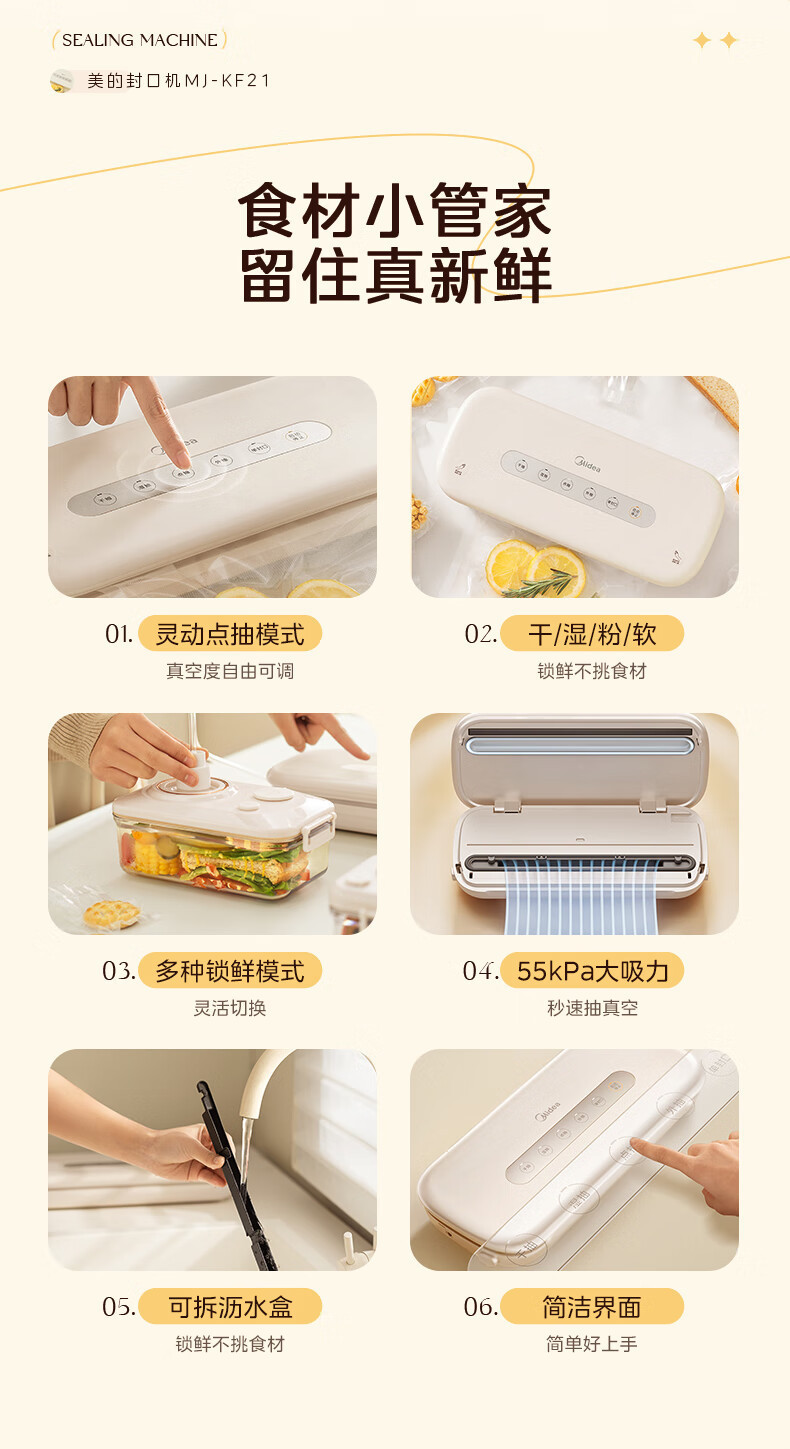 Midea/Midea MJ-KF21 식품 보존 진공 기계 가정용 밀봉 식품 포장 플라스틱 밀봉 상업용 정품