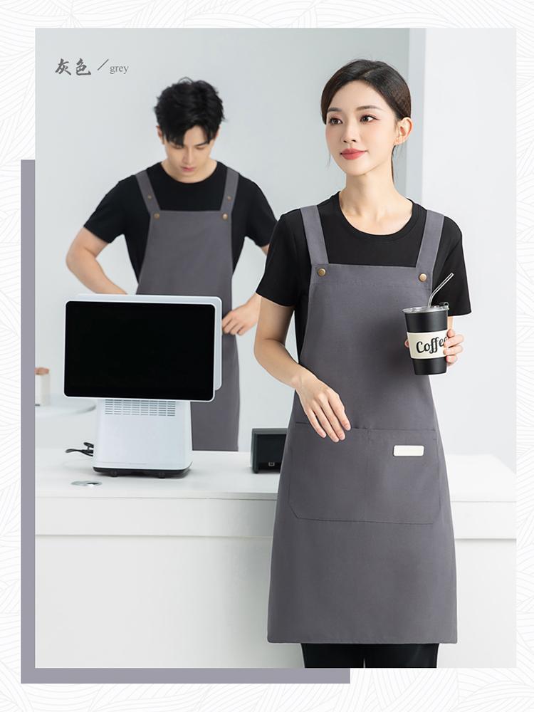 방수 캔버스 스트랩 앞치마 맞춤형 로고 인쇄 케이터링 슈퍼마켓 베이킹 커피 밀크 티 샵 작업복 도매
