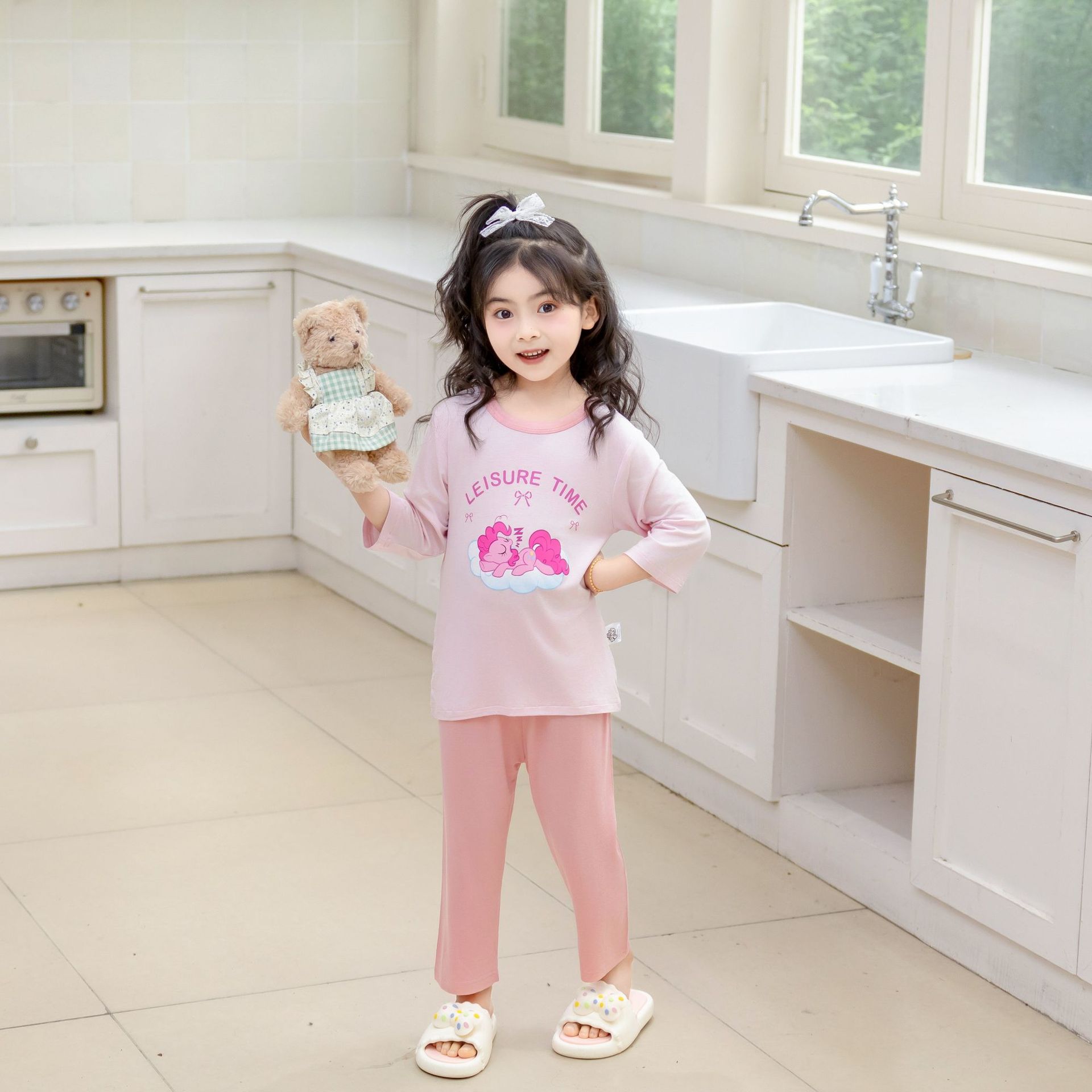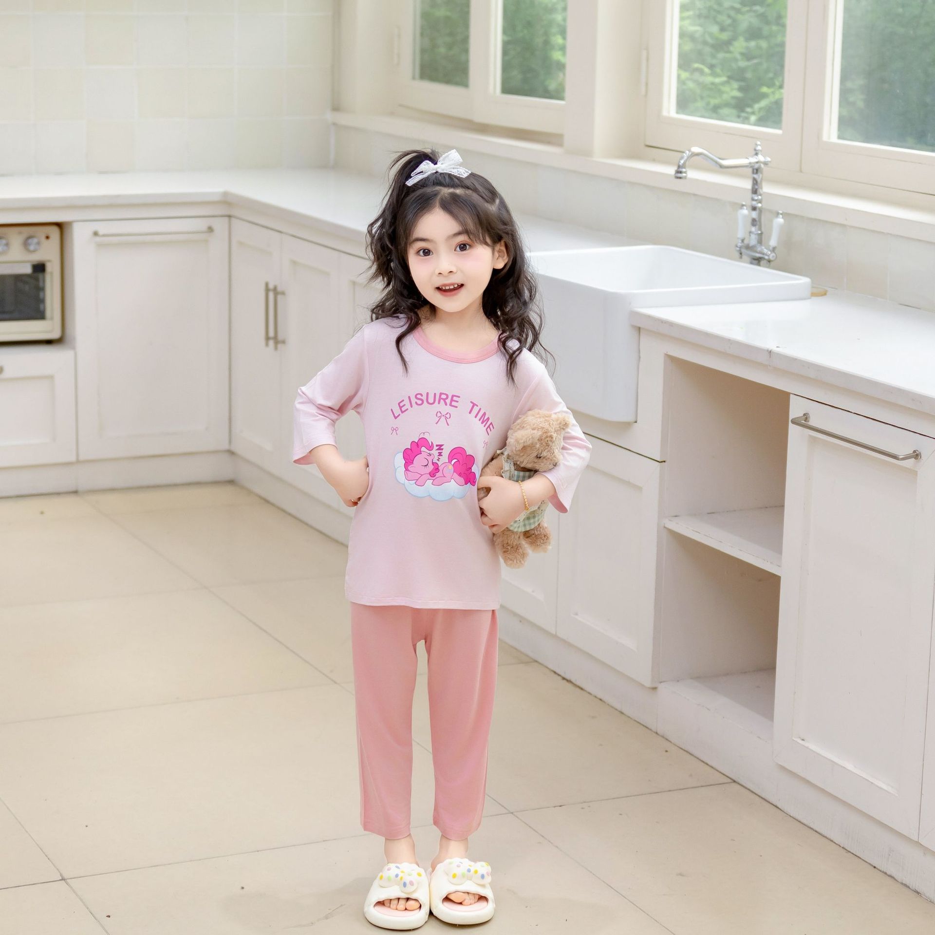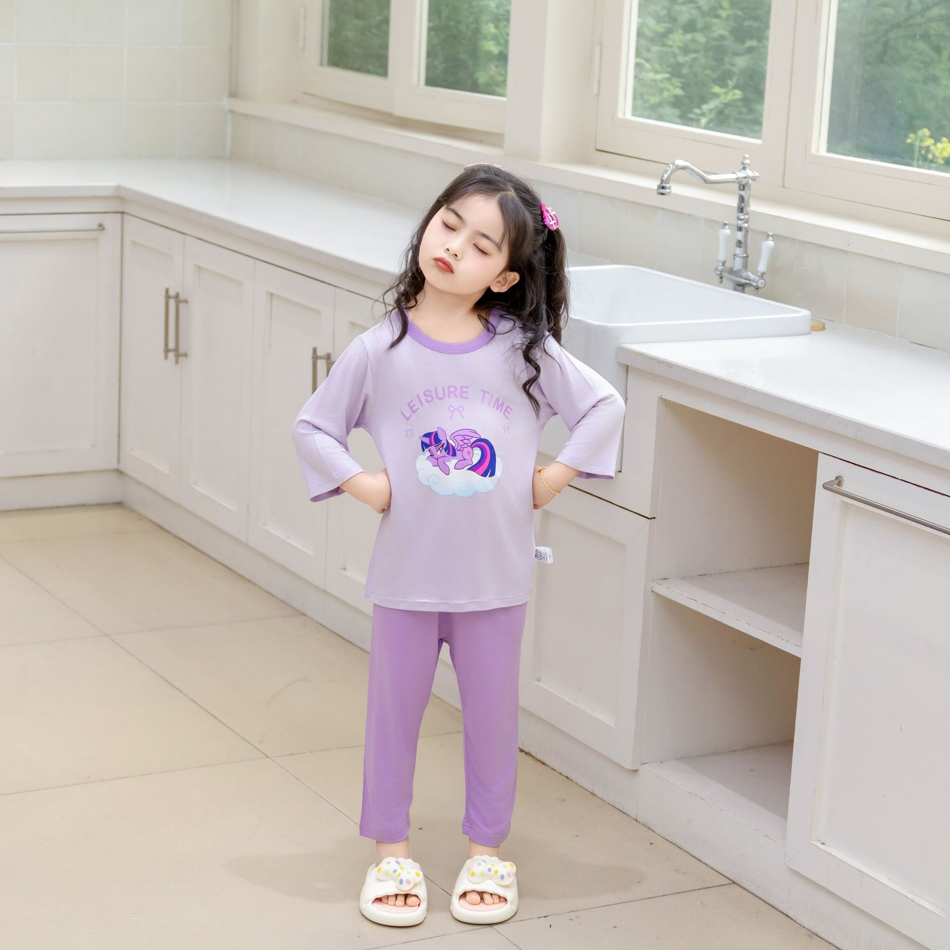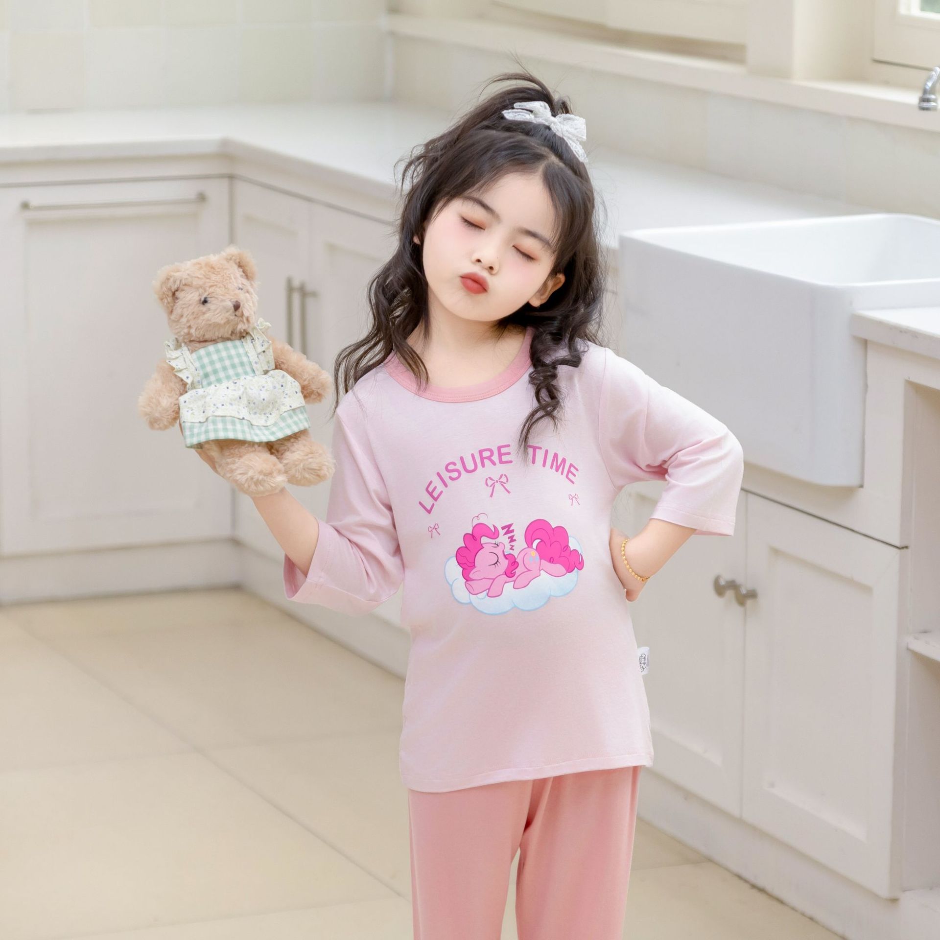 [포니 폴리] 어린이 속옷 세트 클래스 A 모달 7 소매 세트 여자 홈 옷 여자 잠옷