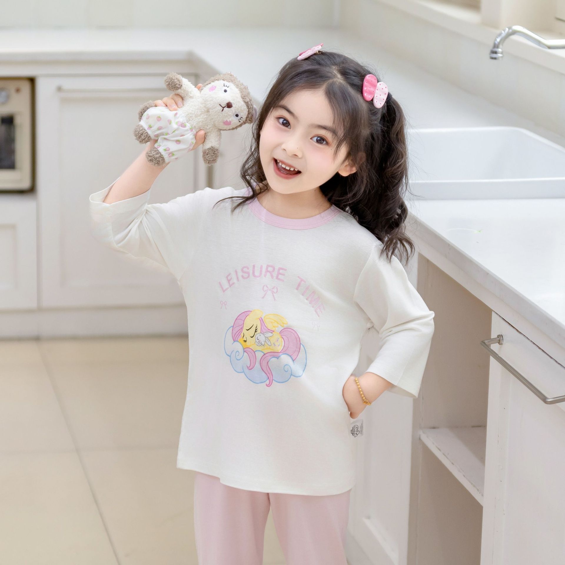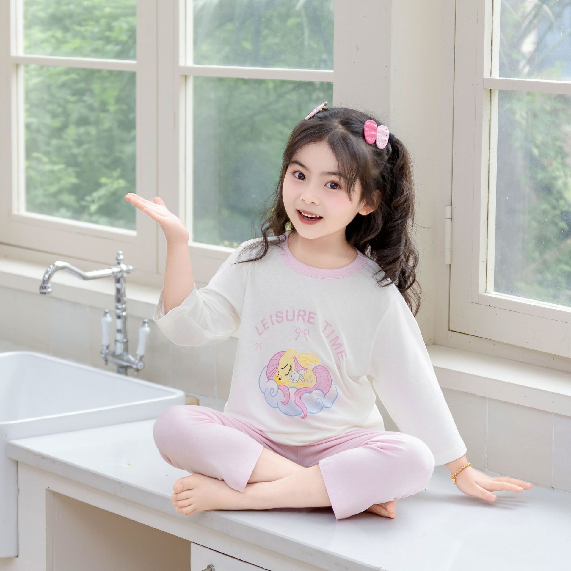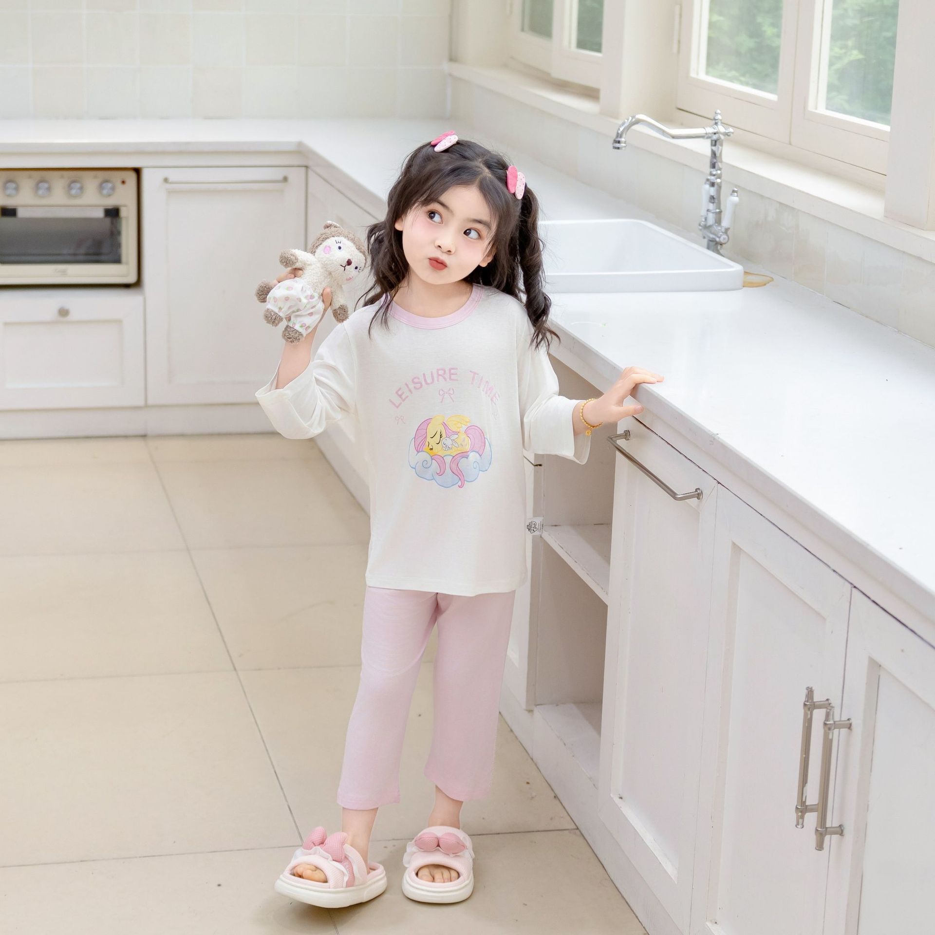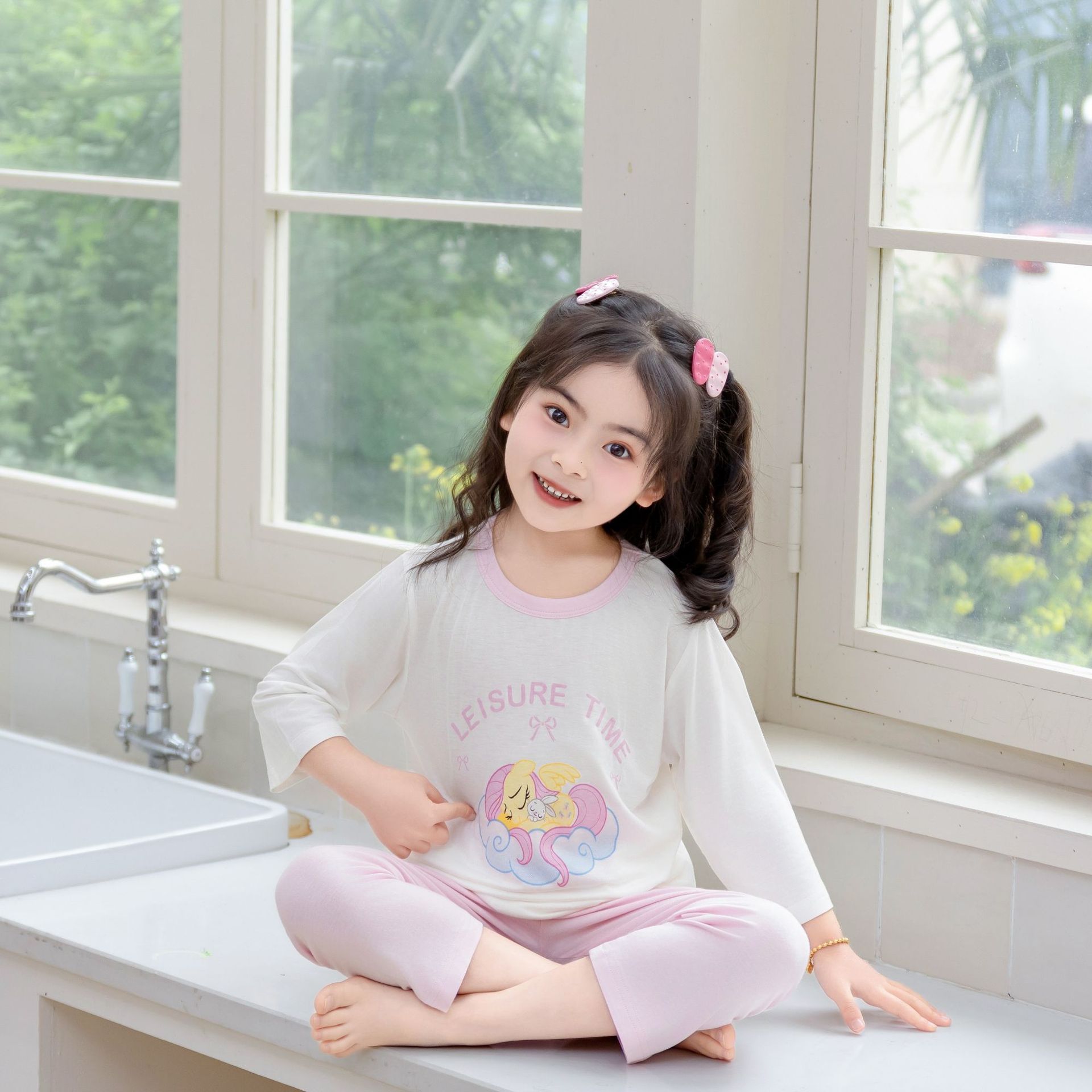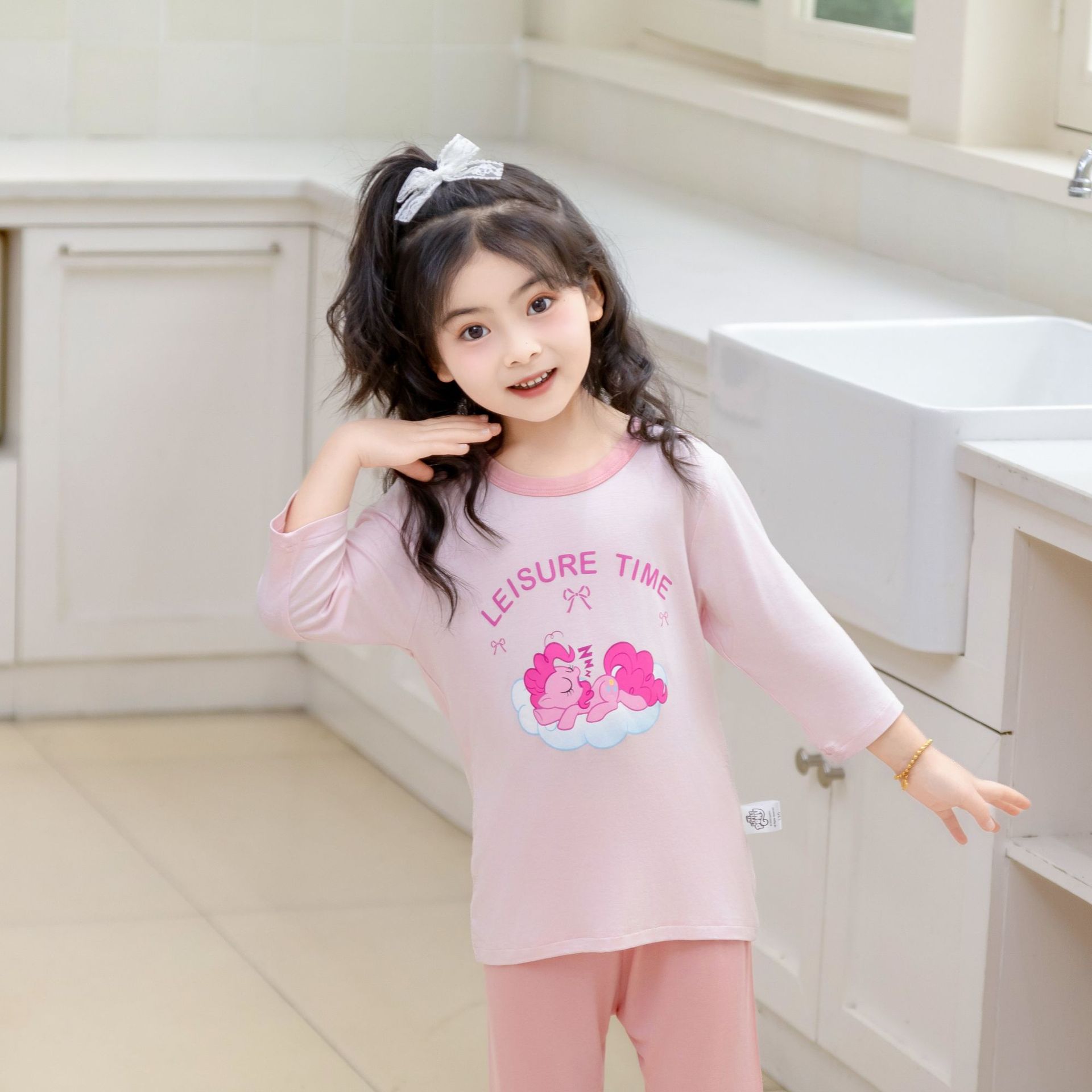 [포니 폴리] 어린이 속옷 세트 클래스 A 모달 7 소매 세트 여자 홈 옷 여자 잠옷