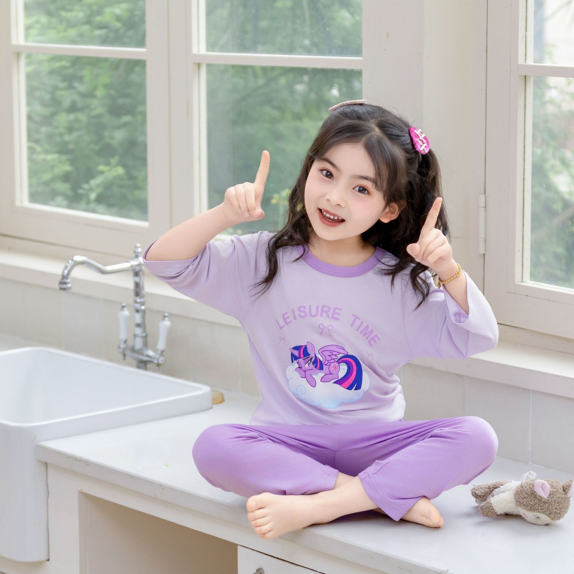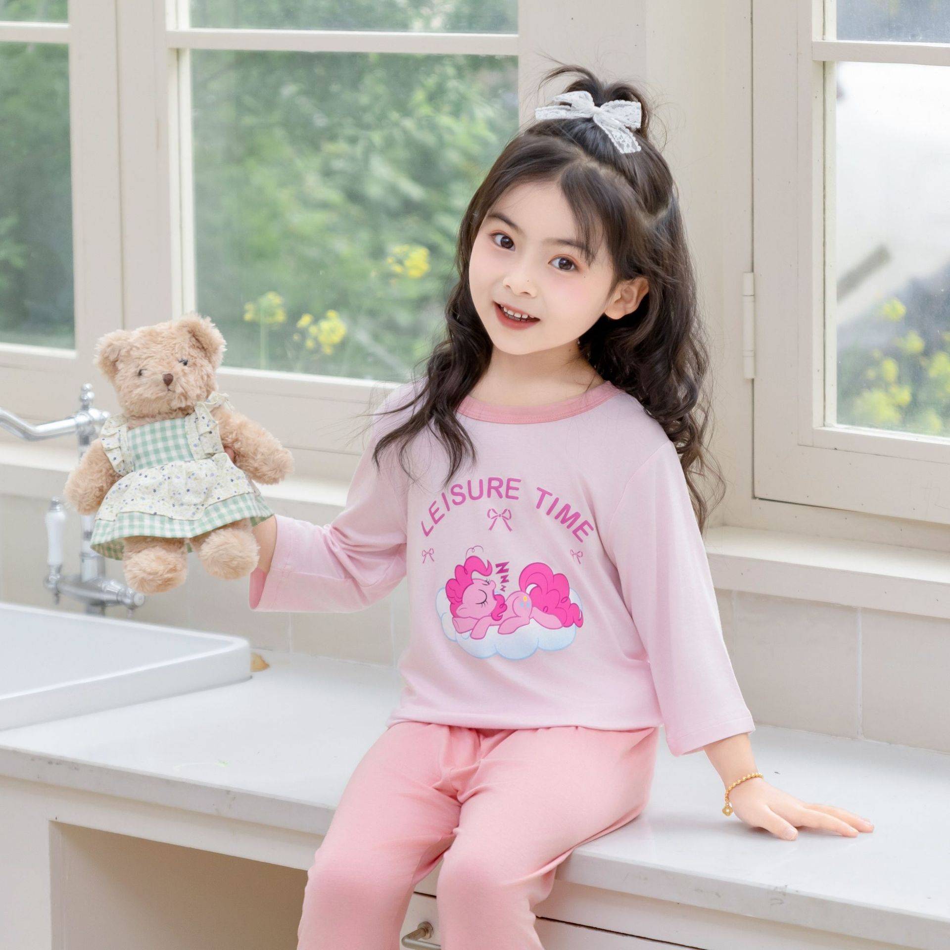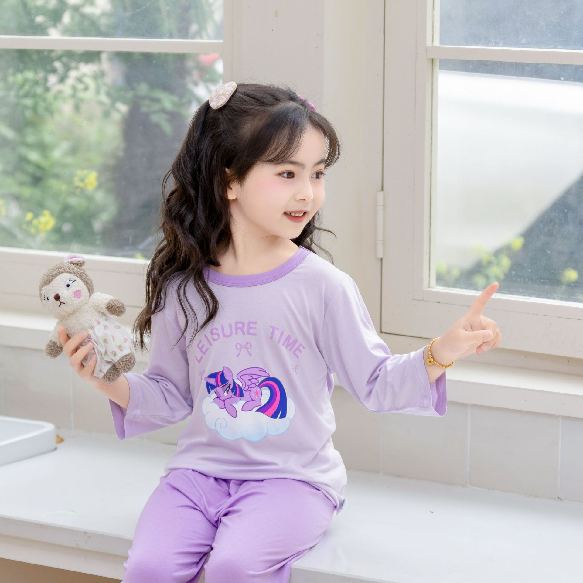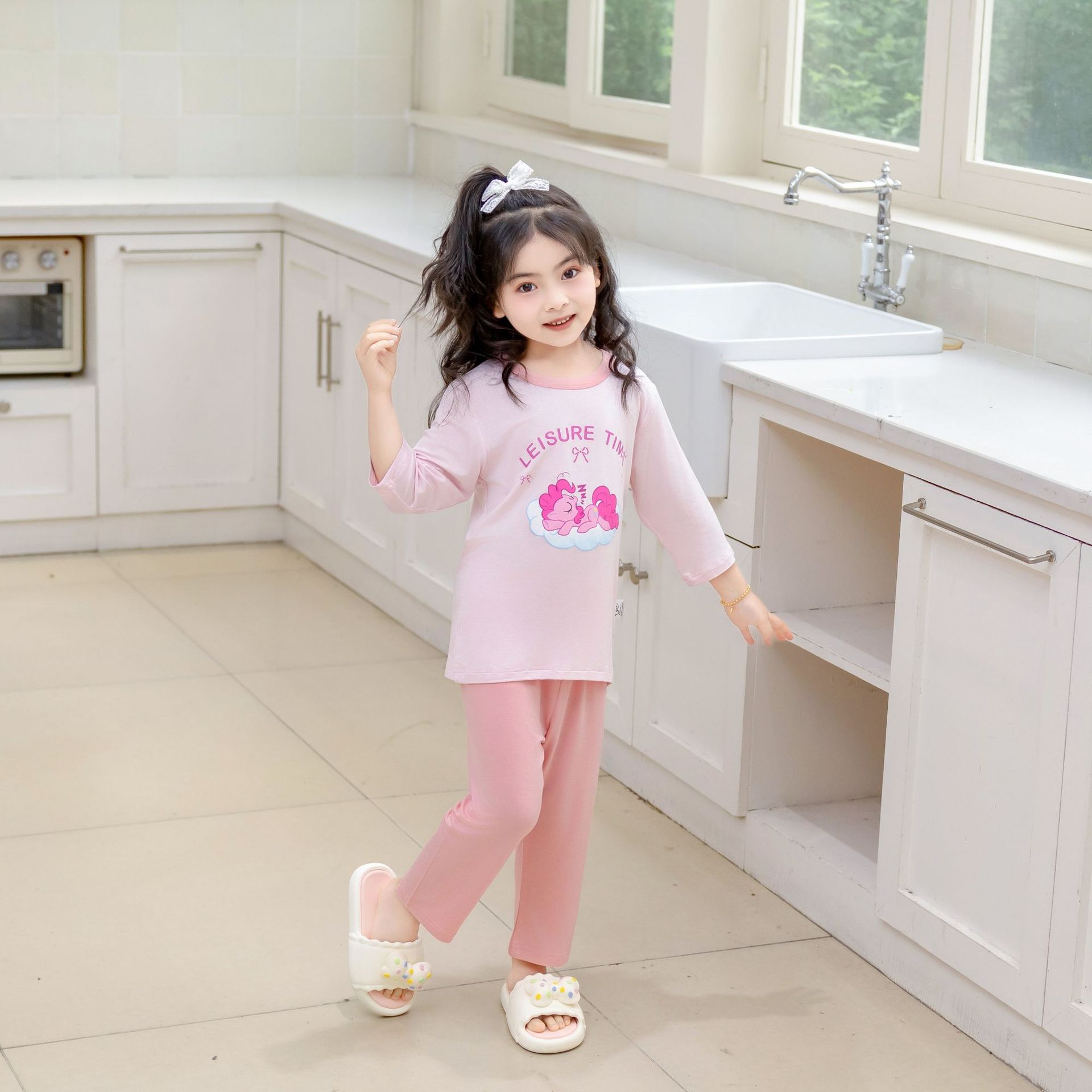 [포니 폴리] 어린이 속옷 세트 클래스 A 모달 7 소매 세트 여자 홈 옷 여자 잠옷