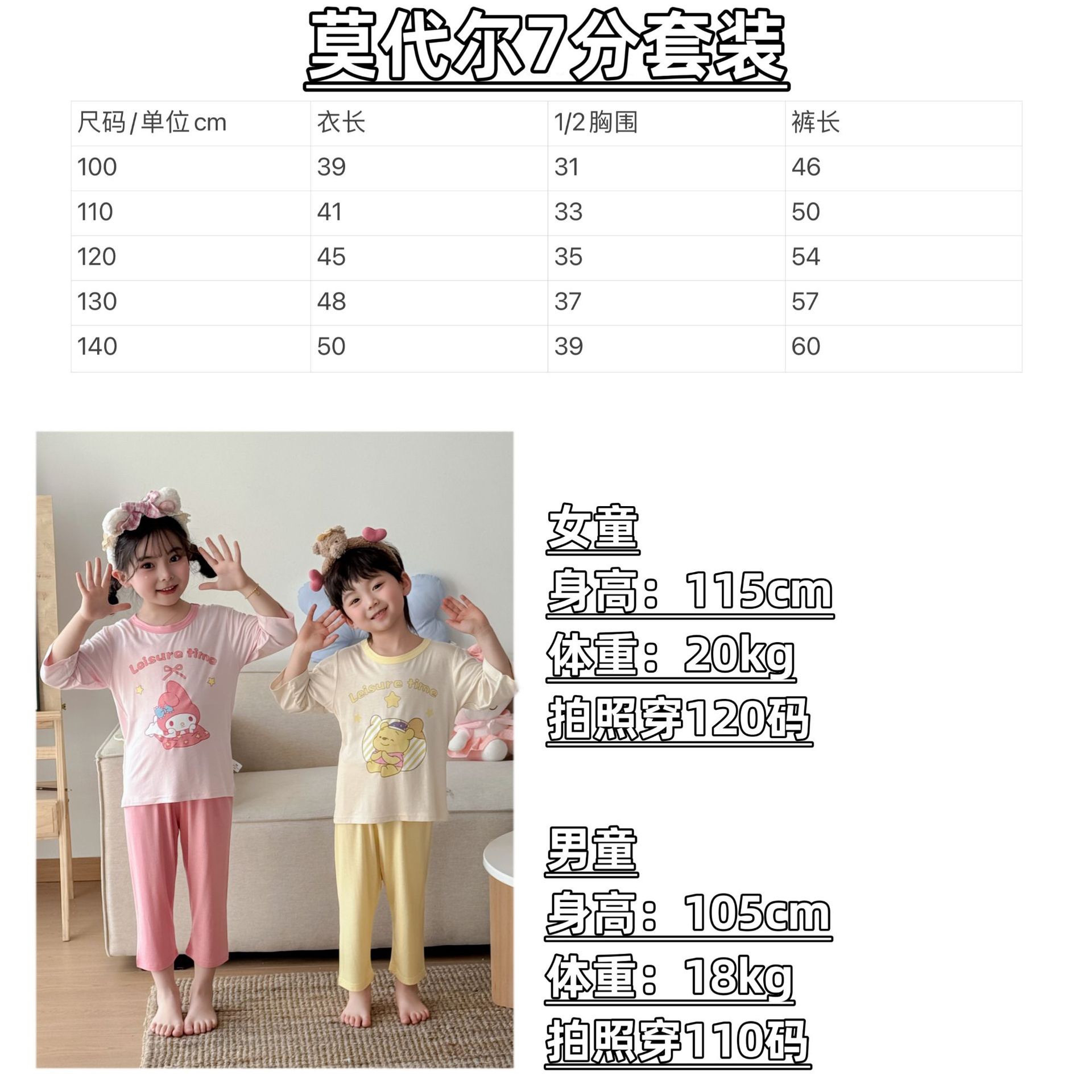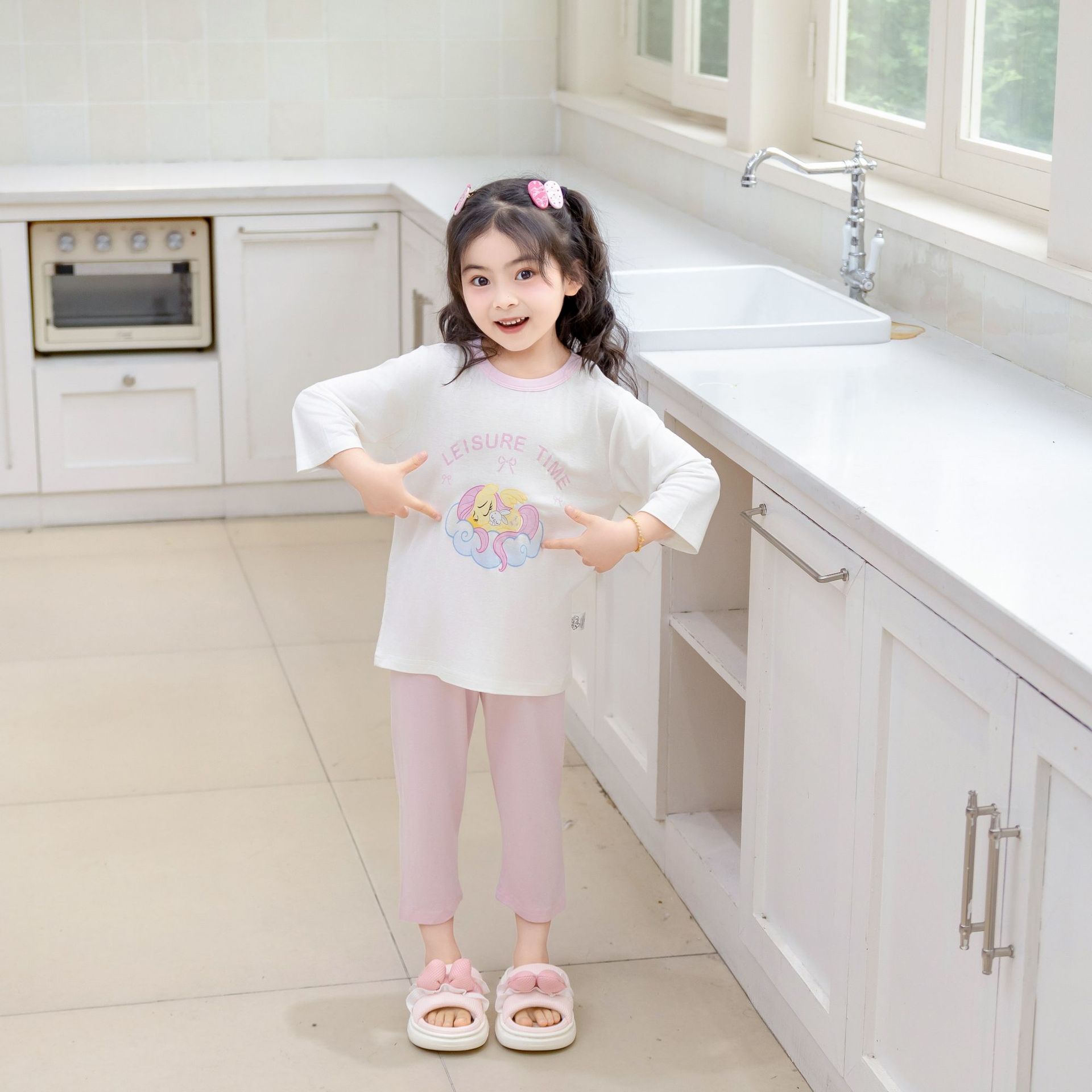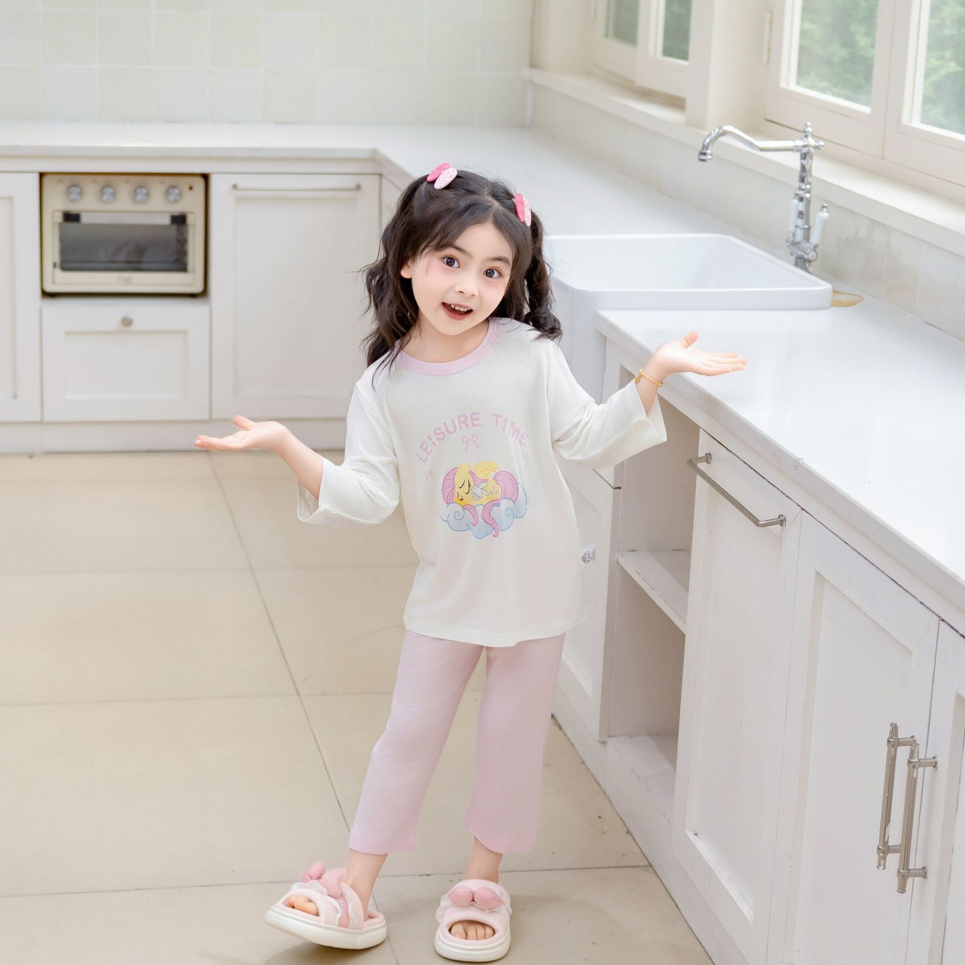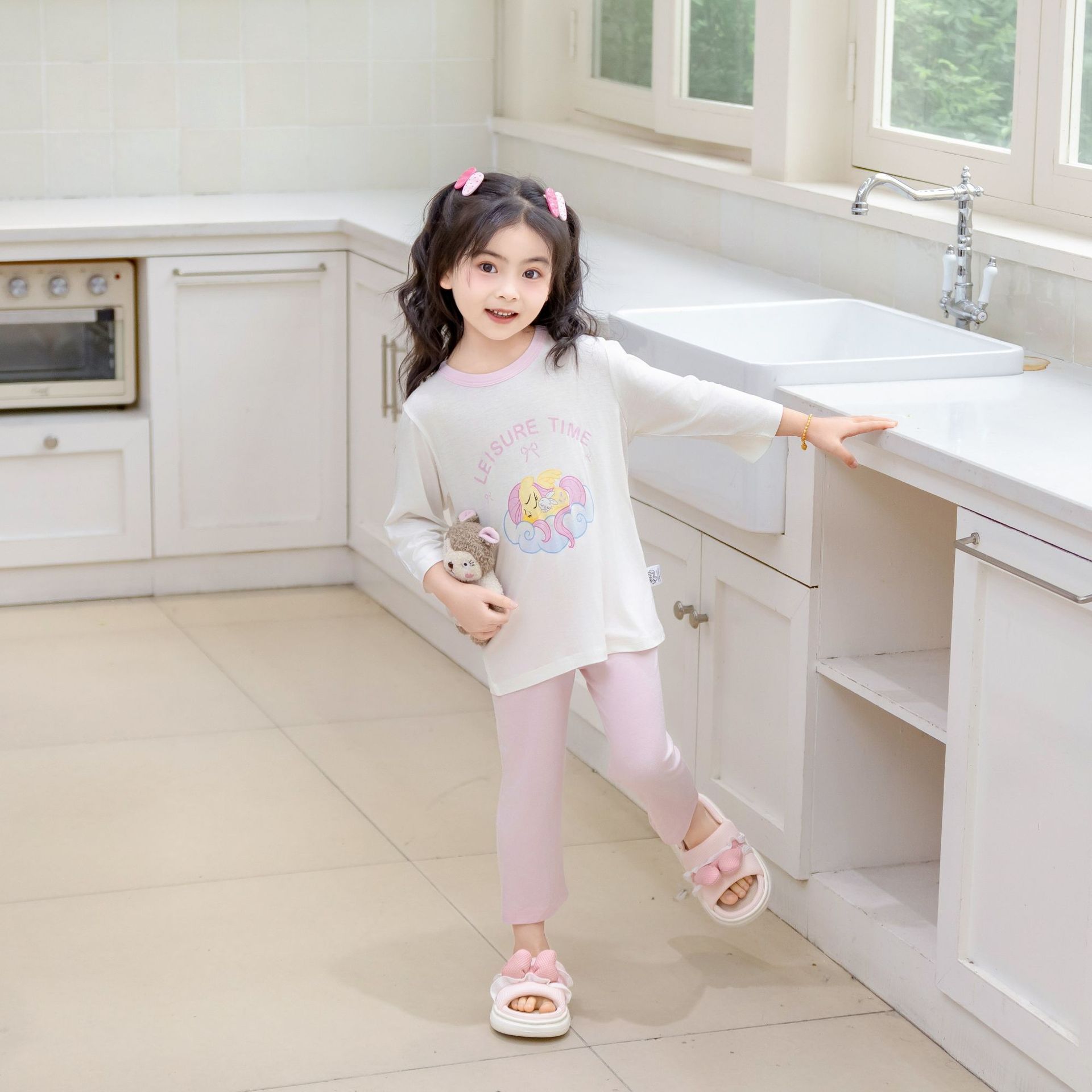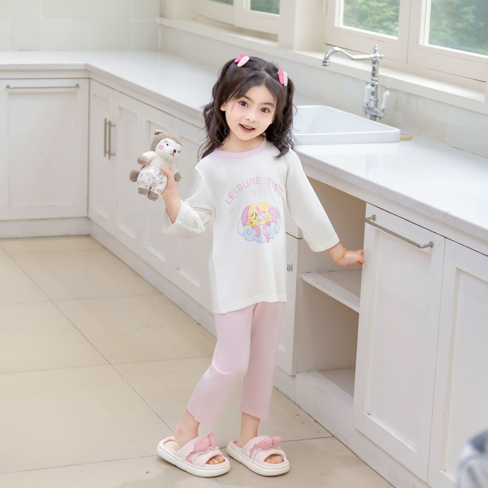 [포니 폴리] 어린이 속옷 세트 클래스 A 모달 7 소매 세트 여자 홈 옷 여자 잠옷