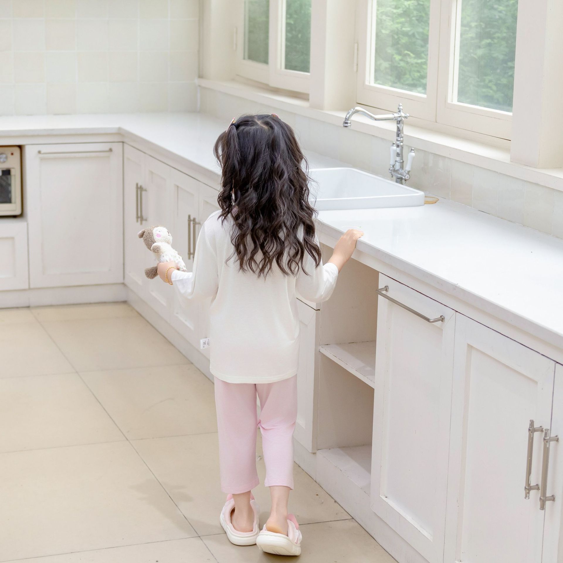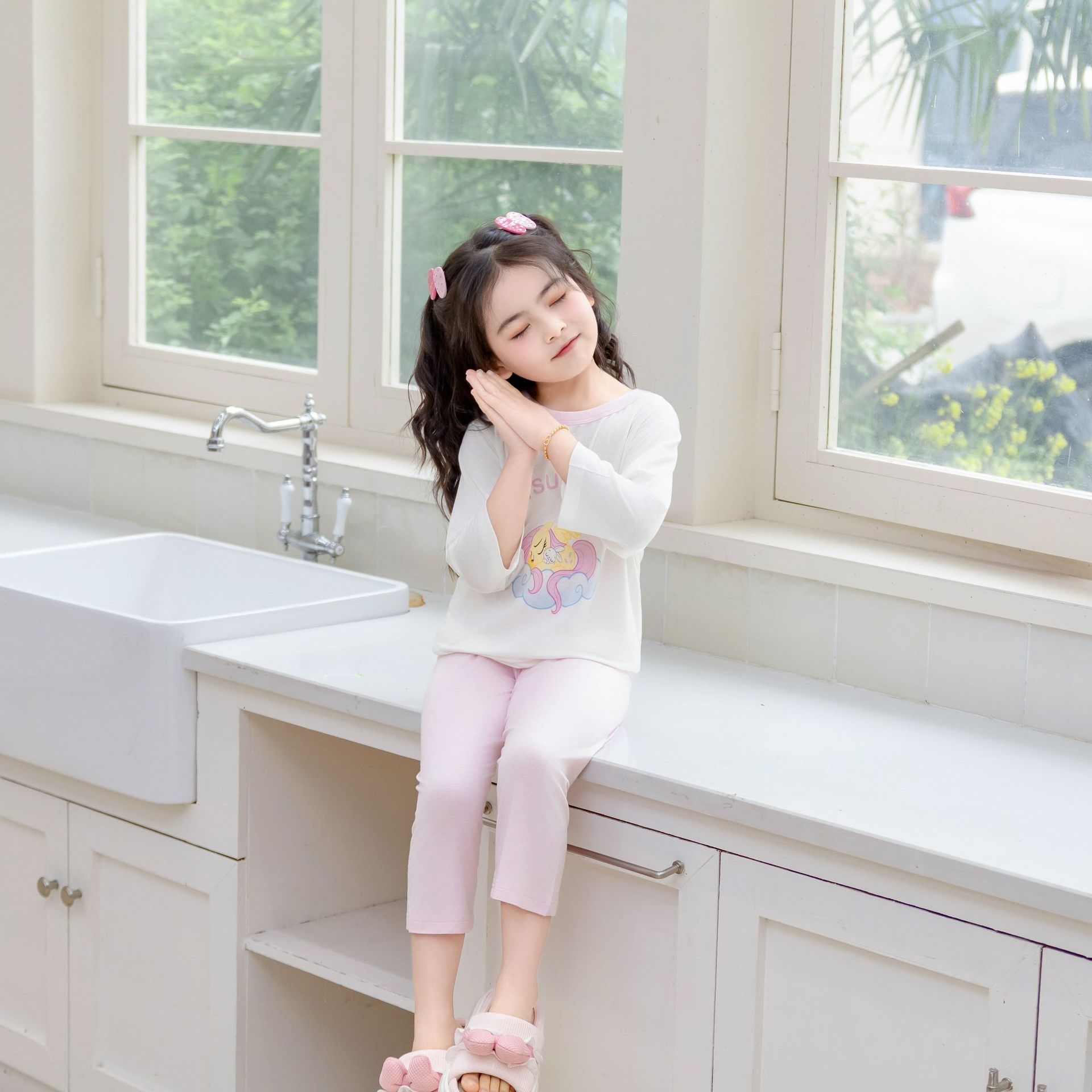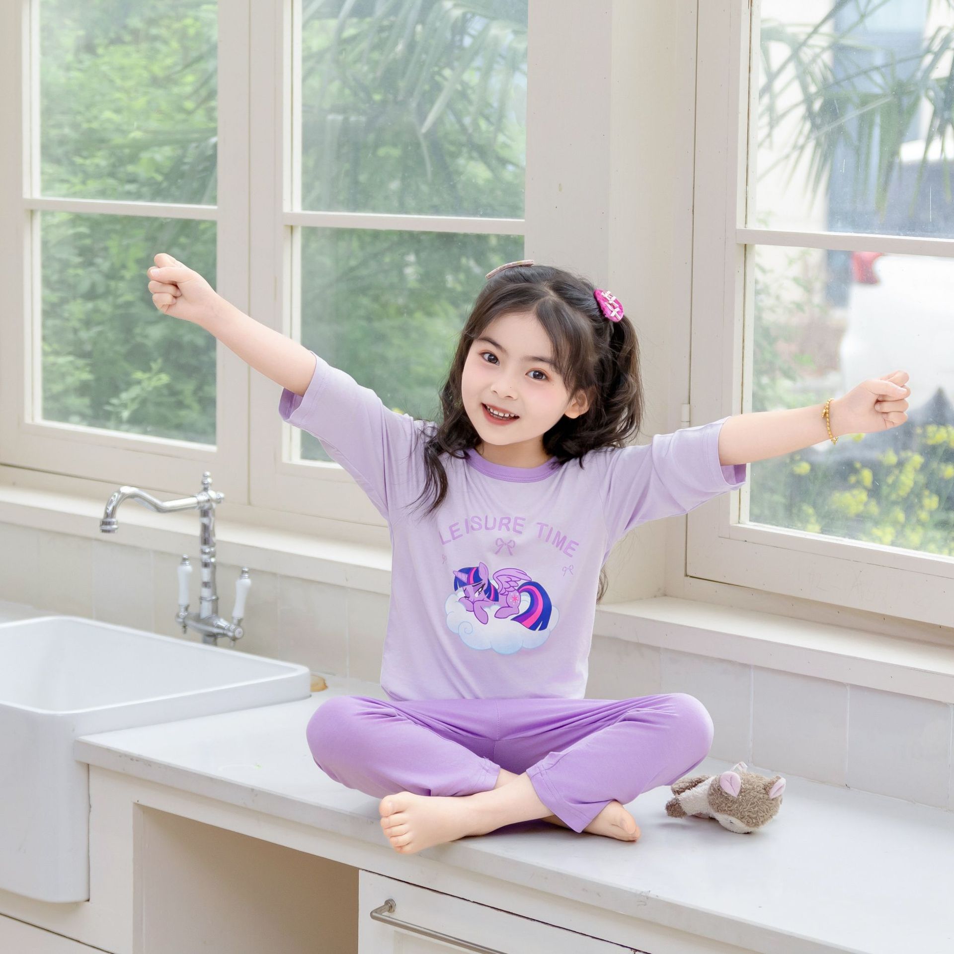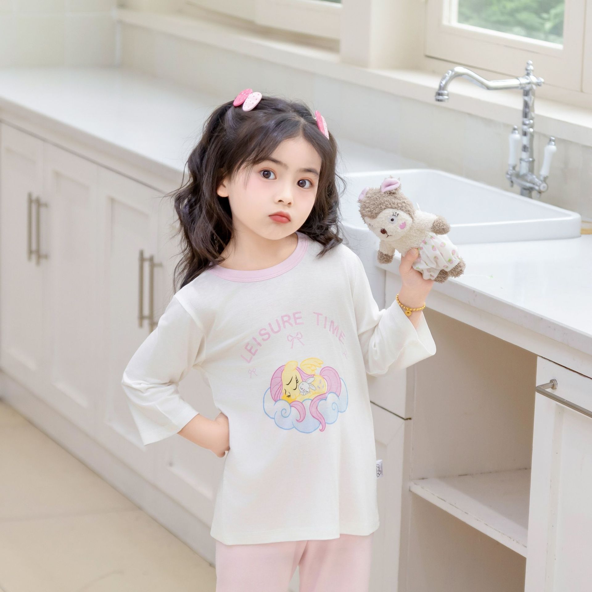 [포니 폴리] 어린이 속옷 세트 클래스 A 모달 7 소매 세트 여자 홈 옷 여자 잠옷