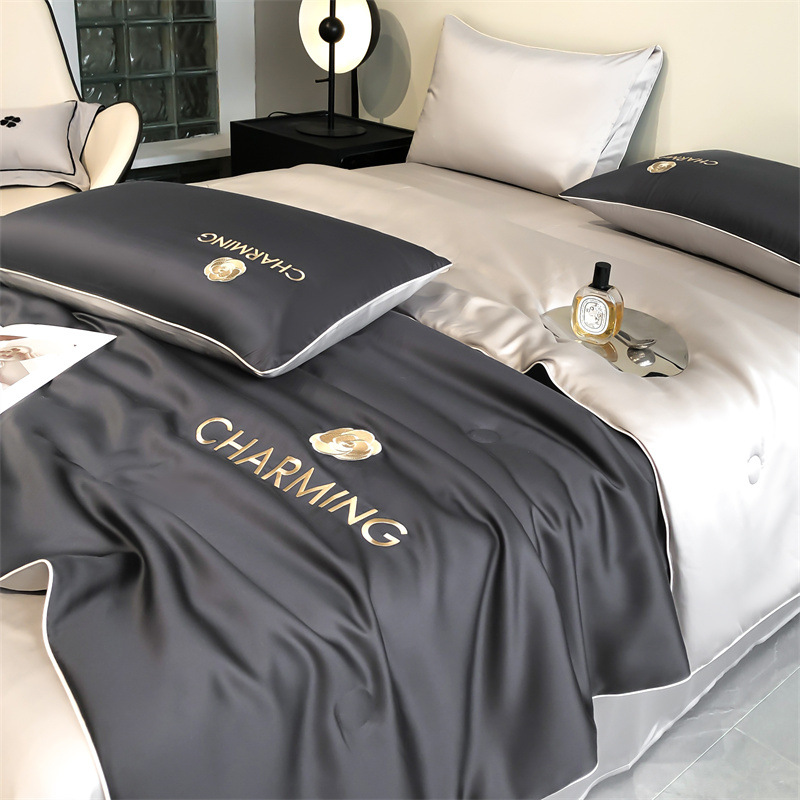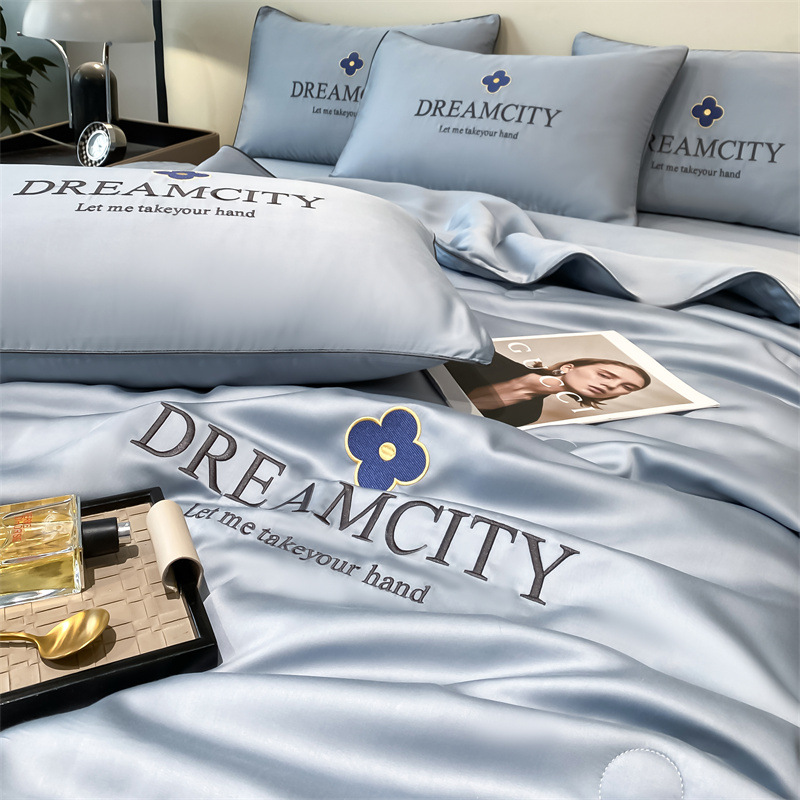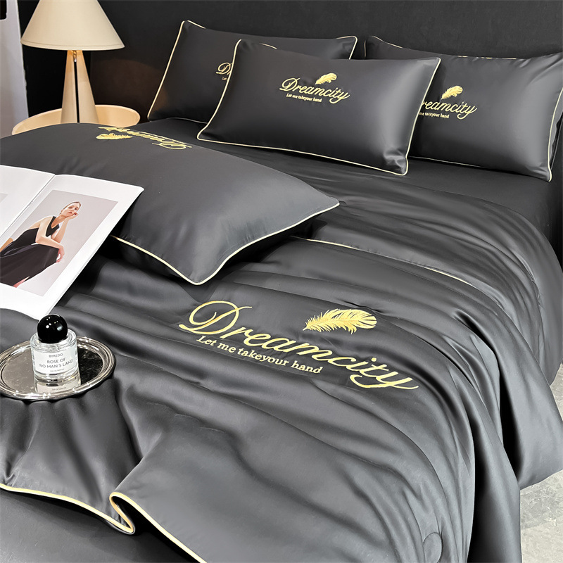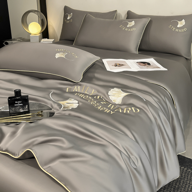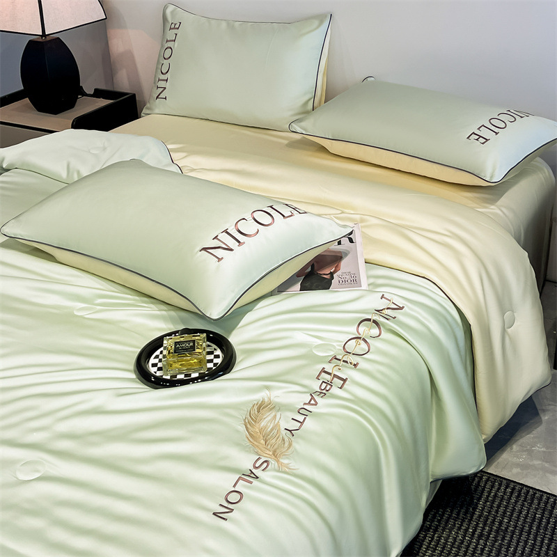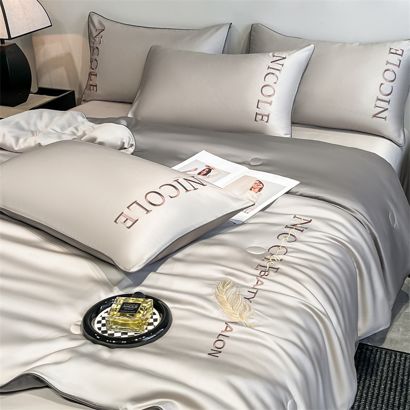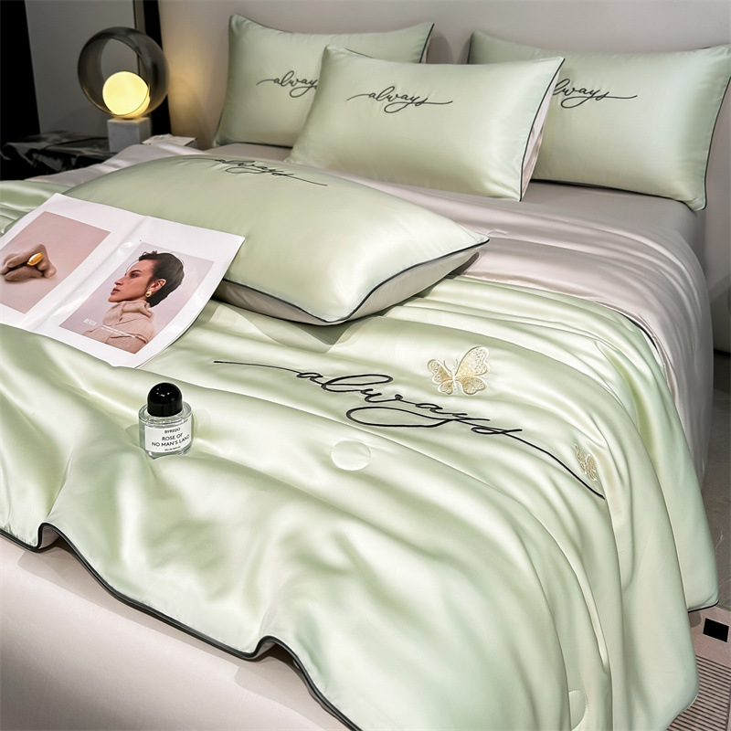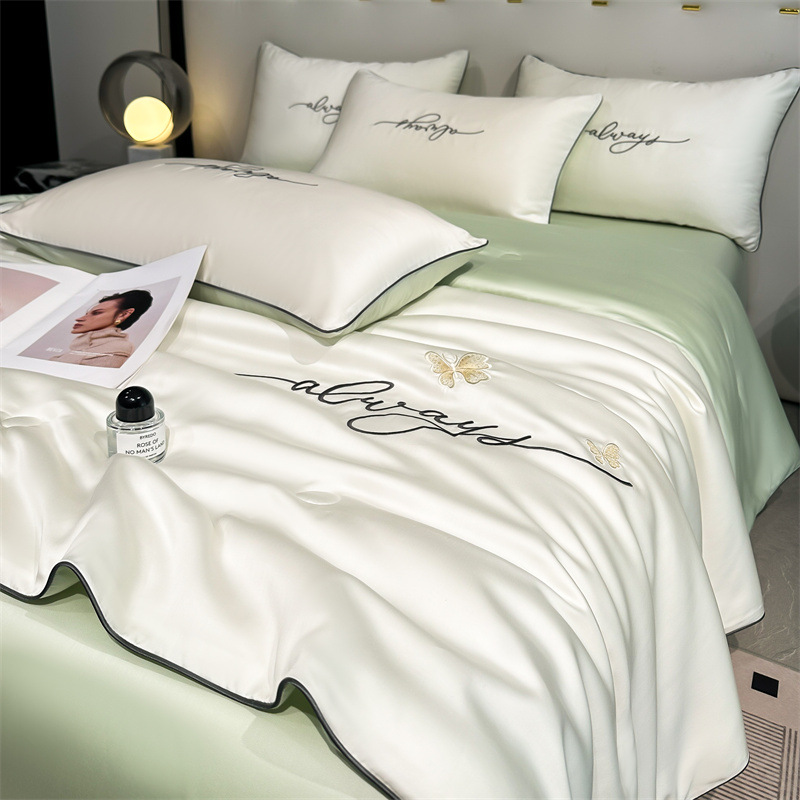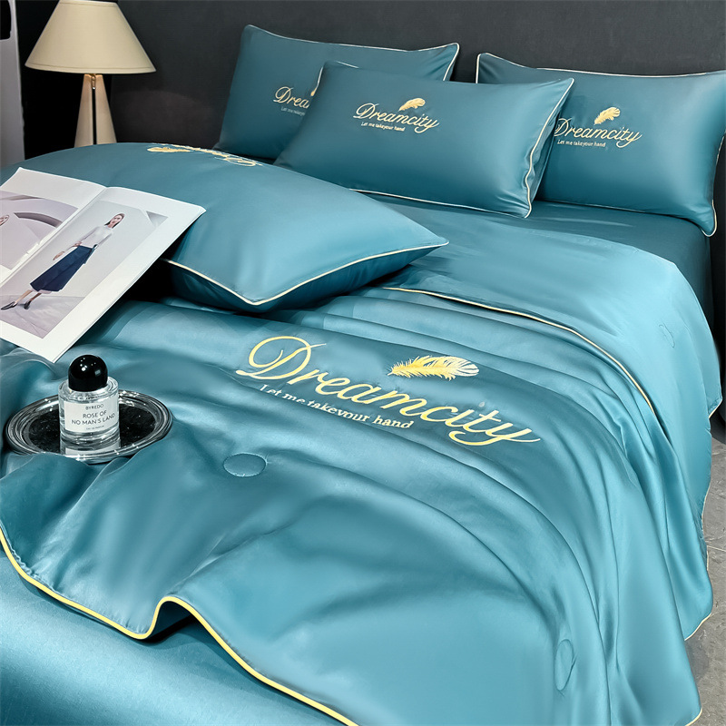 클래스 A 여름 쿨 퀼트 아이스 실크 여름 퀼트 4 피스 세트 알몸 슬리핑 실키 자수 세척 더블 에어 컨디셔닝 이불 여름 얇은 이불