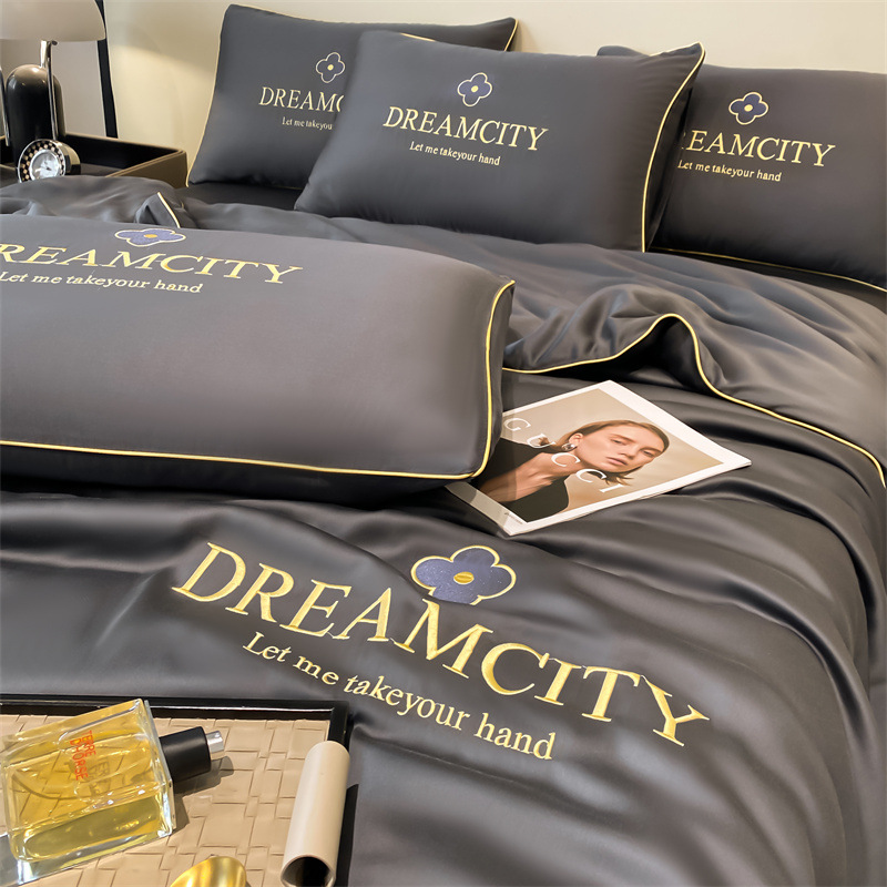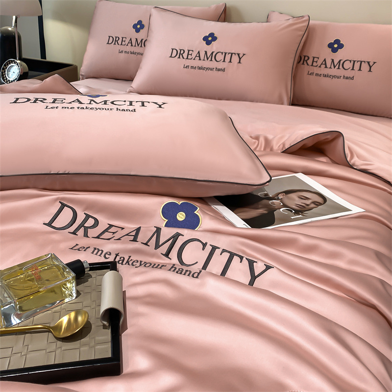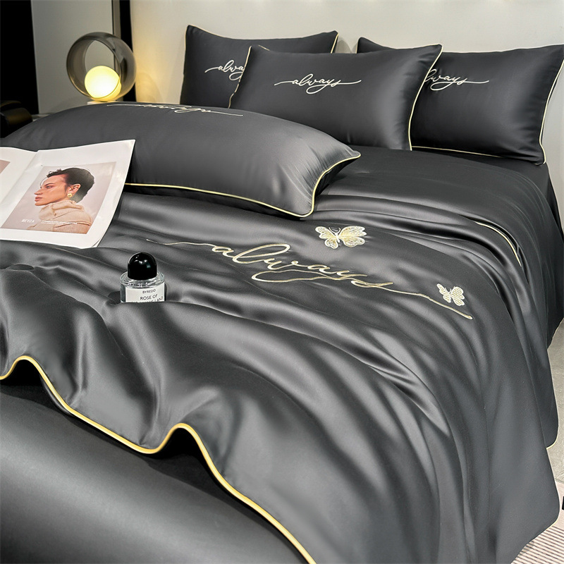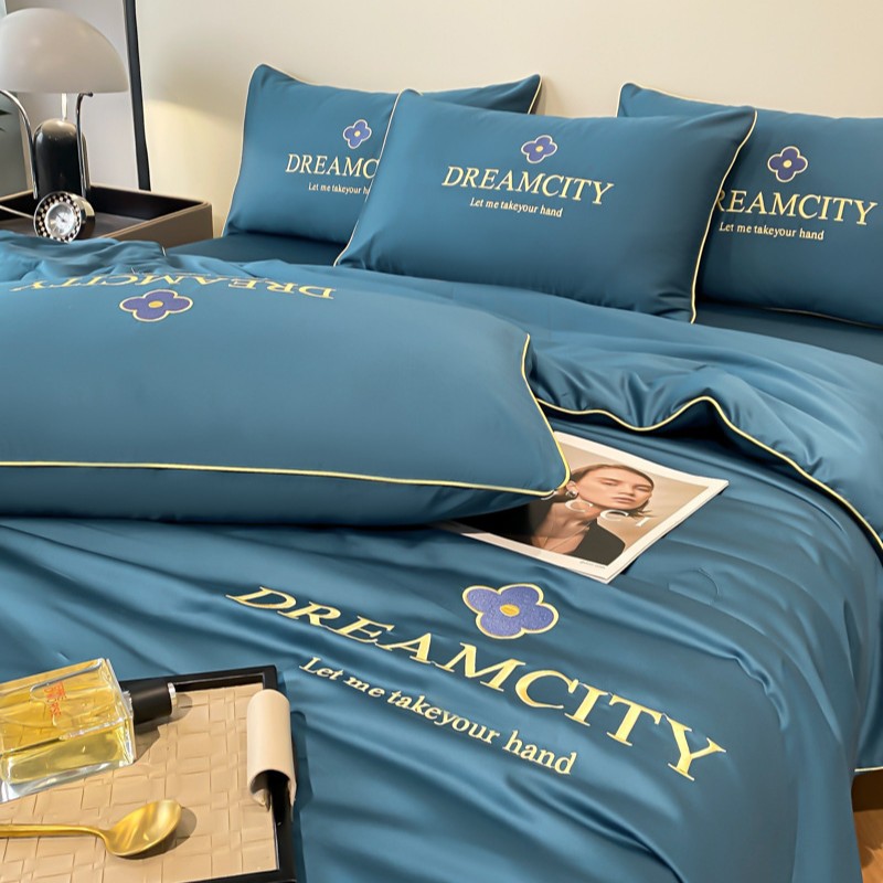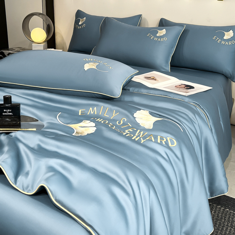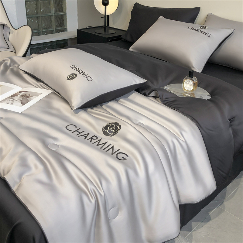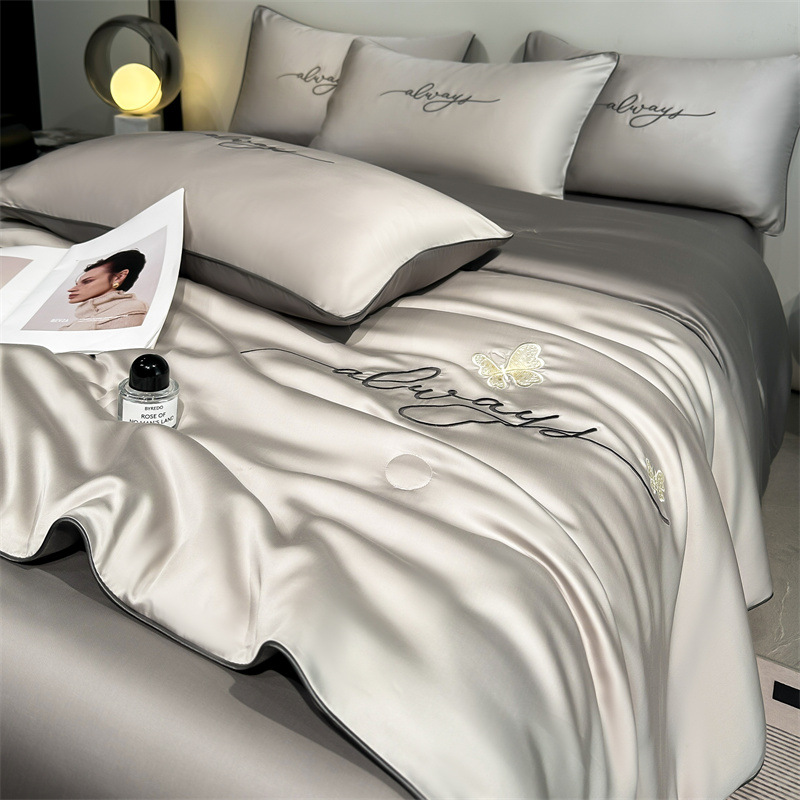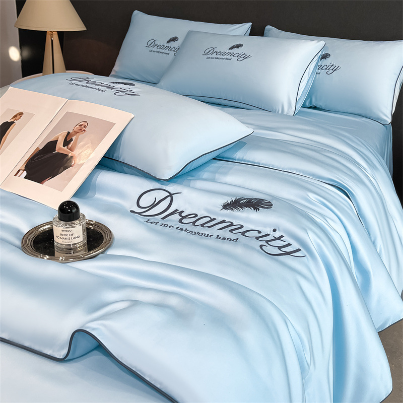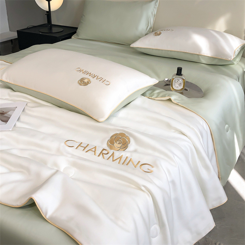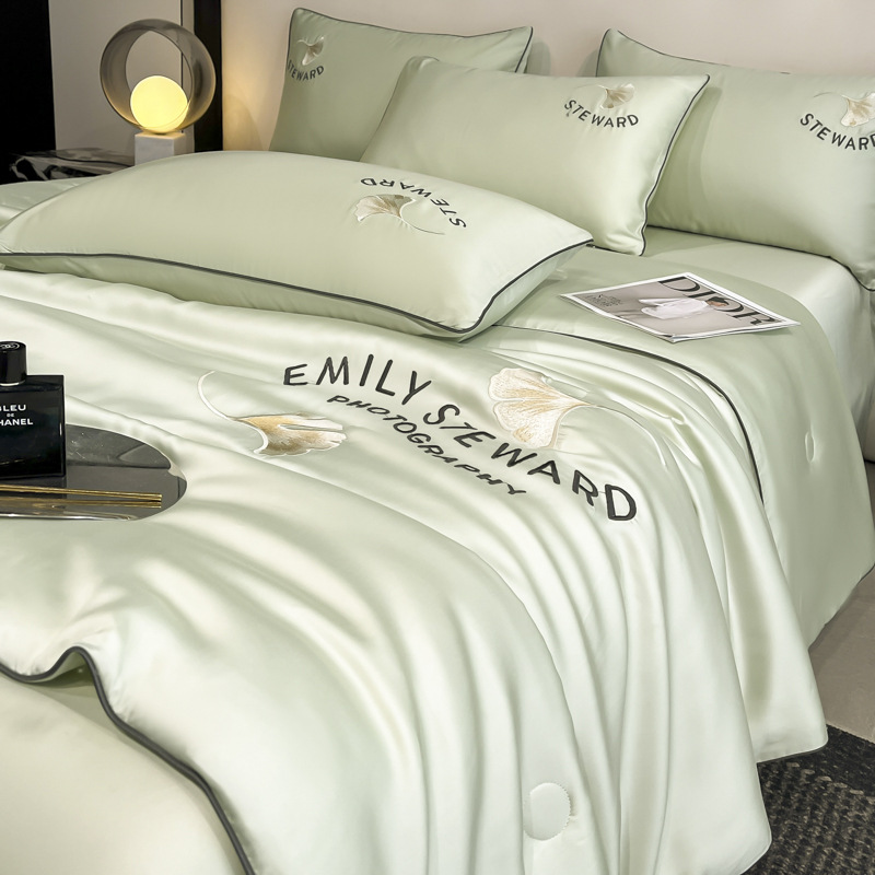 클래스 A 여름 쿨 퀼트 아이스 실크 여름 퀼트 4 피스 세트 알몸 슬리핑 실키 자수 세척 더블 에어 컨디셔닝 이불 여름 얇은 이불