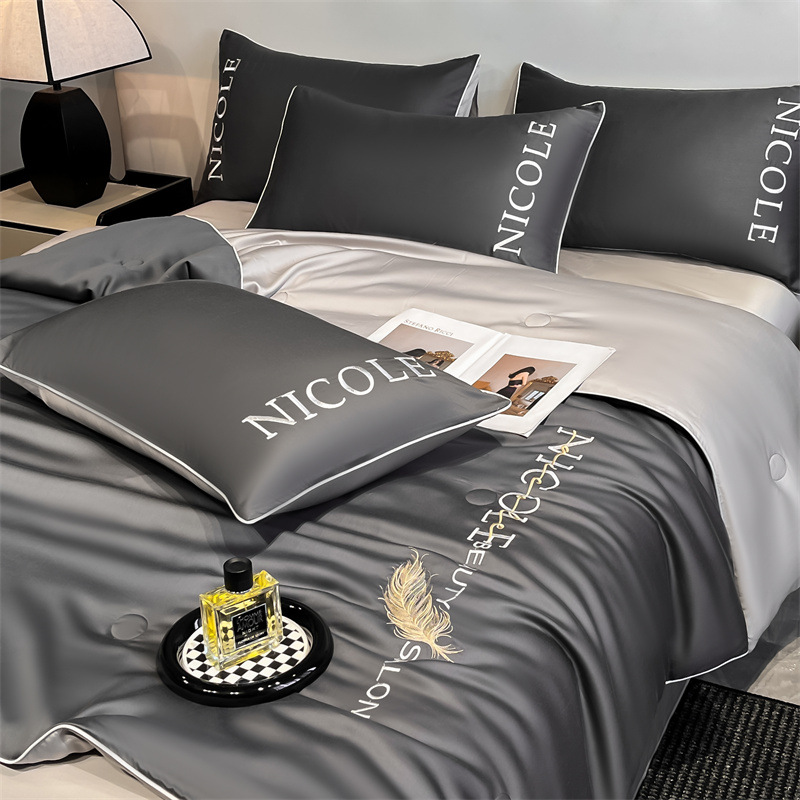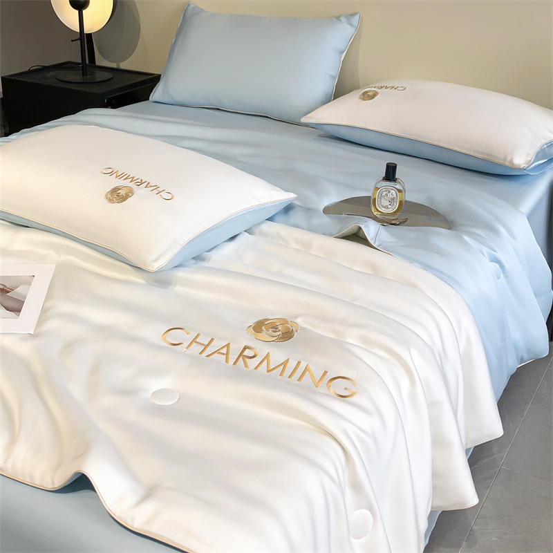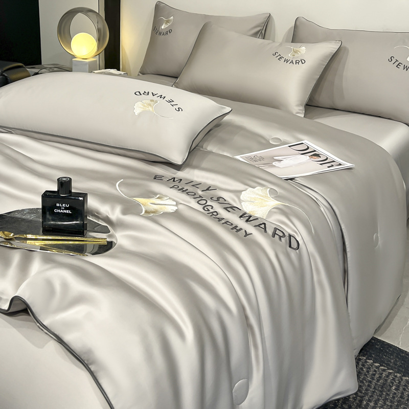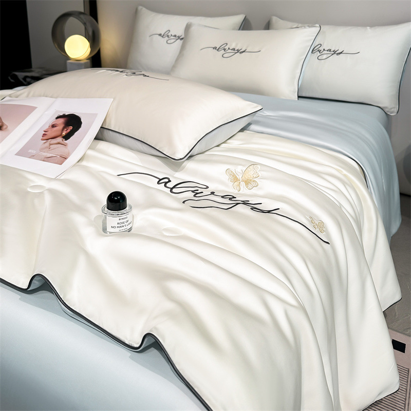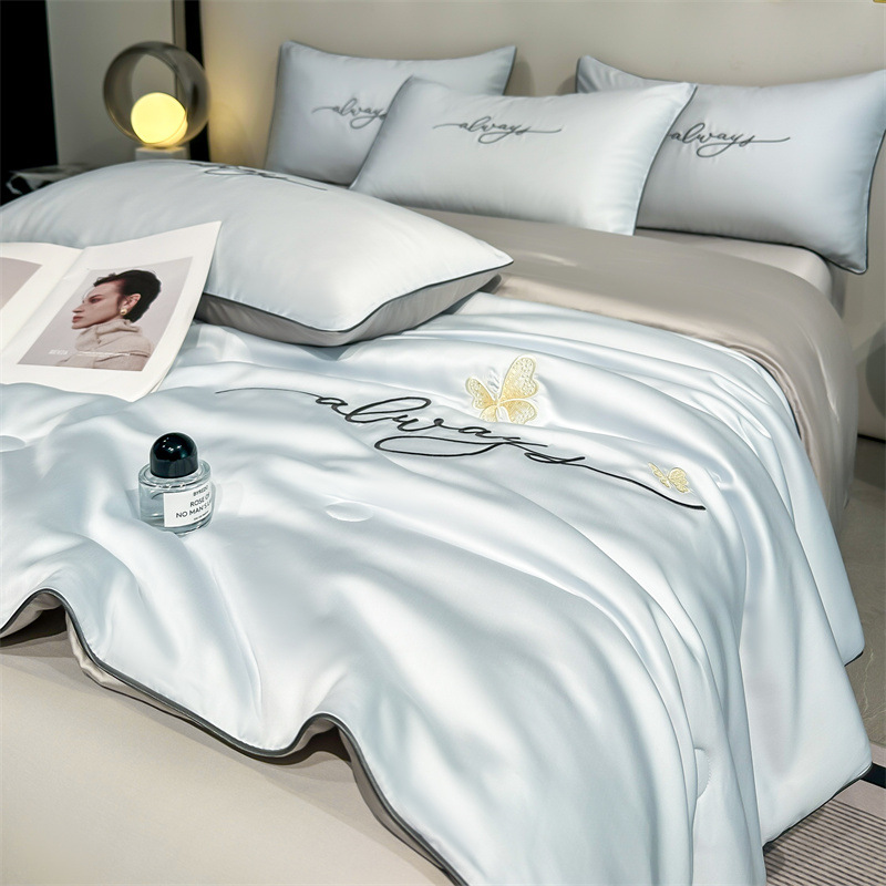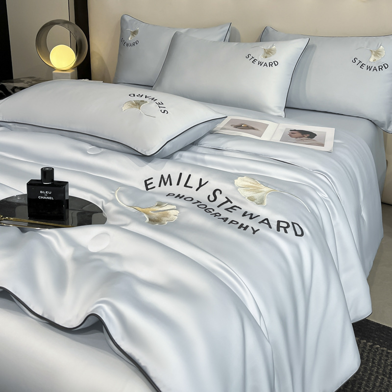 클래스 A 여름 쿨 퀼트 아이스 실크 여름 퀼트 4 피스 세트 알몸 슬리핑 실키 자수 세척 더블 에어 컨디셔닝 이불 여름 얇은 이불스토어 가기