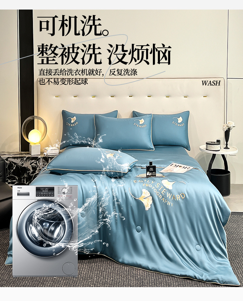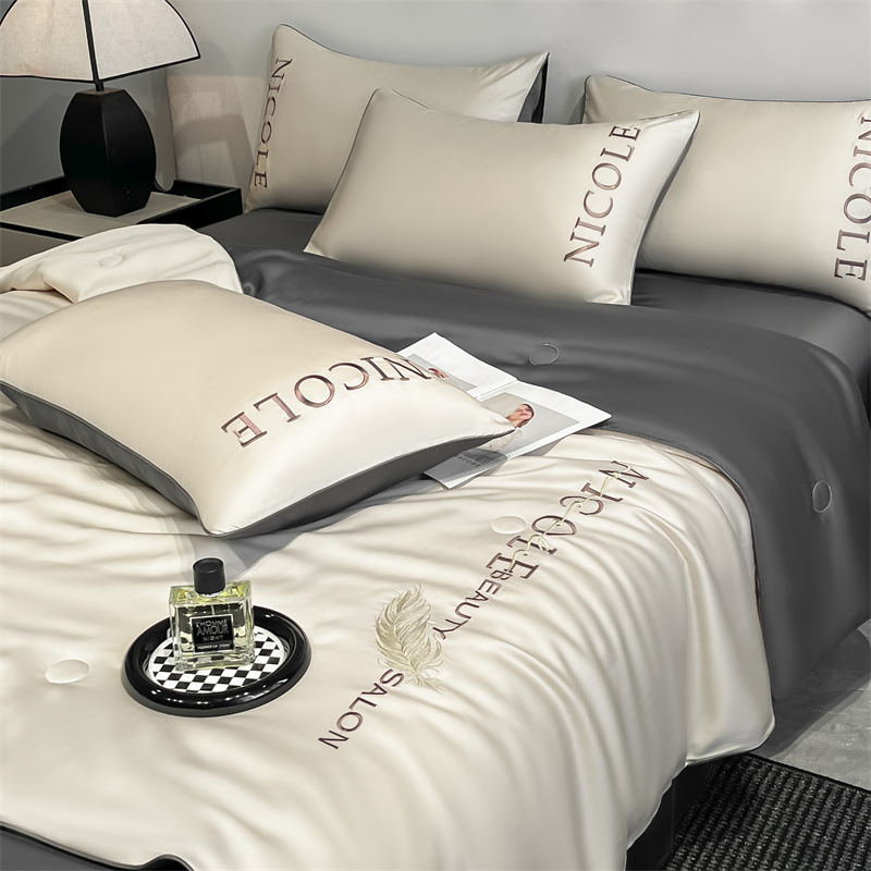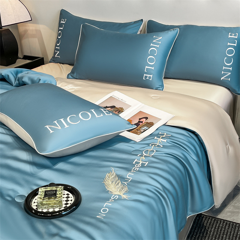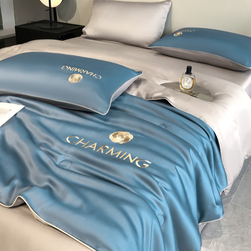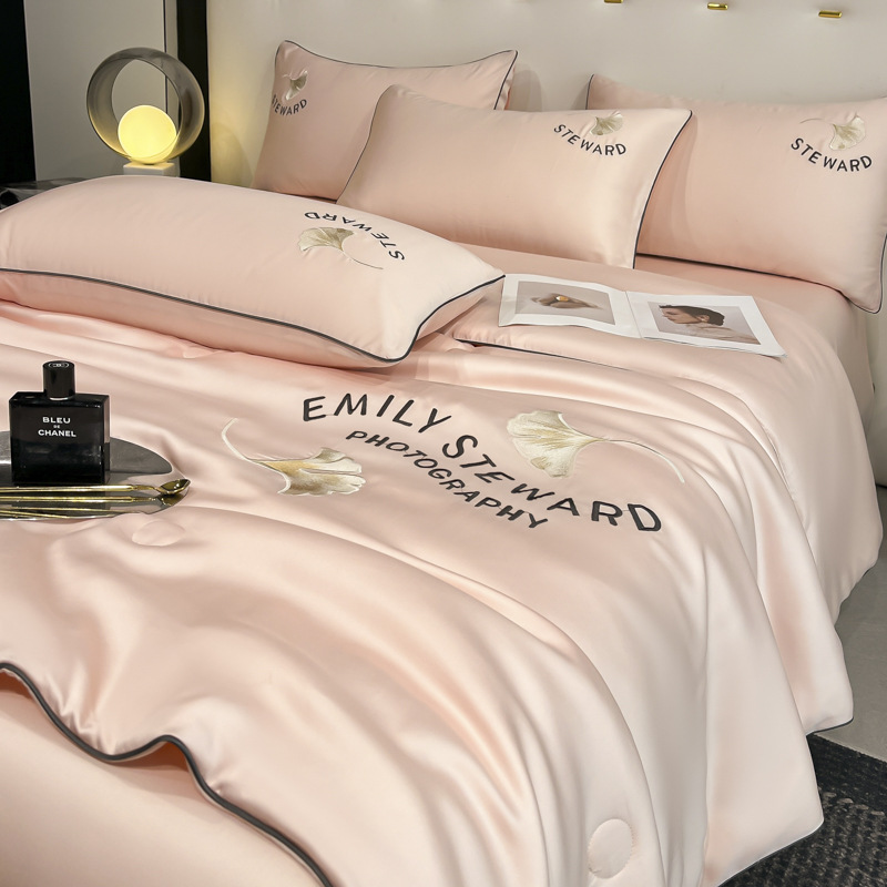 클래스 A 여름 쿨 퀼트 아이스 실크 여름 퀼트 4 피스 세트 알몸 슬리핑 실키 자수 세척 더블 에어 컨디셔닝 이불 여름 얇은 이불스토어 가기