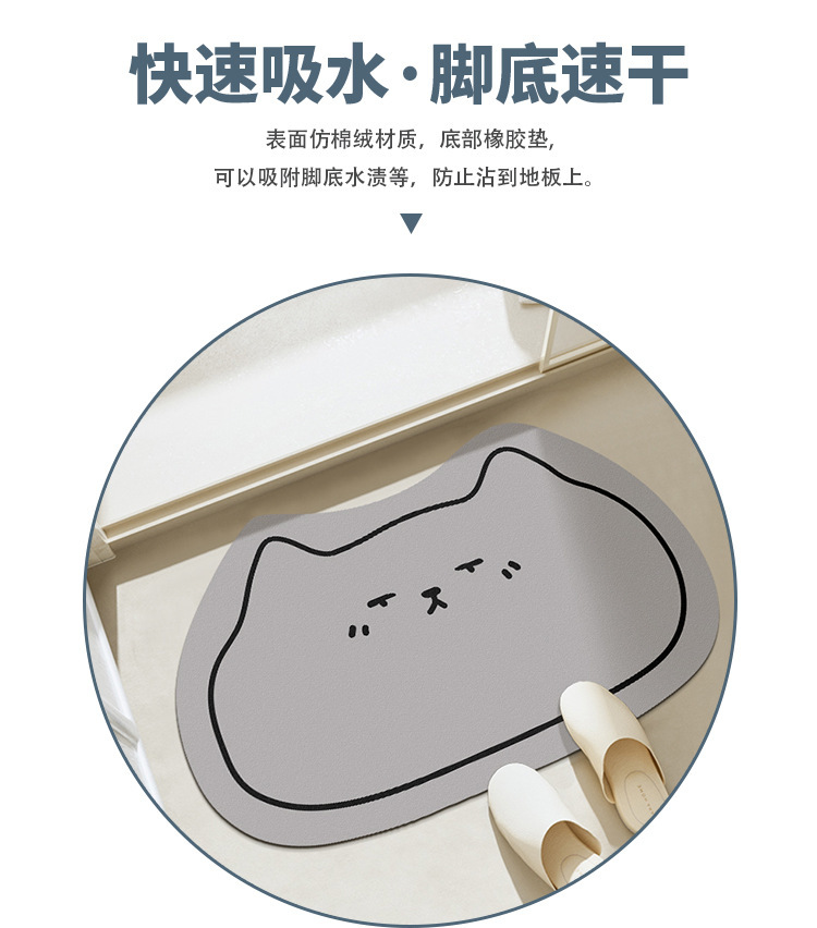 만화 귀여운 고양이 욕실 문 흡수성 매트 특수 모양의 욕실 미끄럼 방지 매트 가정용 화장실 규조토 진흙 바닥 매트스토어 가기
