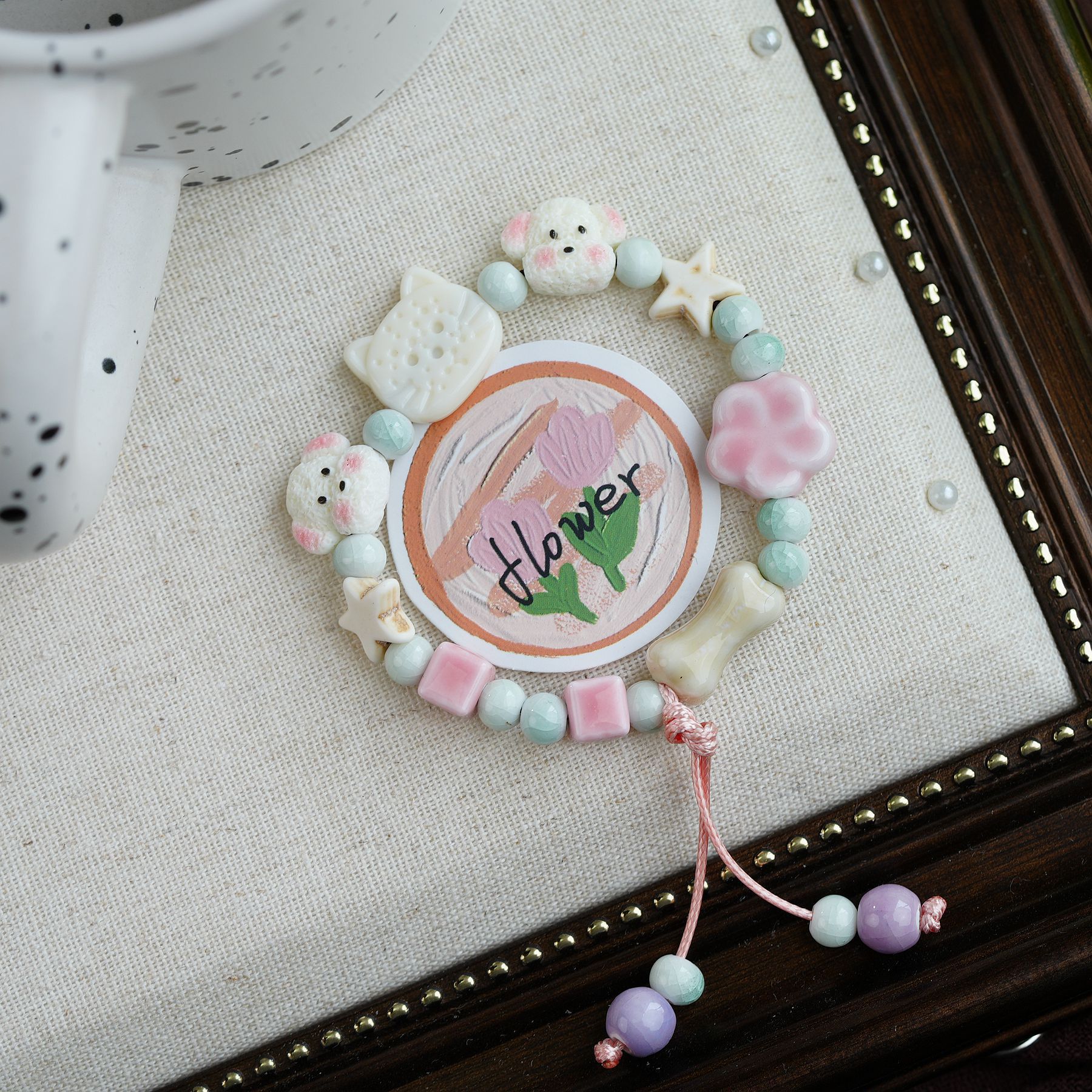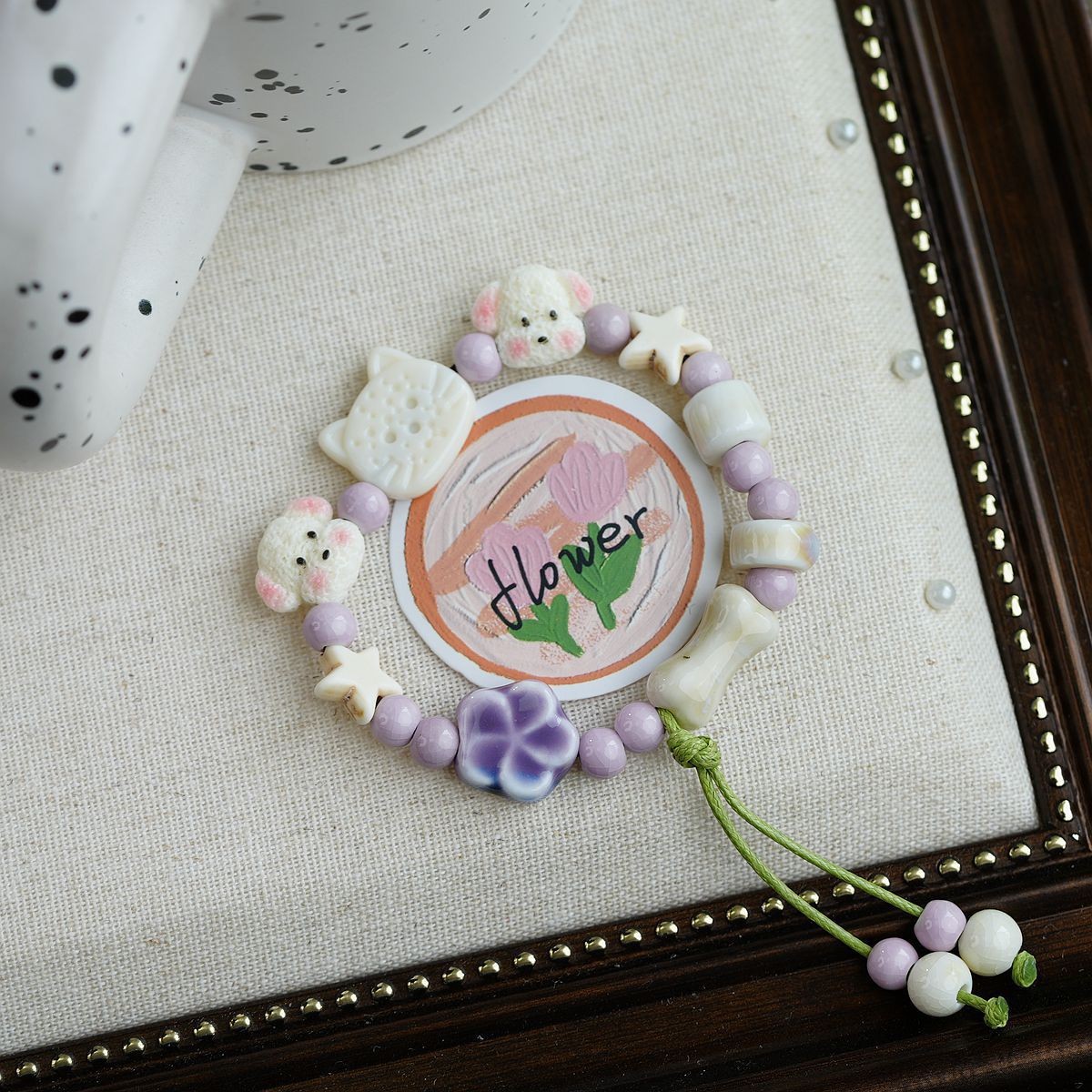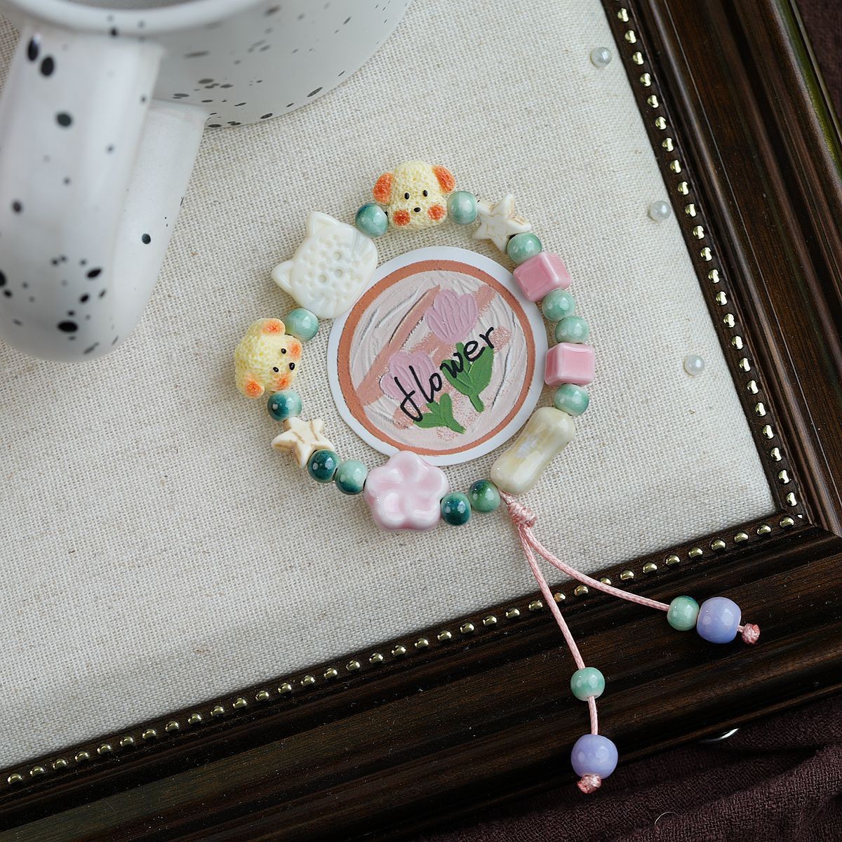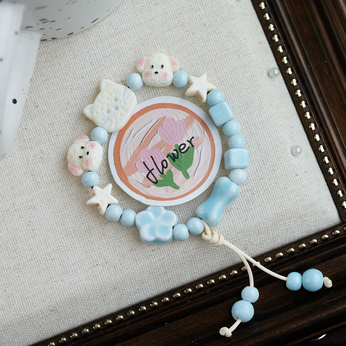 Jingdezhen 세라믹 팔찌 만화 텍스트 테디 개 수제 보석 팔찌 학생 선물 스톨 쥬얼리