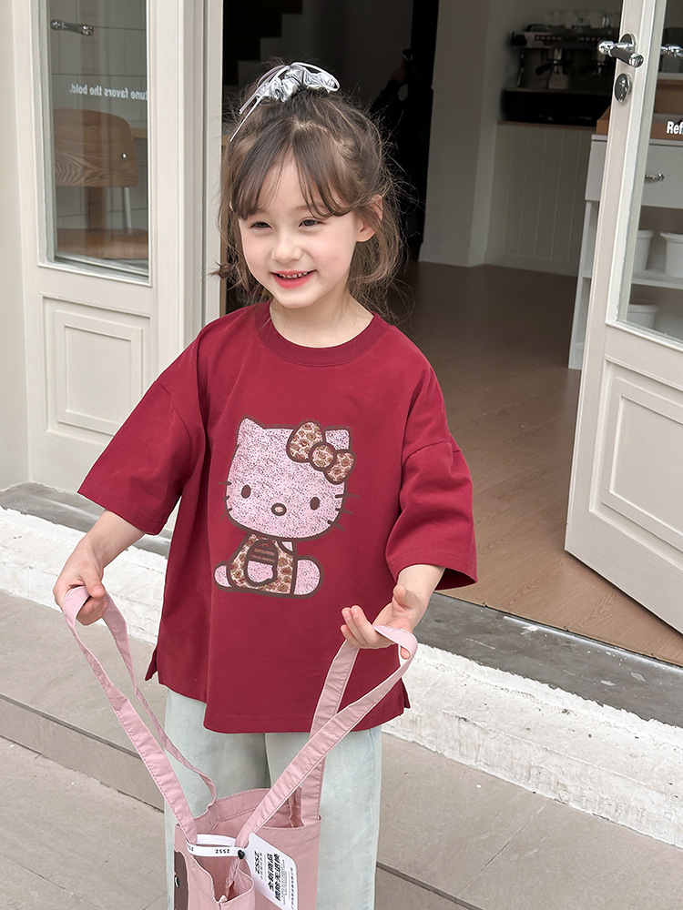 [클리어런스 스타일] 중형 및 대형 소녀 여름 한국식 바닥 셔츠 탑 루즈하고 귀여운 티셔츠 만화 반팔