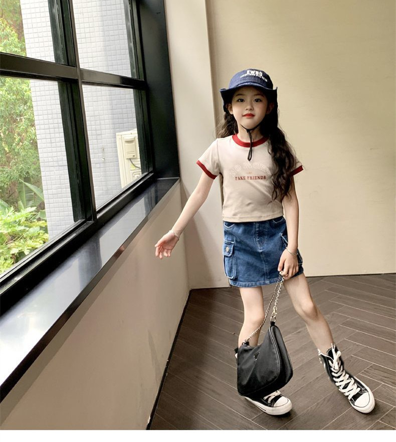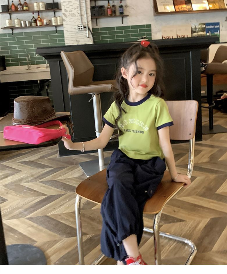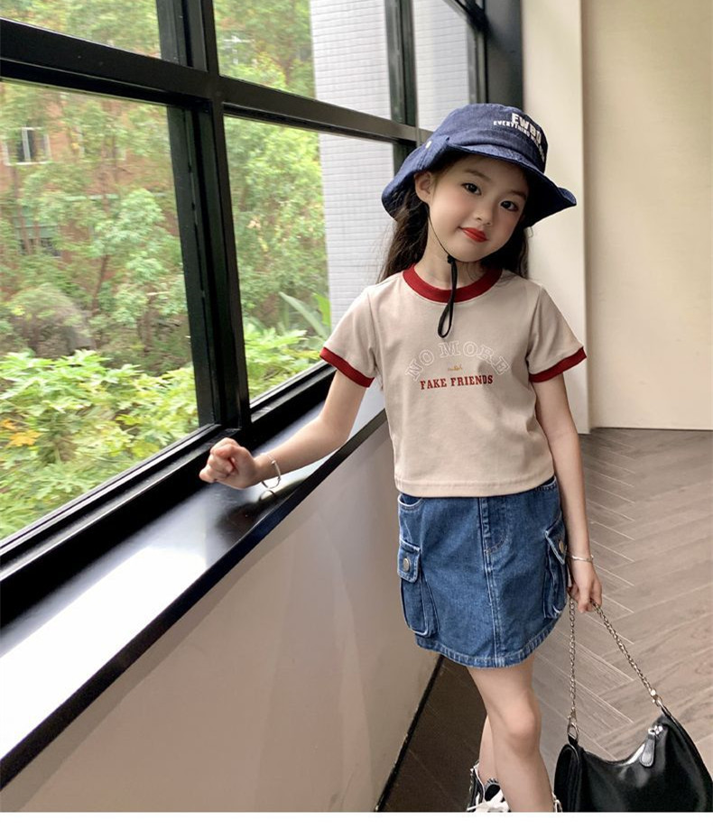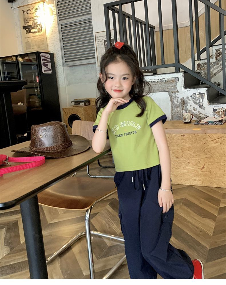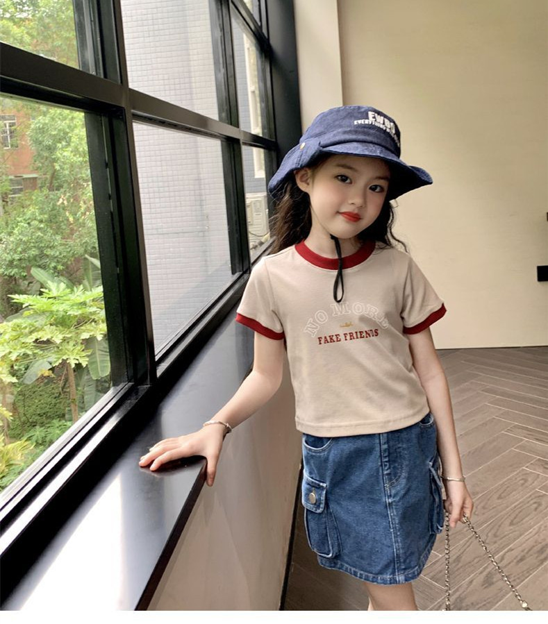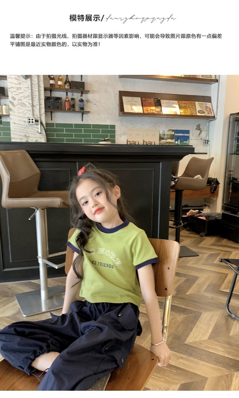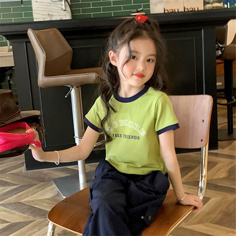여자 반팔 티셔츠 순수 코튼 여름 2025 새로운 한국 스타일 외국 스타일 여자 여름 옷 어린이 반팔 짧은 탑스토어 가기