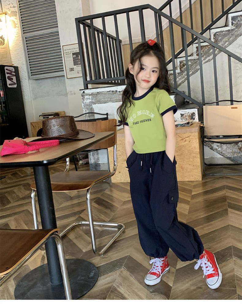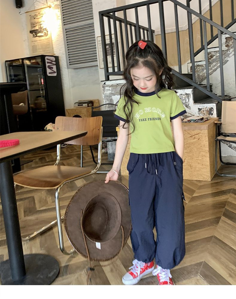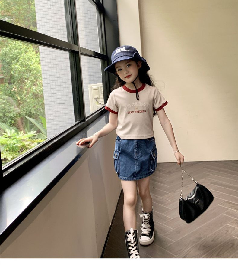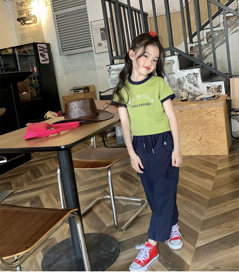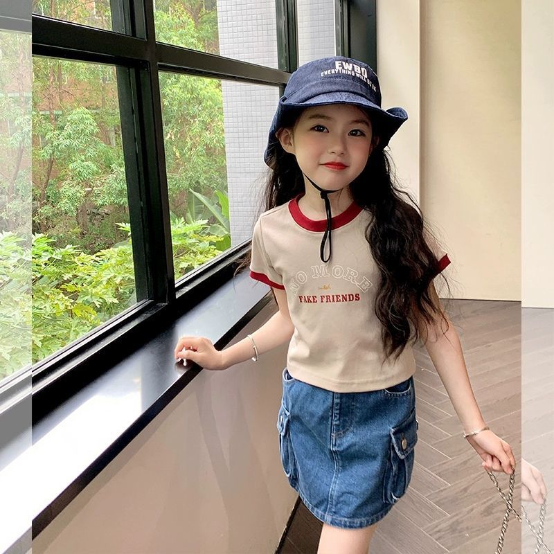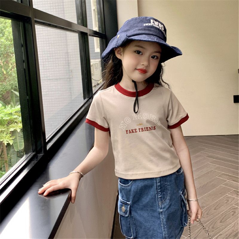 여자 반팔 티셔츠 순수 코튼 여름 2025 새로운 한국 스타일 외국 스타일 여자 여름 옷 어린이 반팔 짧은 탑